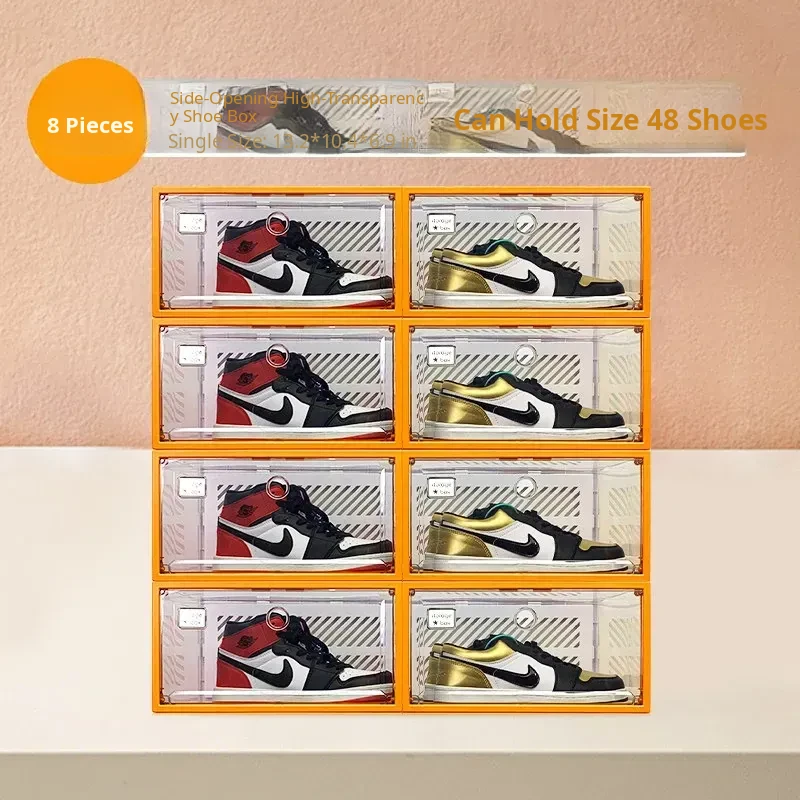 Fully Transparent Shoe Box [Double Magnetic Door/Can Hold 48 Size High-Top] 8 Pieces