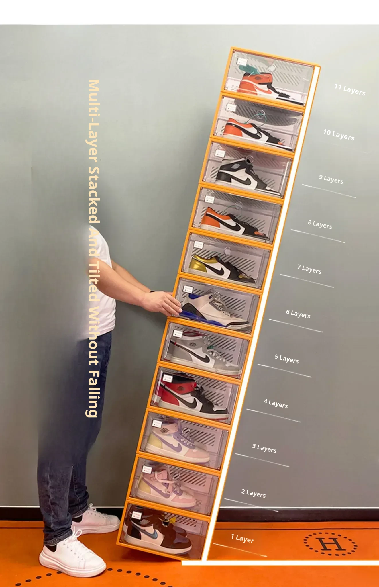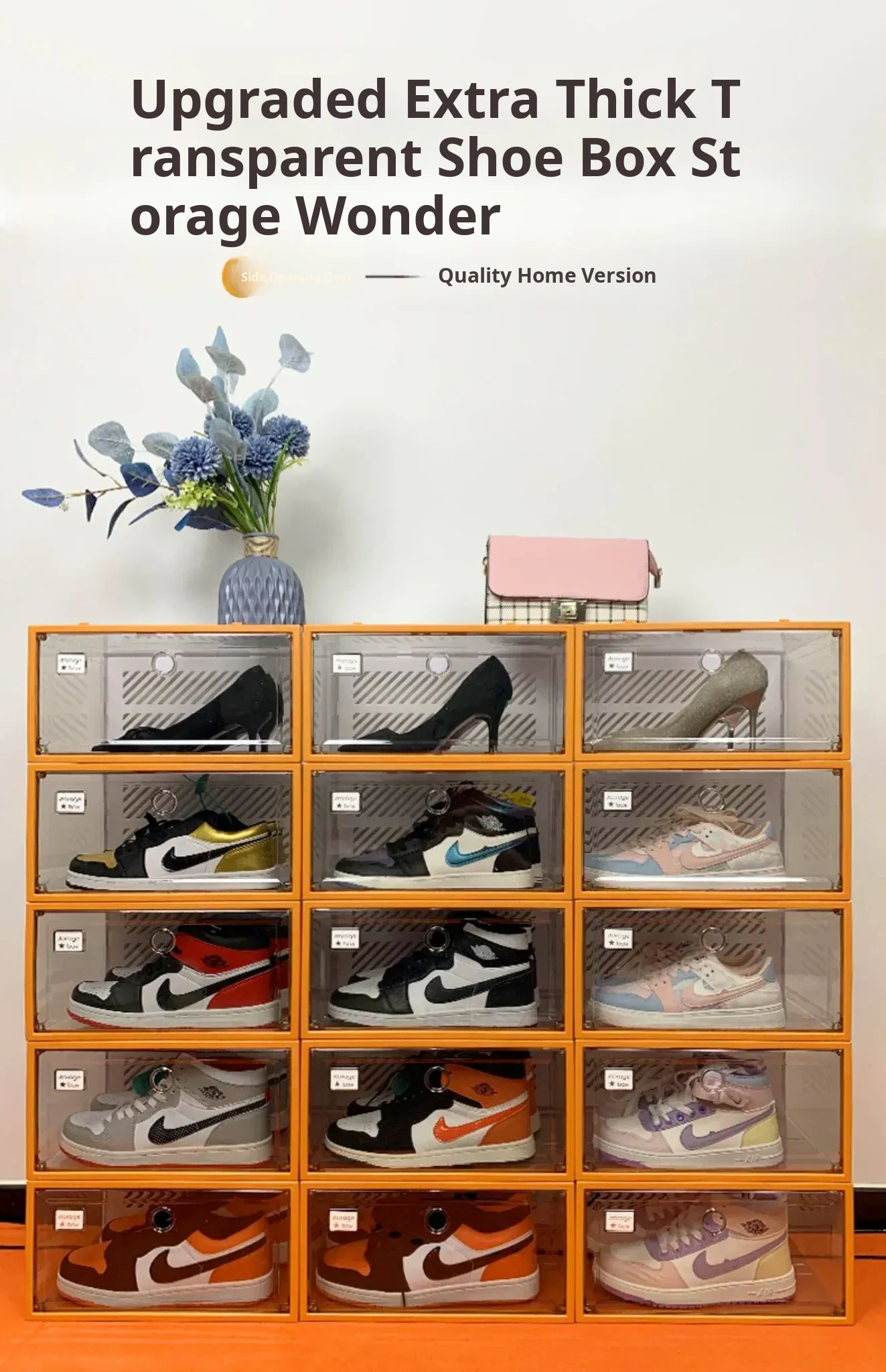 Fully Transparent Shoe Box [Double Magnetic Door/Can Hold 48 Size High-Top] 18 Pieces