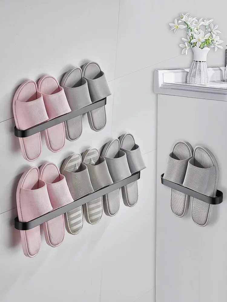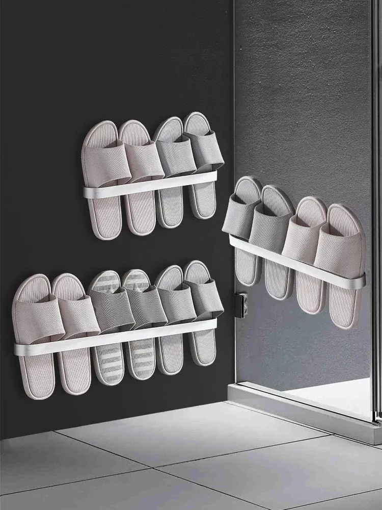 Wall-Mounted Bathroom Slipper Rack - No Drilling Required! Space Aluminum Shoe Storage Organizer for Easy Access After Entering the Bathroom - Perfect Solution for Tidy Toilets!