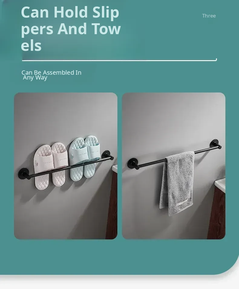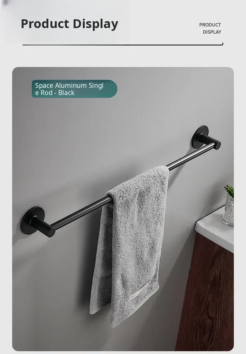 Single - Black [Punch-Free]★Space Aluminum Material/Moisture-Proof and Rust-Proof]