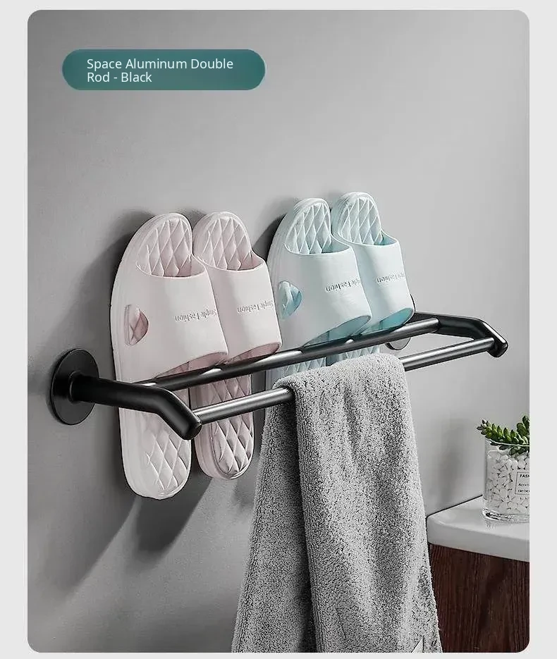 Wall-Mounted Bathroom Slipper Rack - No Drilling Required, Space Aluminum Storage Solution for Toilets, Perfect for Behind Door Organization, Keeps Your Bathroom Tidy and Stylish!