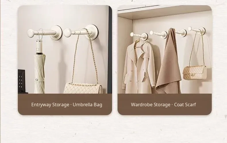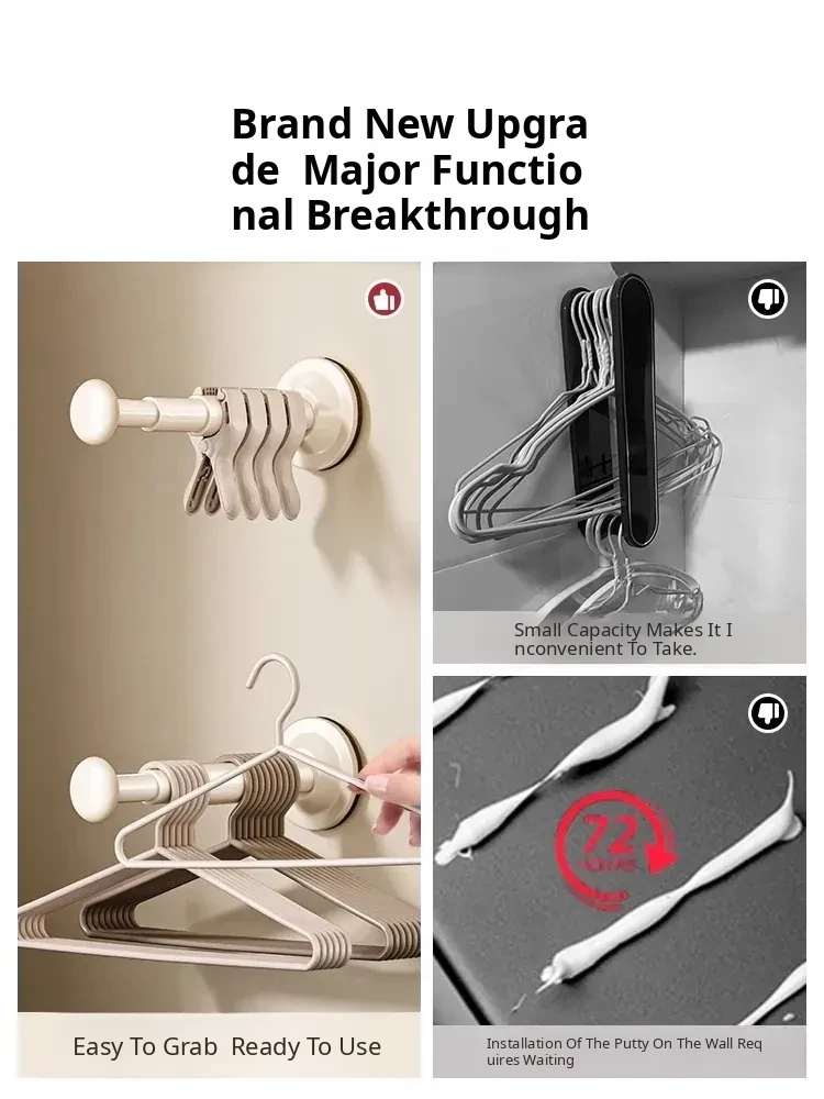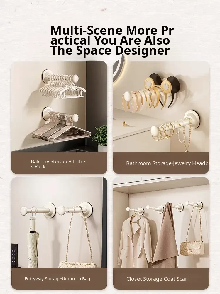 Wall-Mounted Suction Cup Clothes Rack - No Drill Storage Organizer, Multi-Functional Expandable Household Rack for Balcony and Home整理架