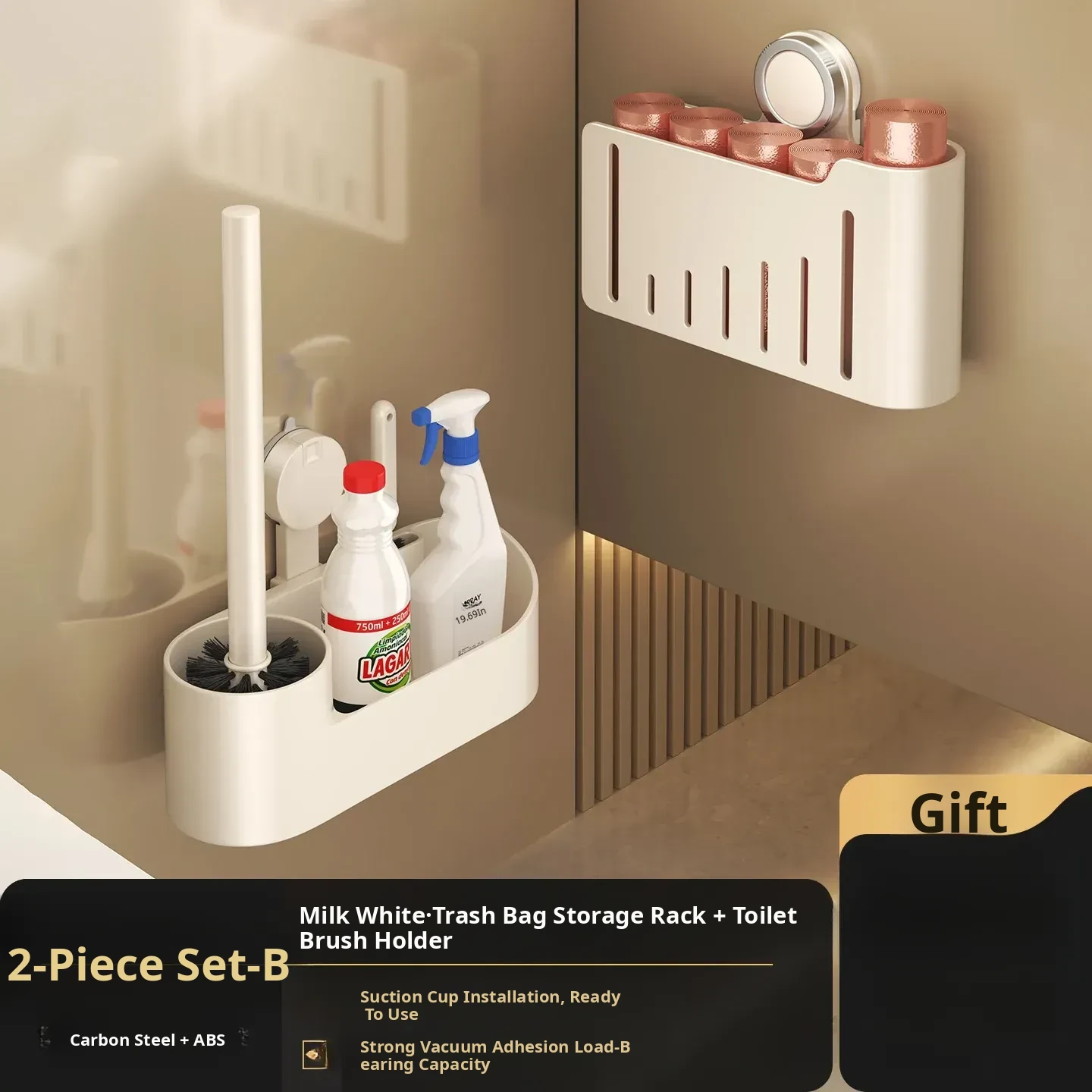 [Milk White Two-Piece Set] Garbage Bag Storage Box + Toilet Brush [Large Capacity/Resistant to Pulling]