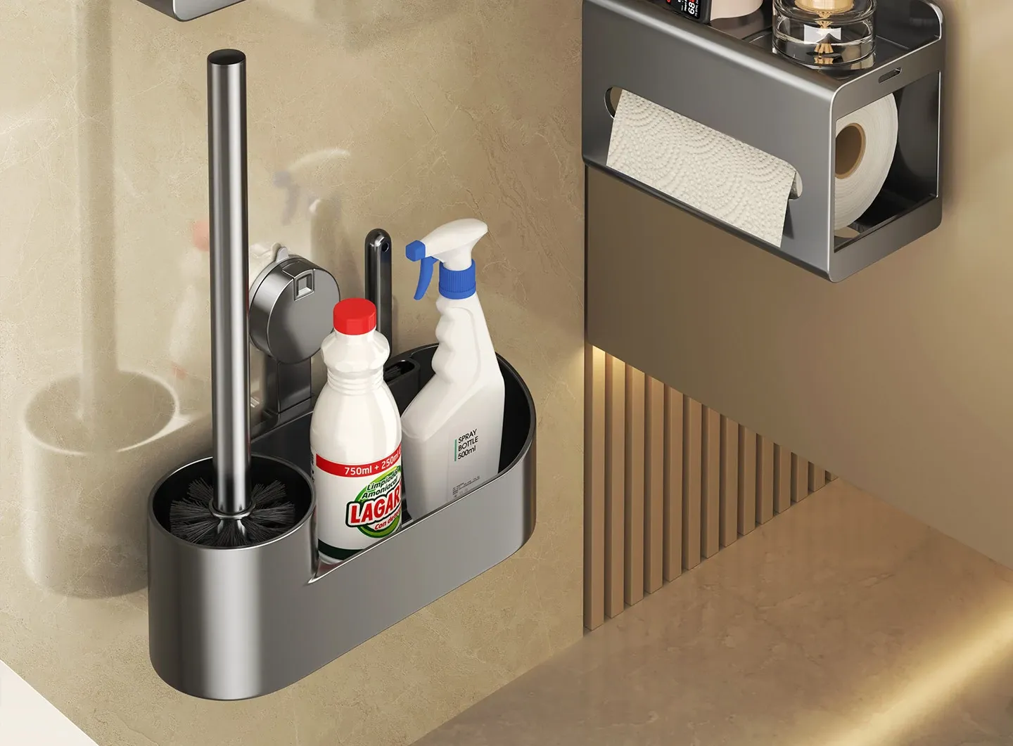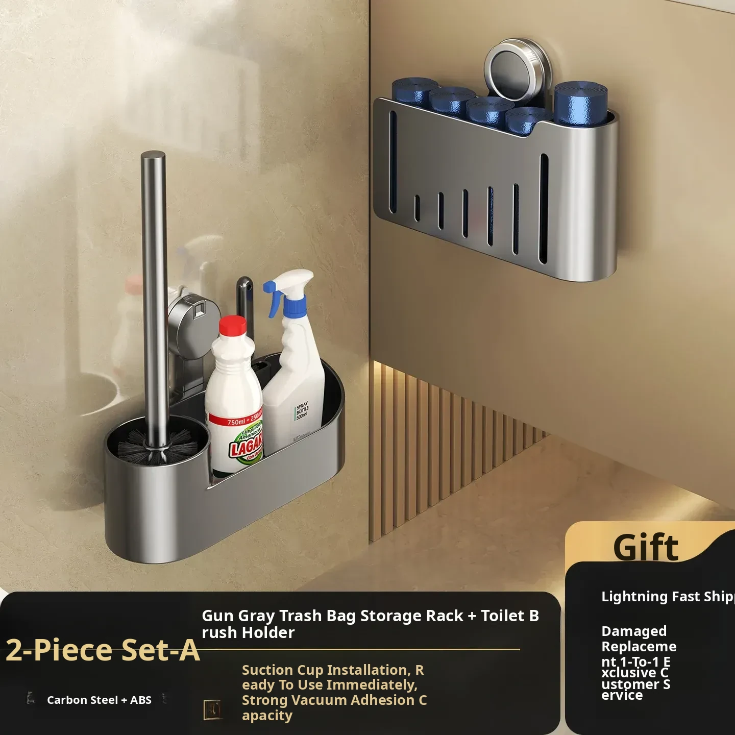[Gun Gray Two-Piece Set] Garbage Bag Storage Box + Toilet Brush [Large Capacity/Resistant to Pulling]
