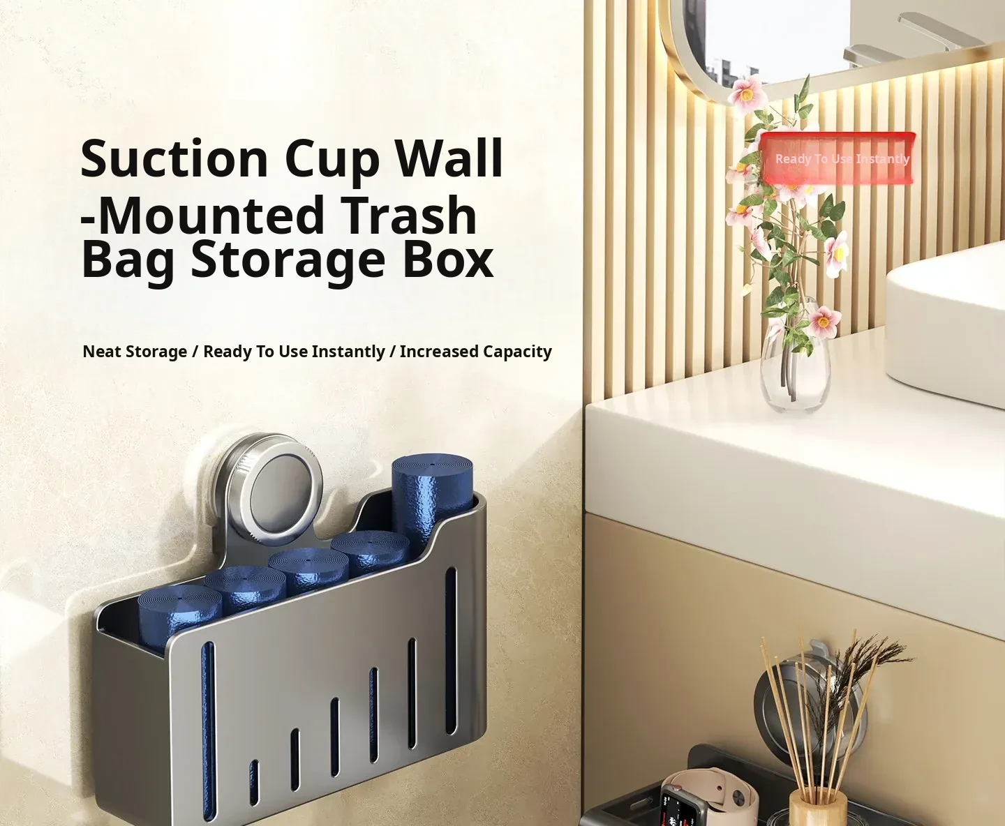 Wall-Mounted Suction Cup Trash Bag Organizer – No Drilling Required, Easy-Access Plastic Bag Dispenser for Kitchen – Space-Saving Hanging Storage Solution