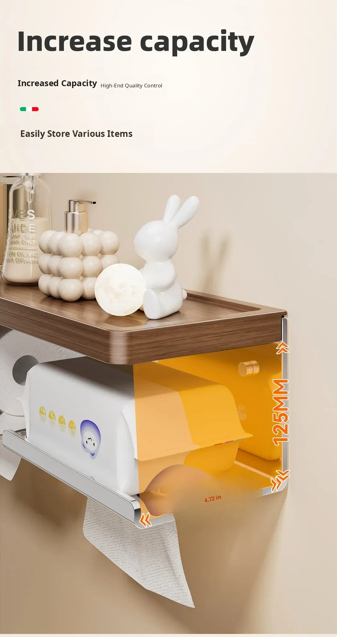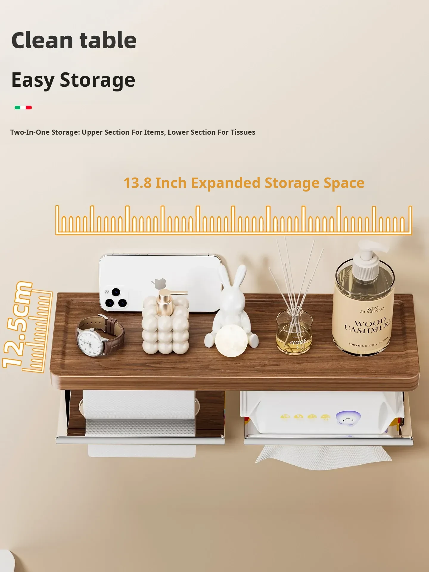 Creamy White [Walnut Wood + 304 Stainless Steel] Tissue Box (Double Drawer)