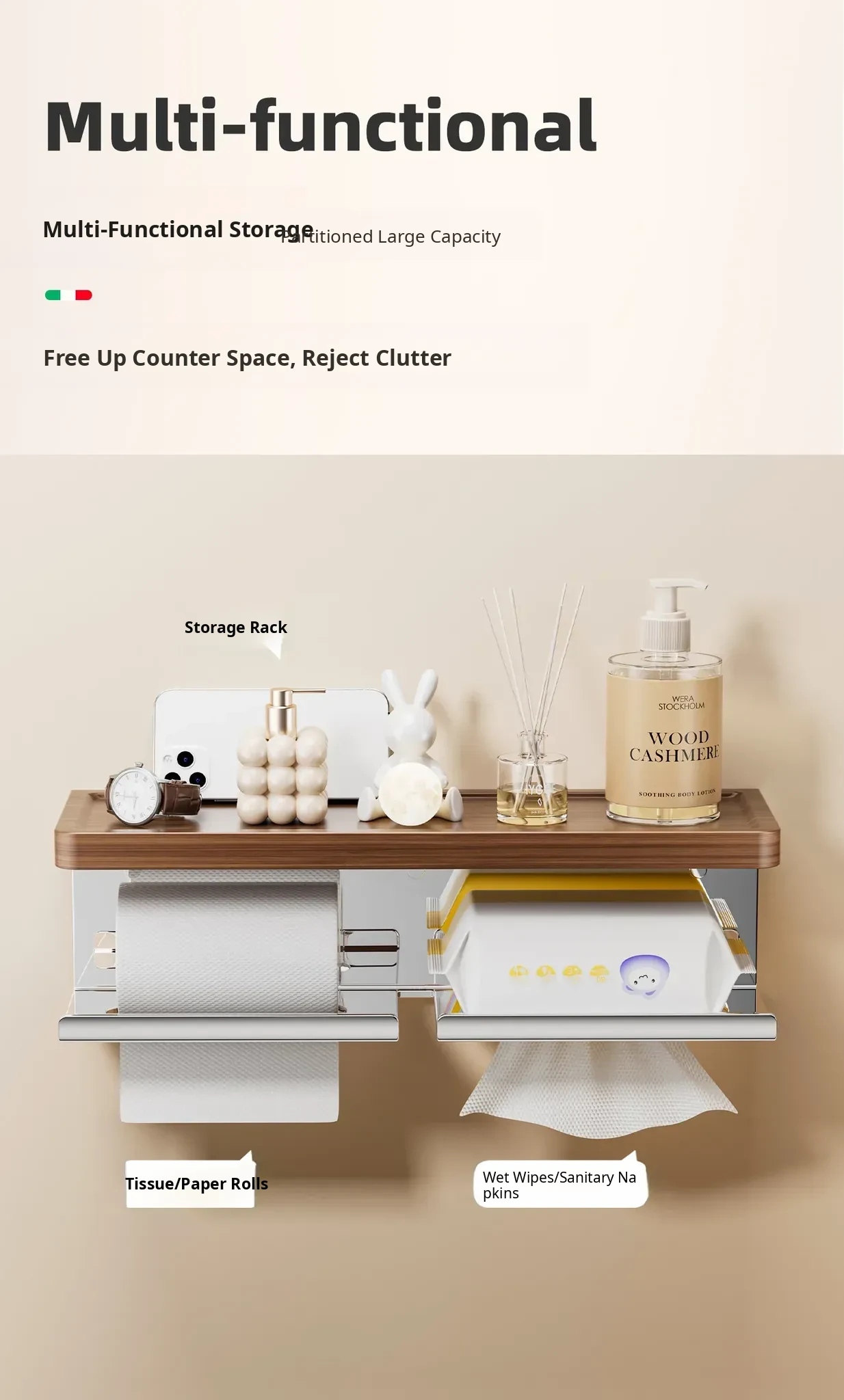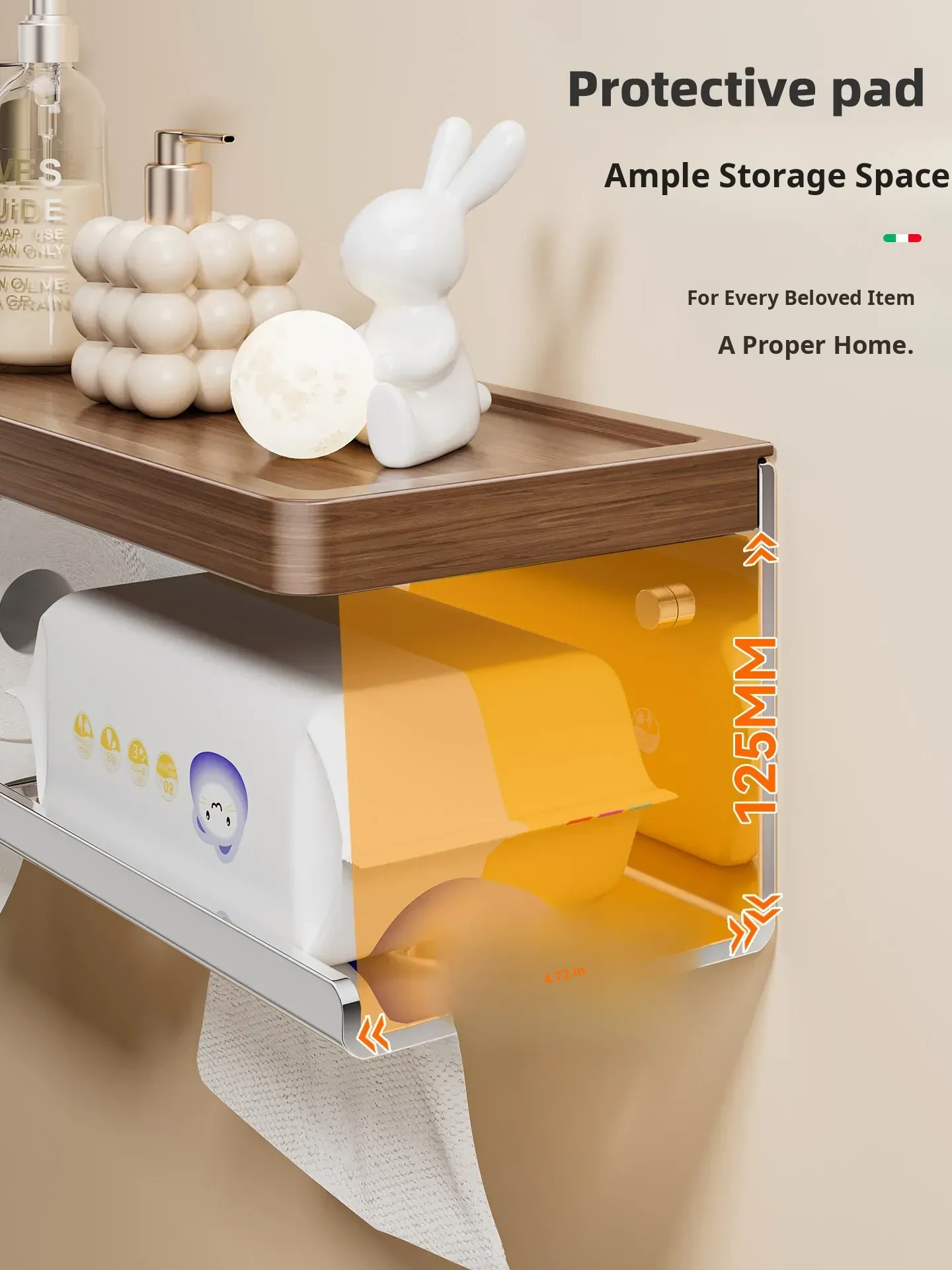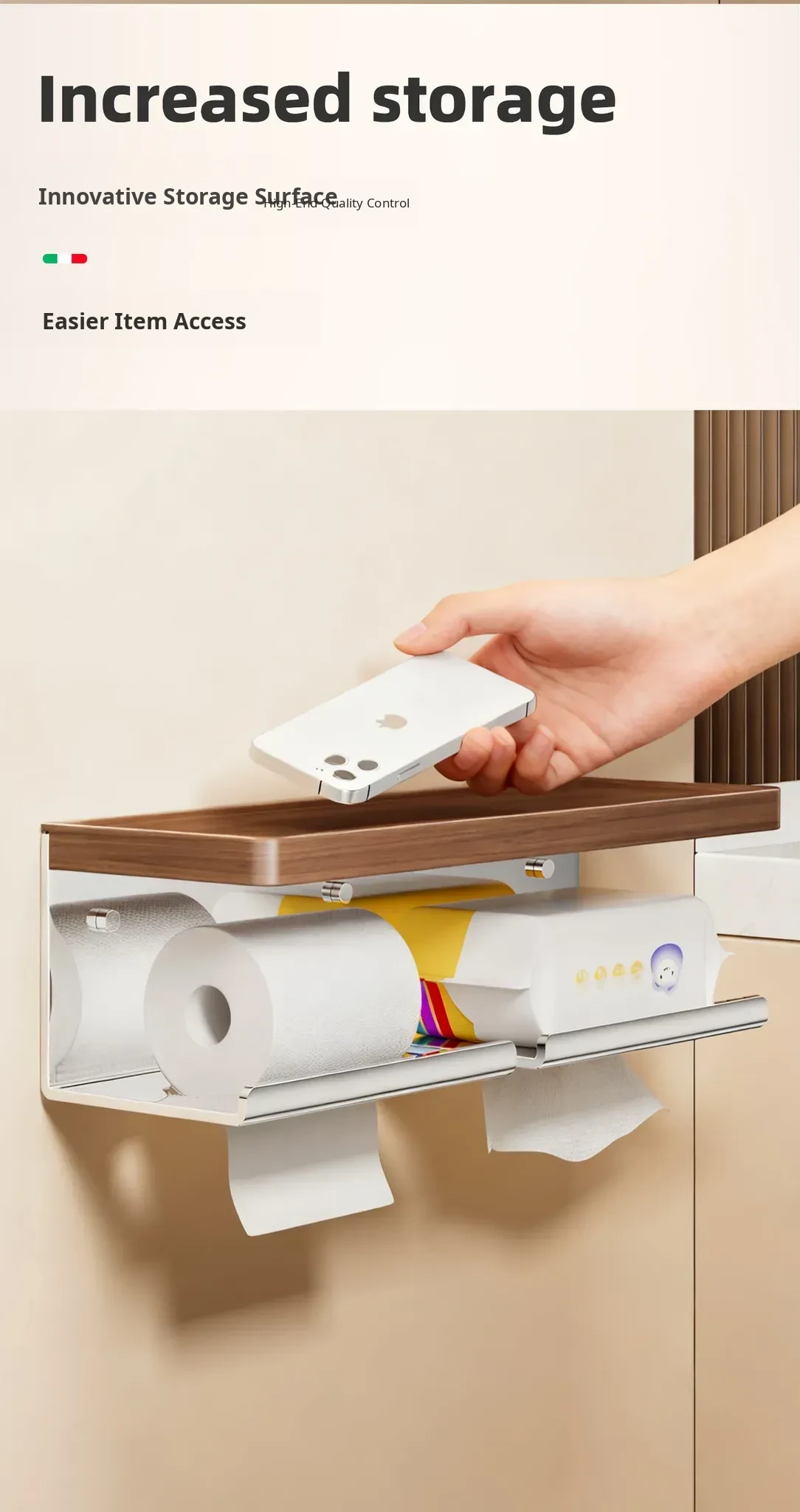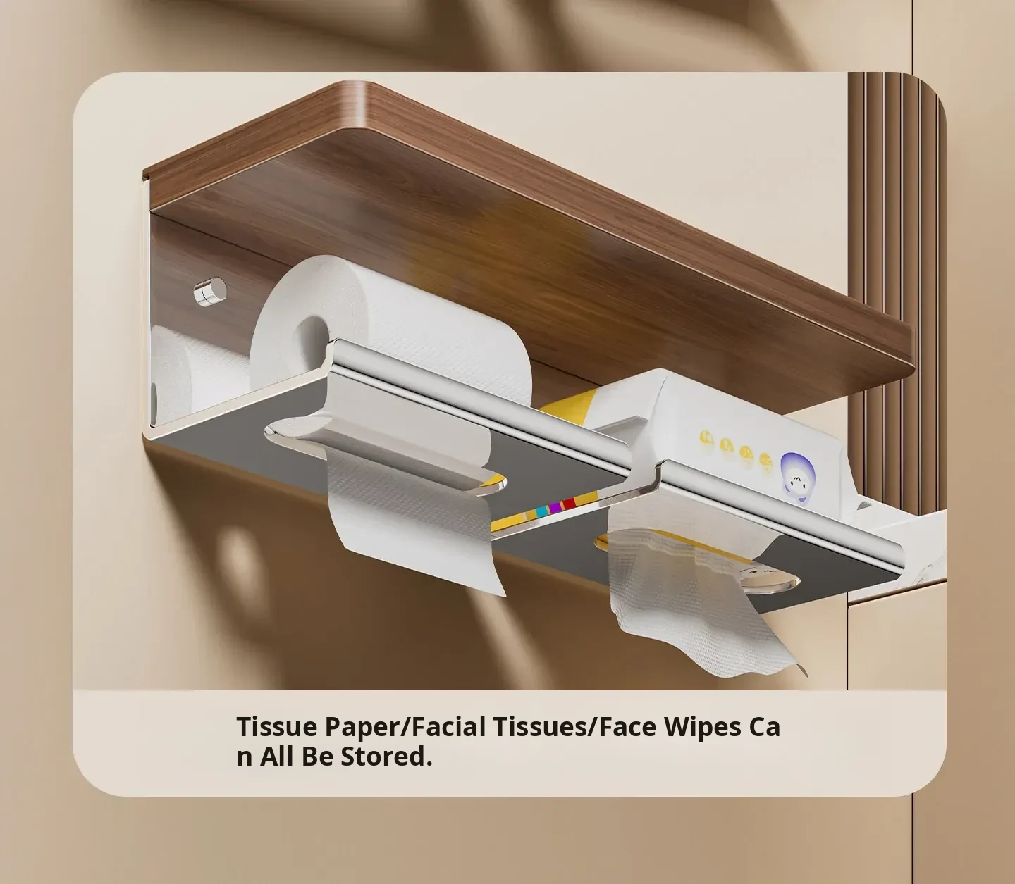 Walnut Wood Toilet Paper Holder - No Drilling Required, 304 Stainless Steel Bathroom Tissue Roll Storage Rack for Your Washroom