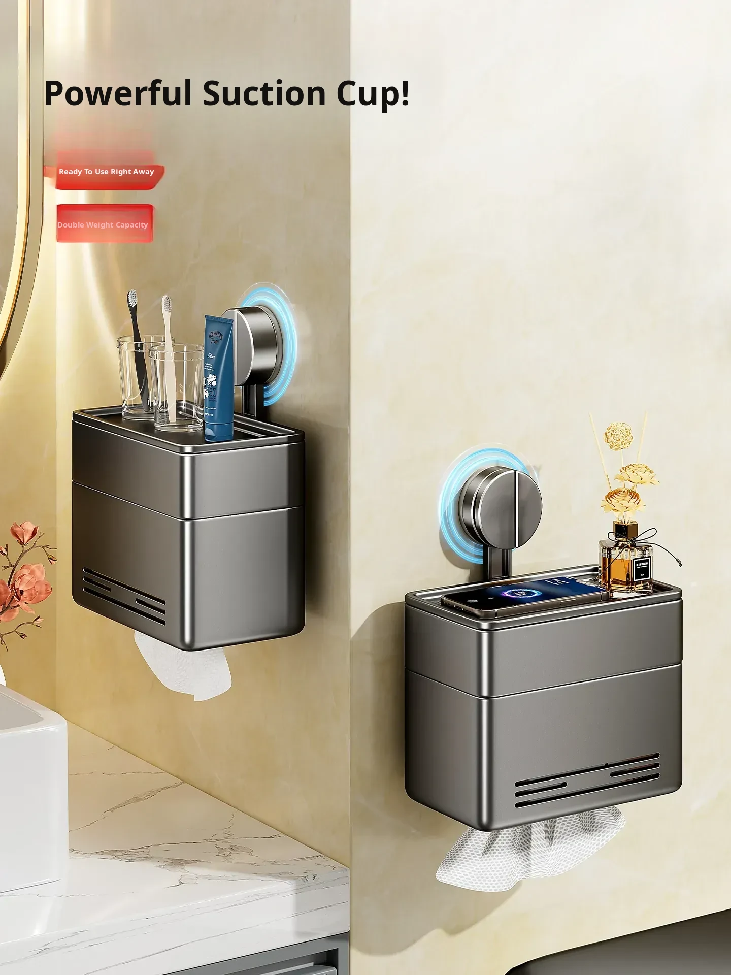 Waterproof Wall-Mounted Toilet Paper Holder - Space Aluminum, No Drilling Suction Cup Design, Versatile Storage for Bathroom Tissue and More!
