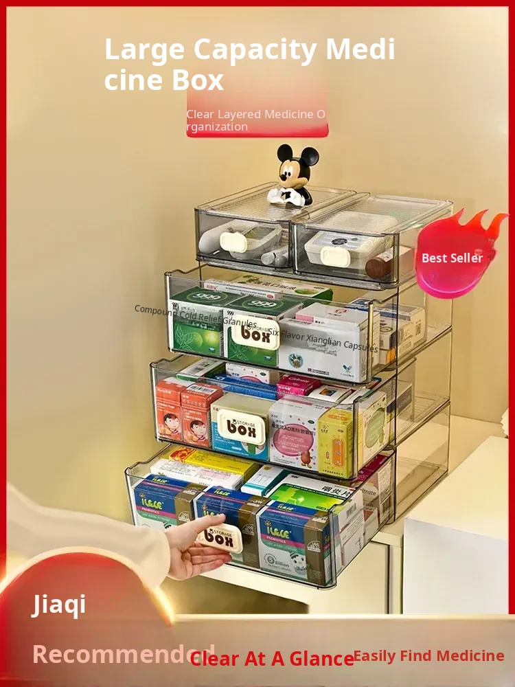 Large Capacity Drawer-Type Medicine Storage Box for Home Use - Family Medicine Organizer with Multi-Layer Design, Transparent and Spacious for Common Medications