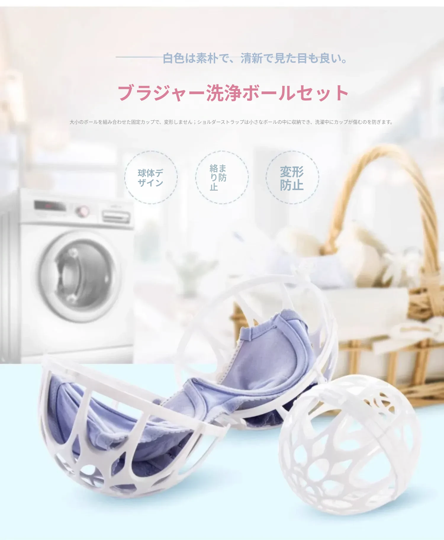 ランジェリー洗濯ネット【アイボリー 大小ボール各1個】