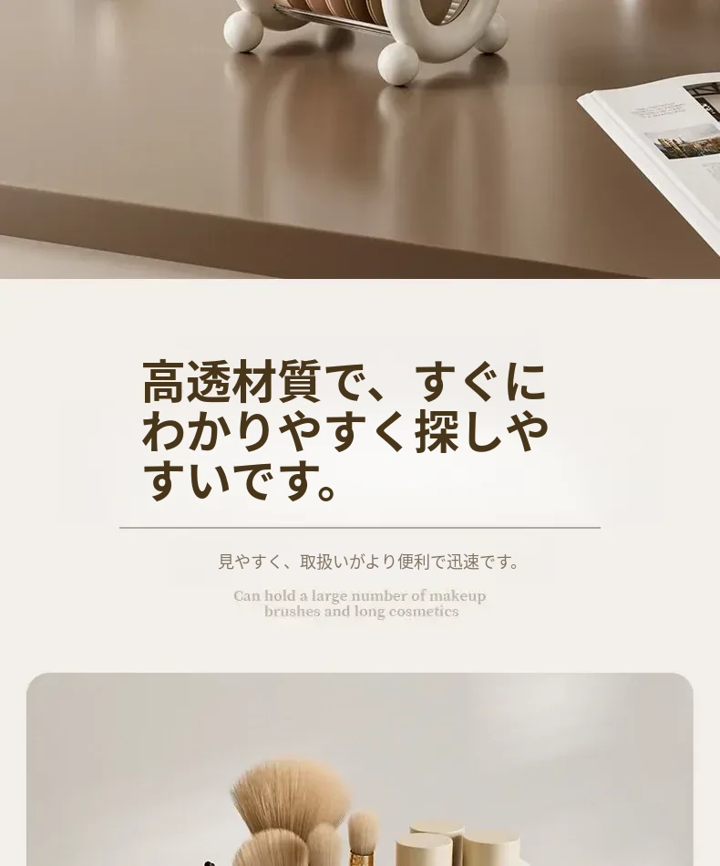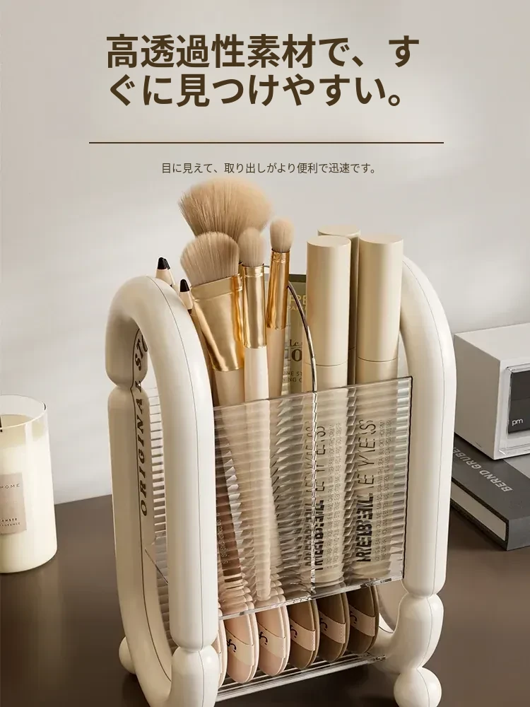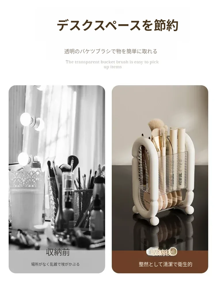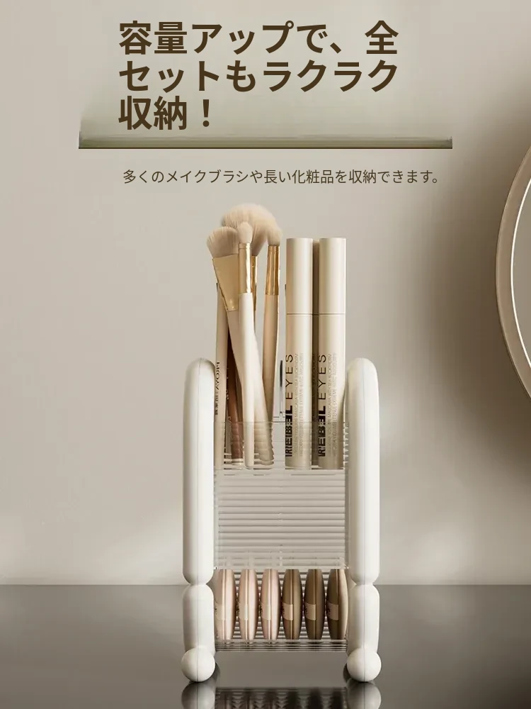 大容量アクリルメイクブラシ収納筒 - 口紅スタンド付き、アイシャドウ・アイブロウ・ファンデーションブラシもすっきり整理!あなたのメイクアップを美しく演出するアイテム!