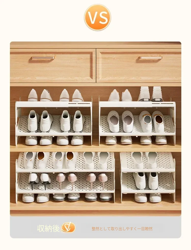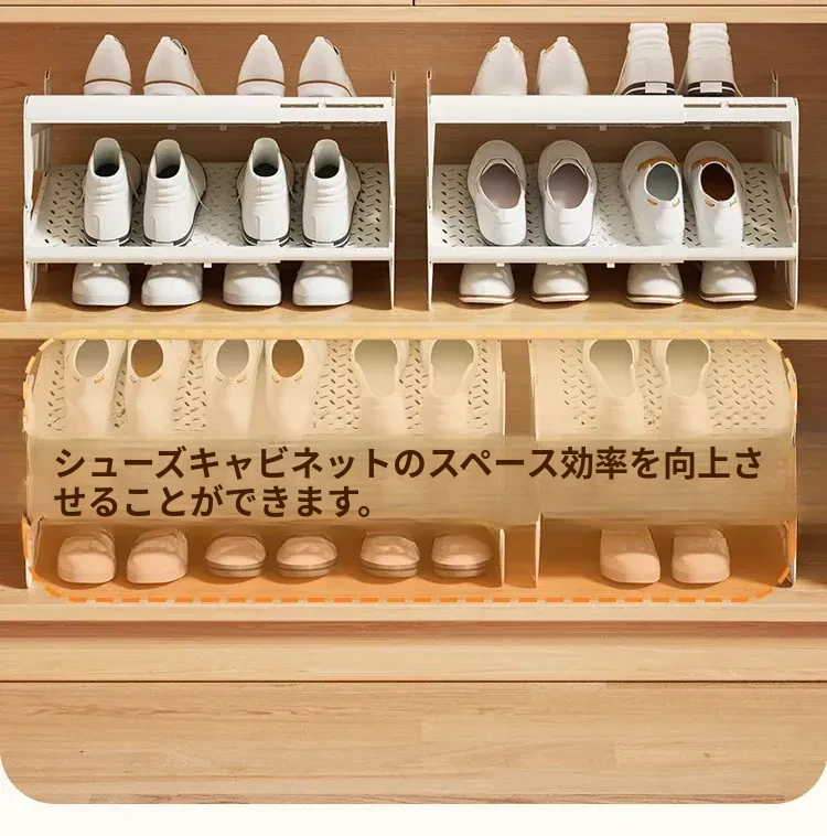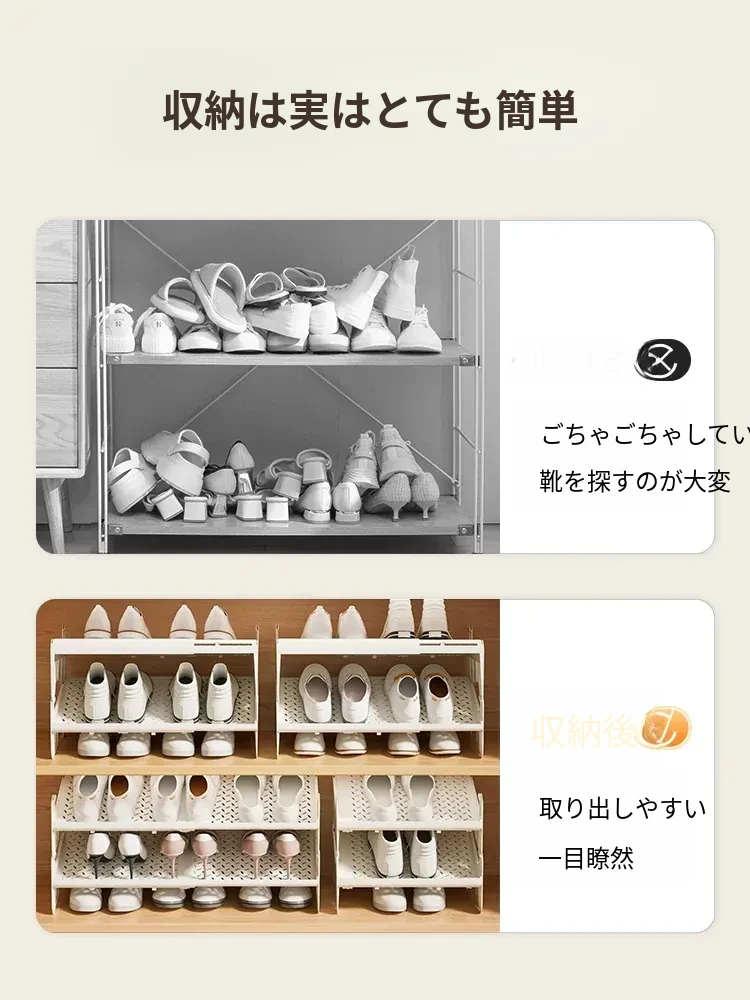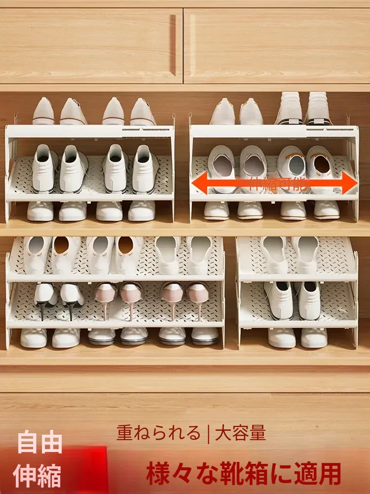 省スペースの伸縮式二段シューラック - 靴をスッキリ収納!調整可能な棚板付きで、あなたの靴を美しく整理整頓。狭いスペースでも大活躍の便利アイテム!