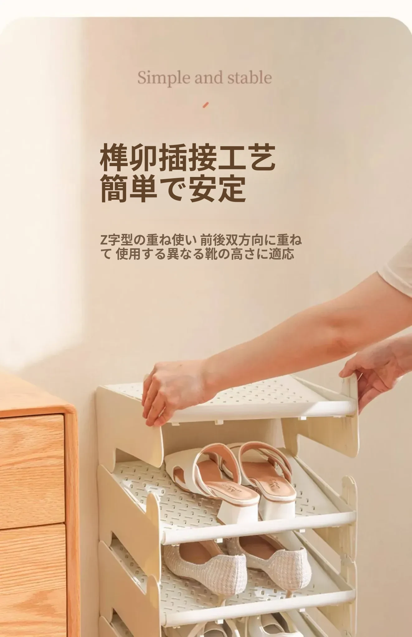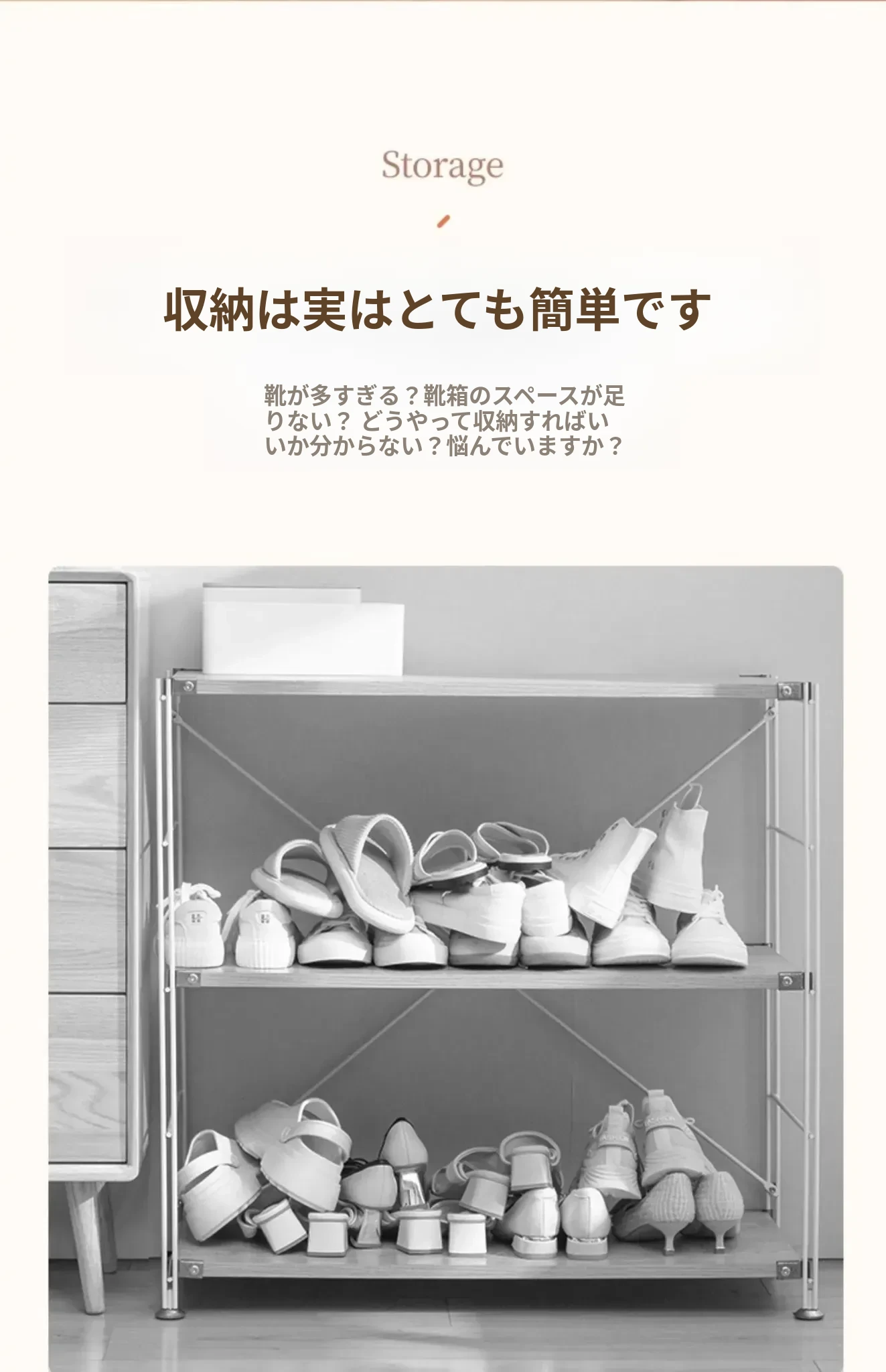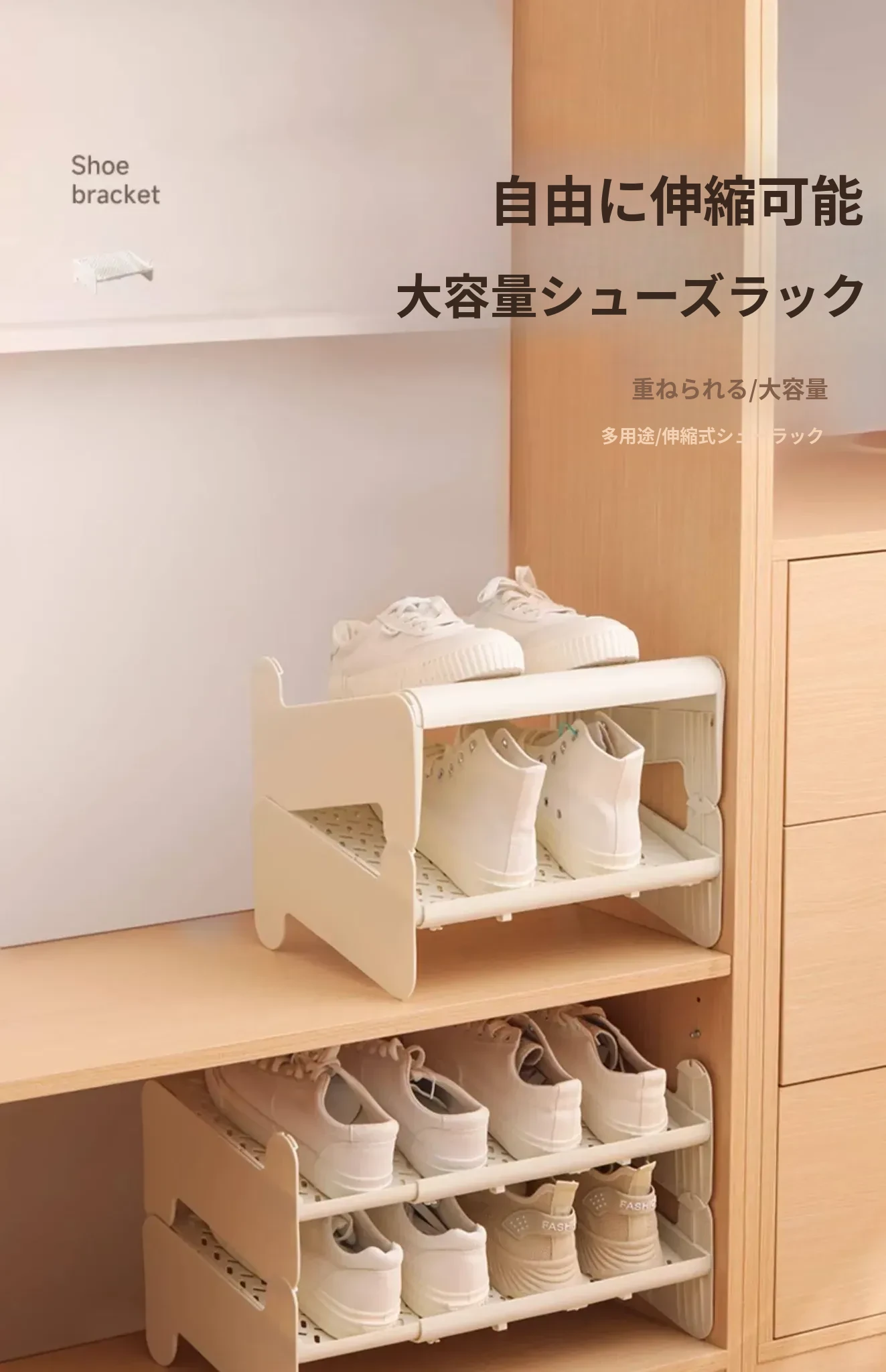 省スペースの伸縮式二段シューラック - 靴をスッキリ収納!調整可能な棚板付きで、あなたの靴を美しく整理整頓。狭いスペースでも大活躍の便利アイテム!