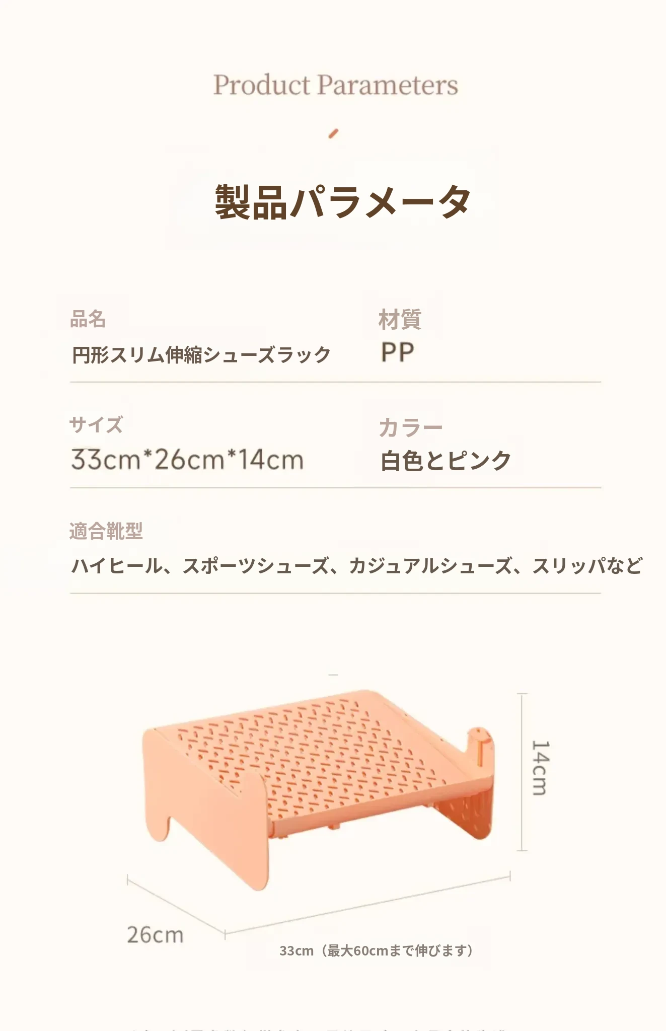 長さ33-60cm 幅26cm 高さ14cm【ピンク単品】左右伸縮可能⭐ハイカットシューズ対応