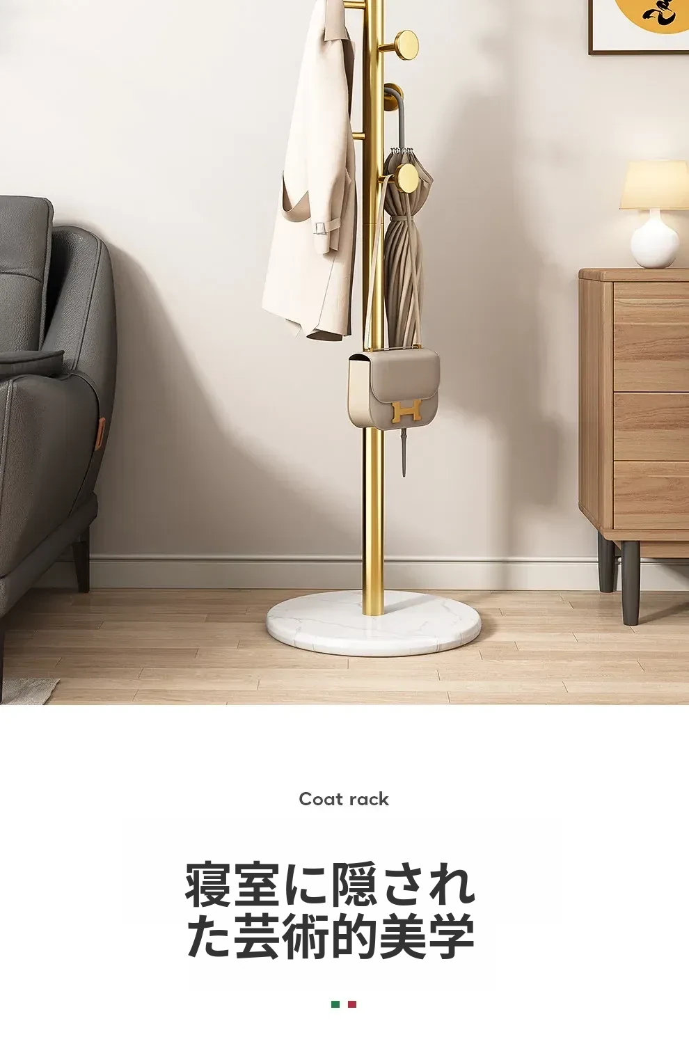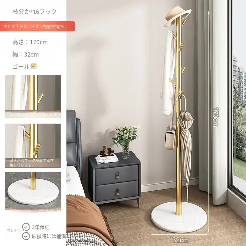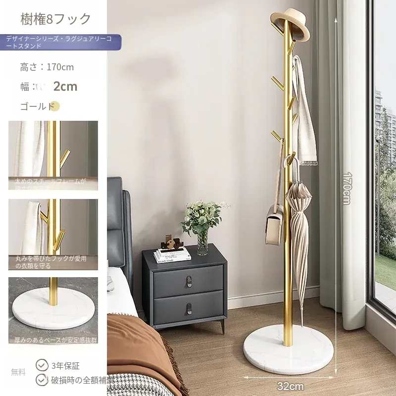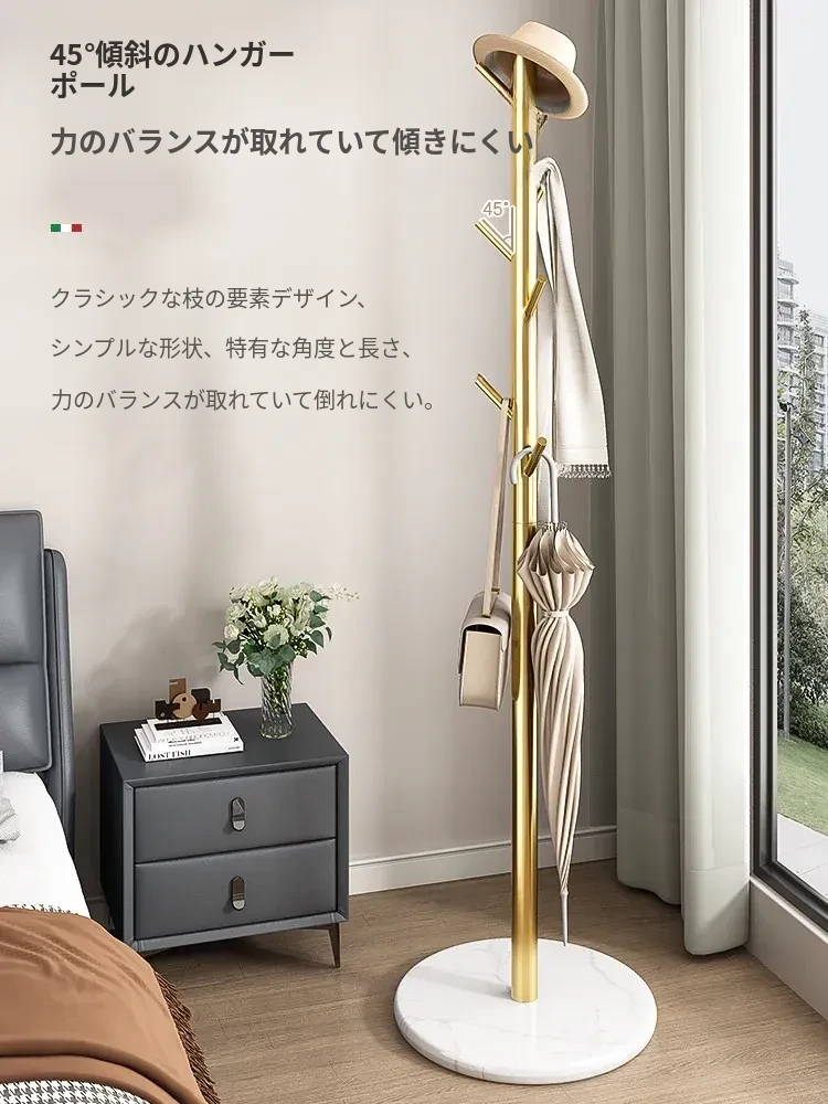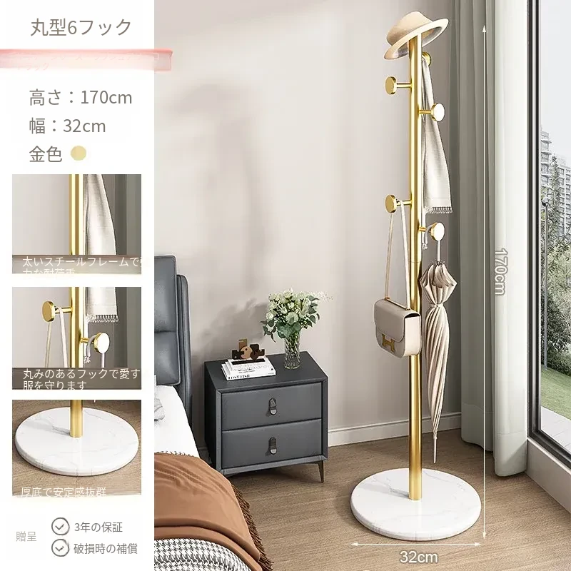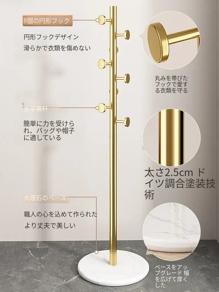 クリーム色のラグジュアリーなコートハンガー - おしゃれなデザインで、室内にぴったり!バッグやコートをスタイリッシュに収納できるステンレス製の落地型衣類ラック。あなたの寝室を洗練された空間に変えます!