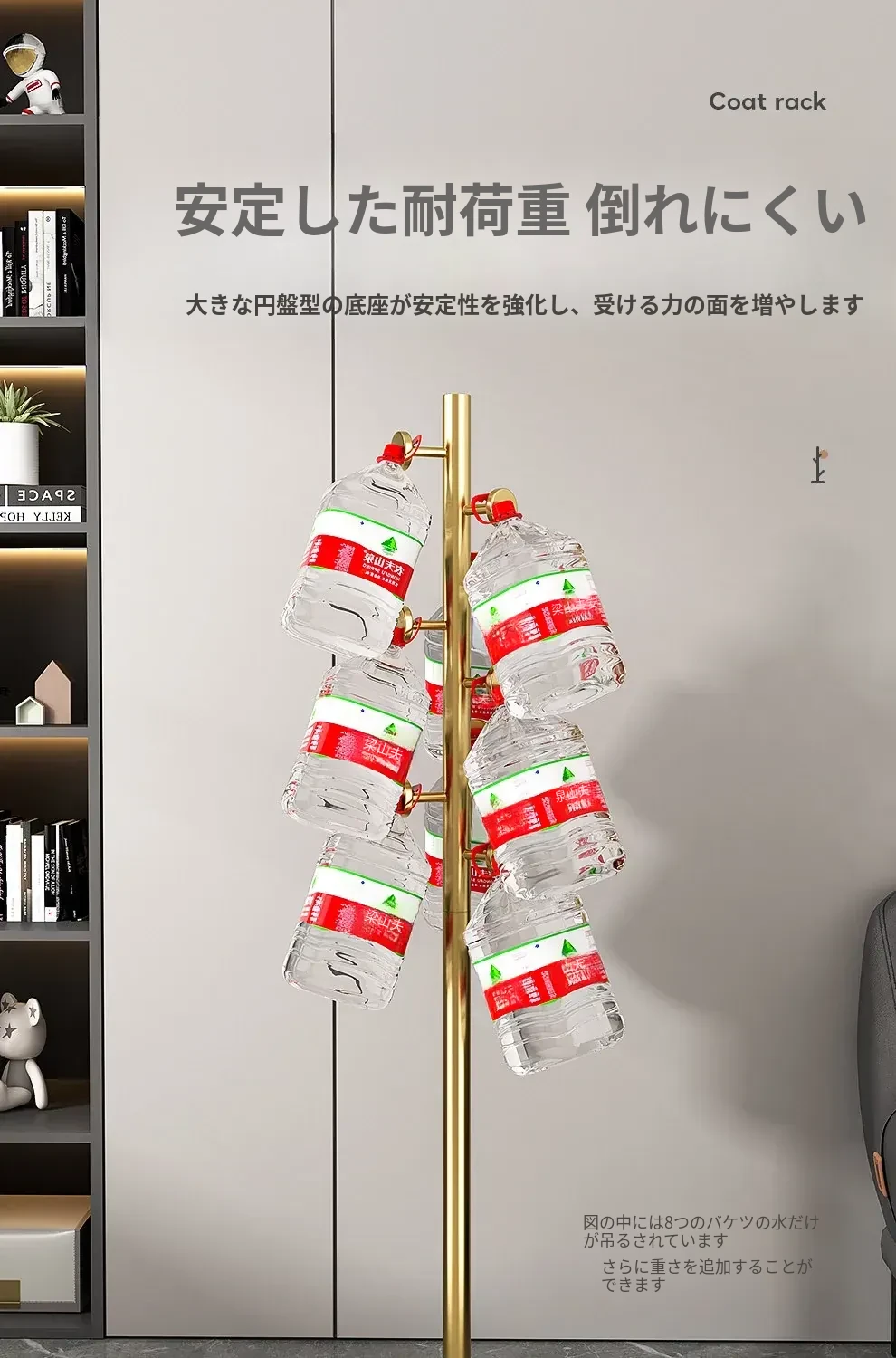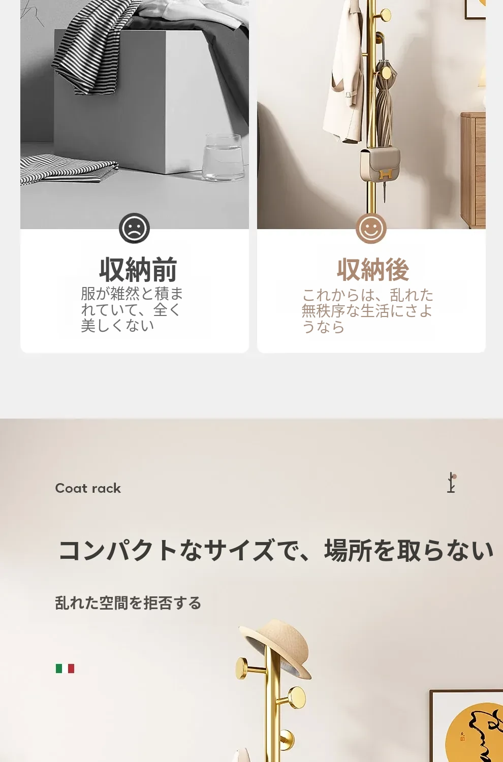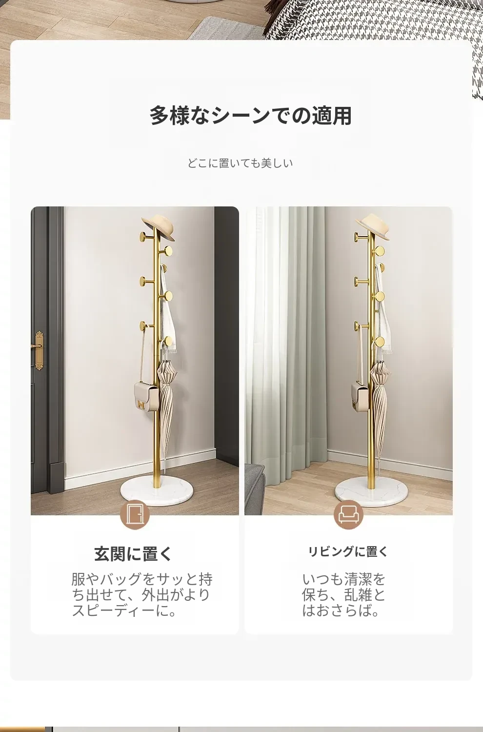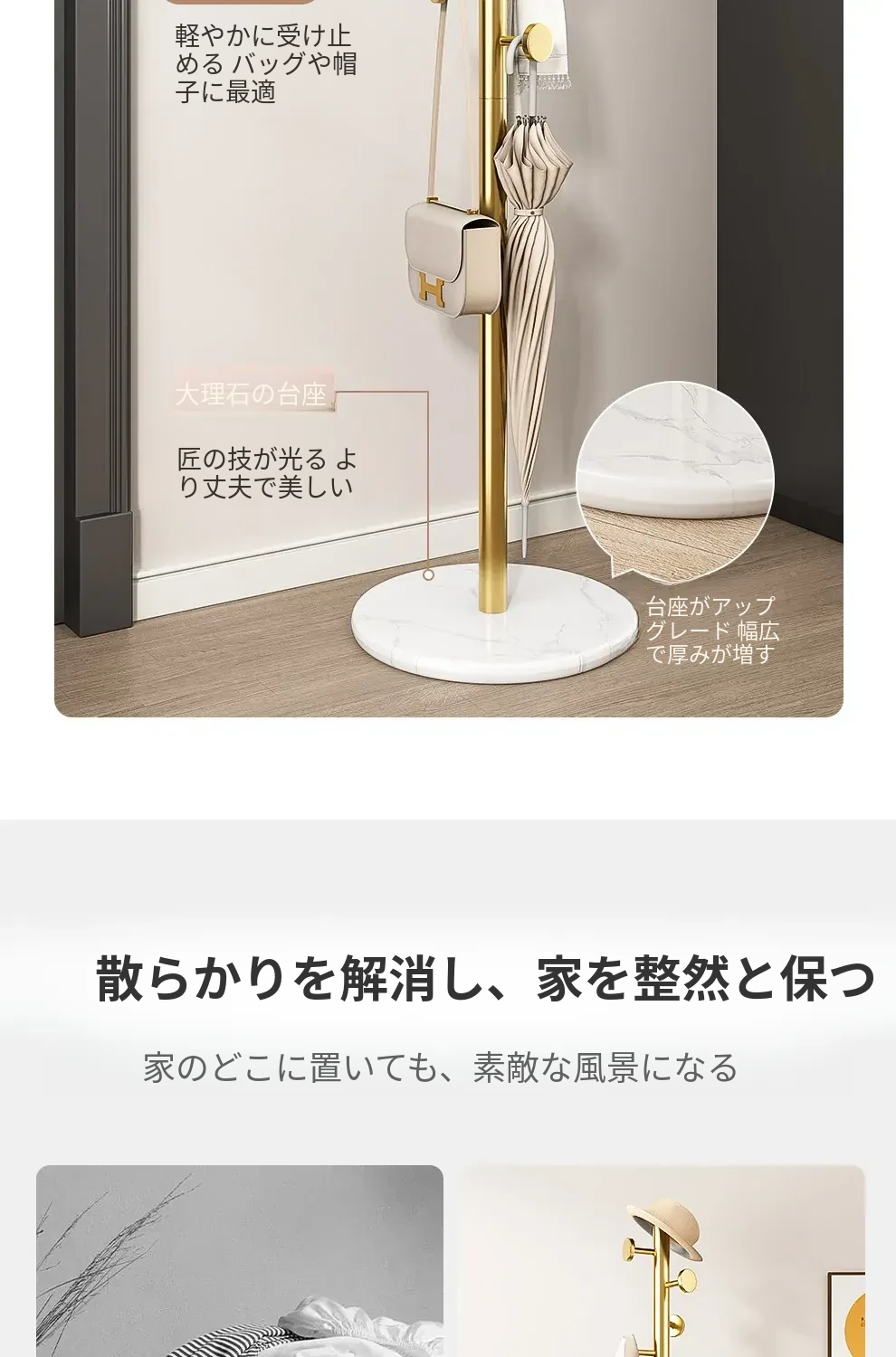 クリーム色のラグジュアリーなコートハンガー - おしゃれなデザインで、室内にぴったり!バッグやコートをスタイリッシュに収納できるステンレス製の落地型衣類ラック。あなたの寝室を洗練された空間に変えます!