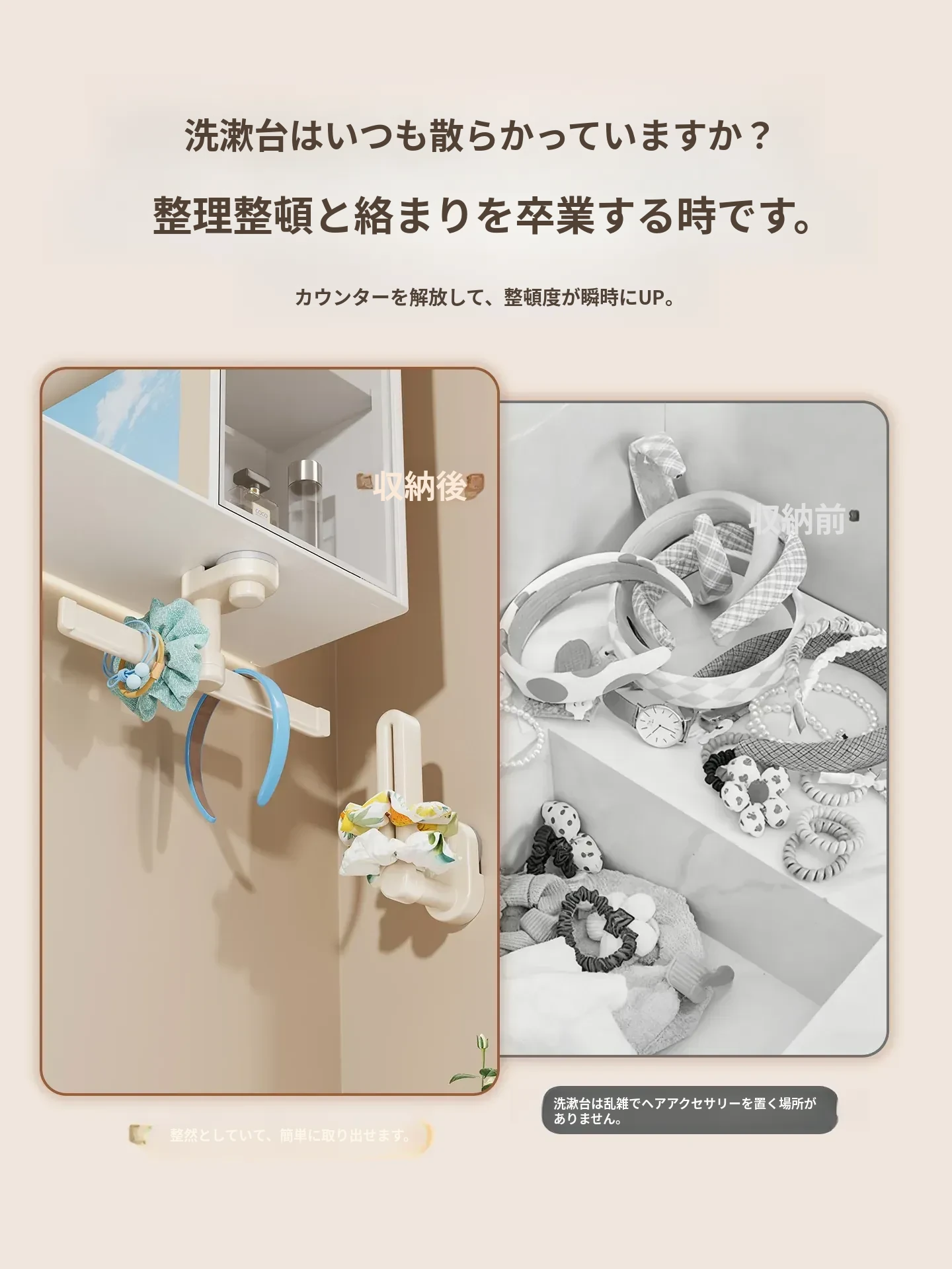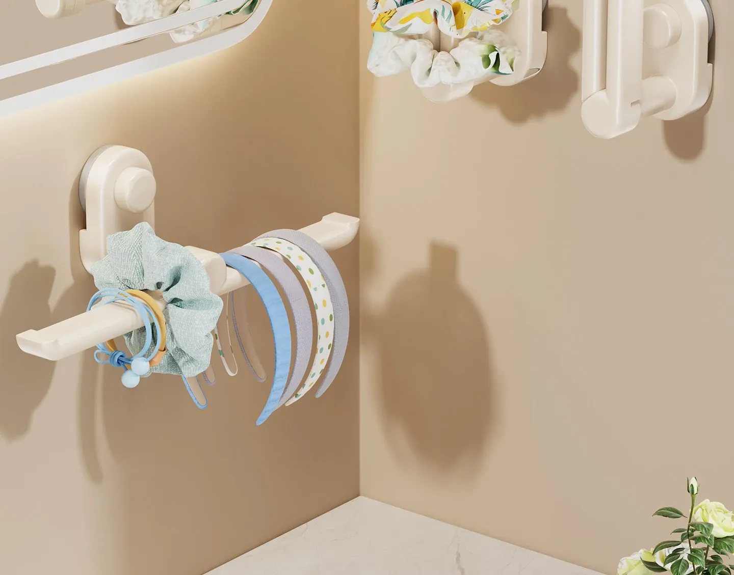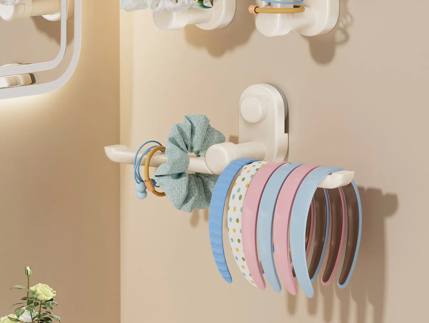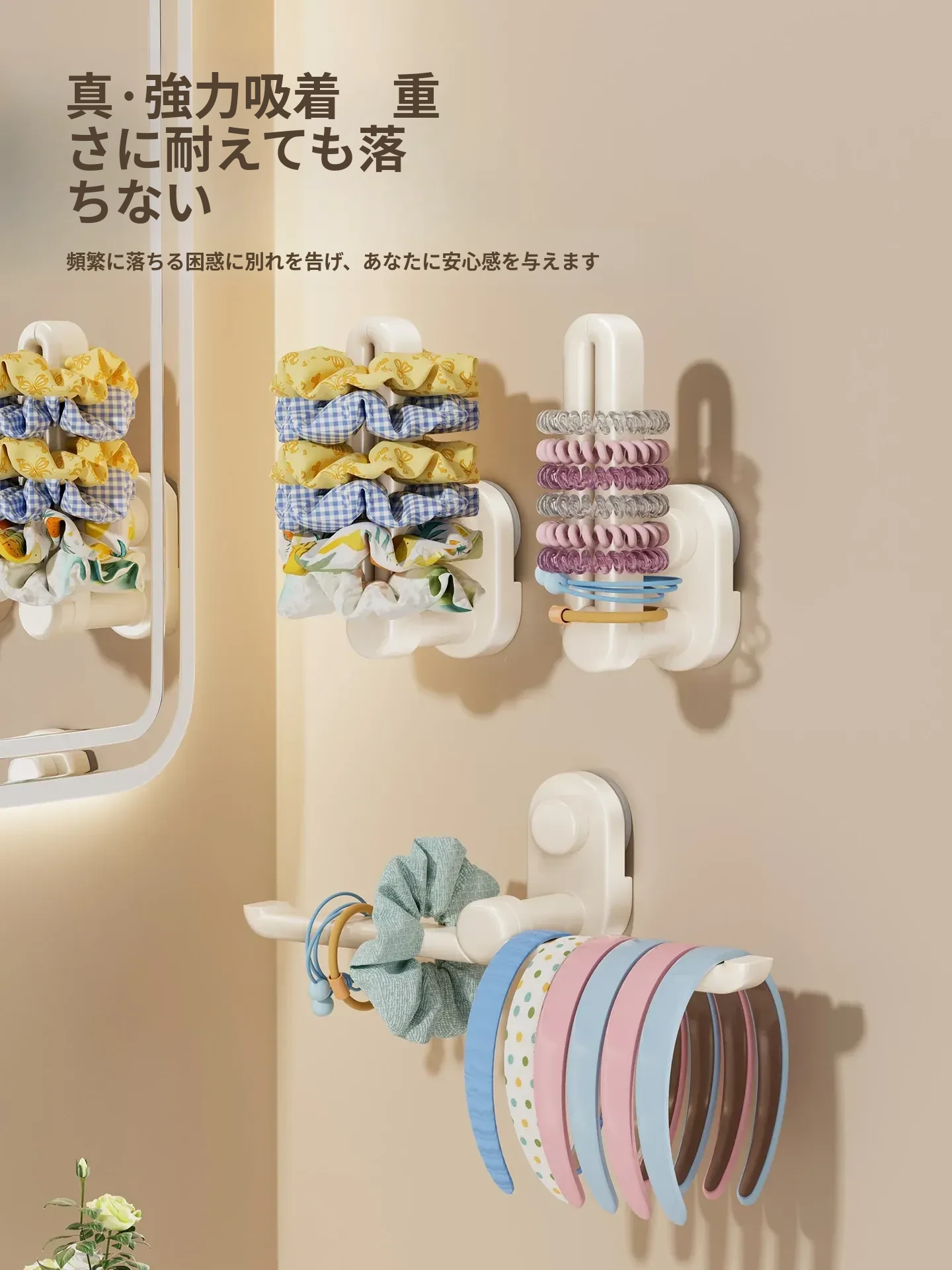 クリーム風吸盤ヘアクリップ&ヘアバンド収納神器!壁掛け式のヘアアクセサリーラックで、ヘアゴムやクリップをスッキリ整理!おしゃれで機能的なデザインで、あなたのスタイルを引き立てます!