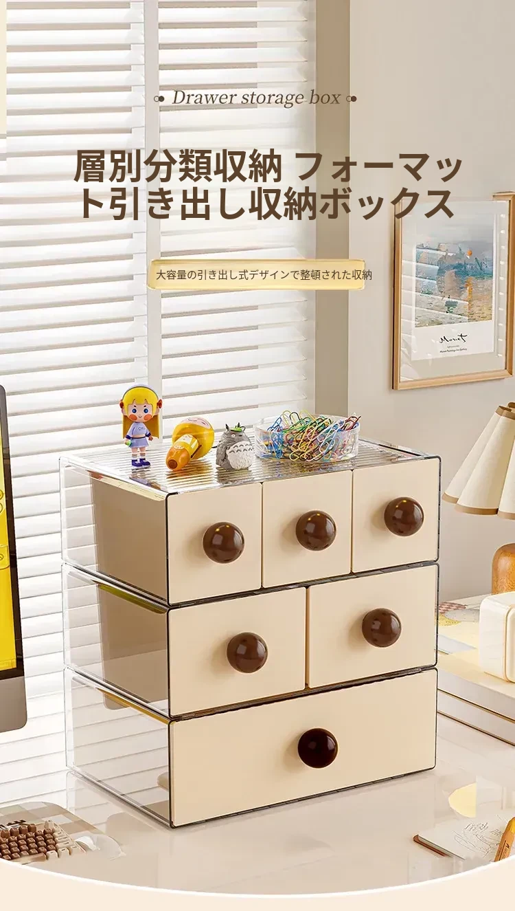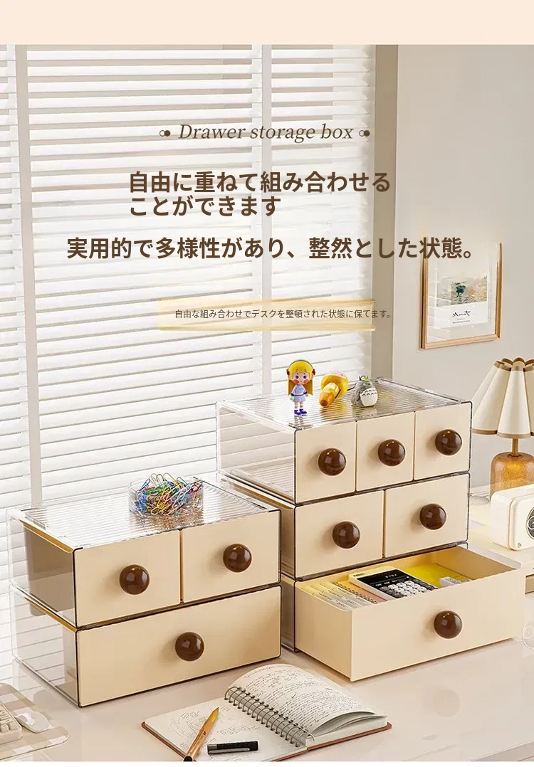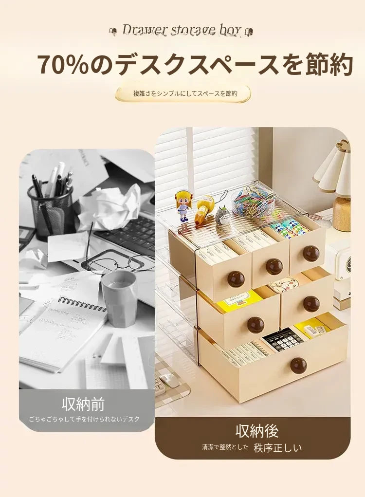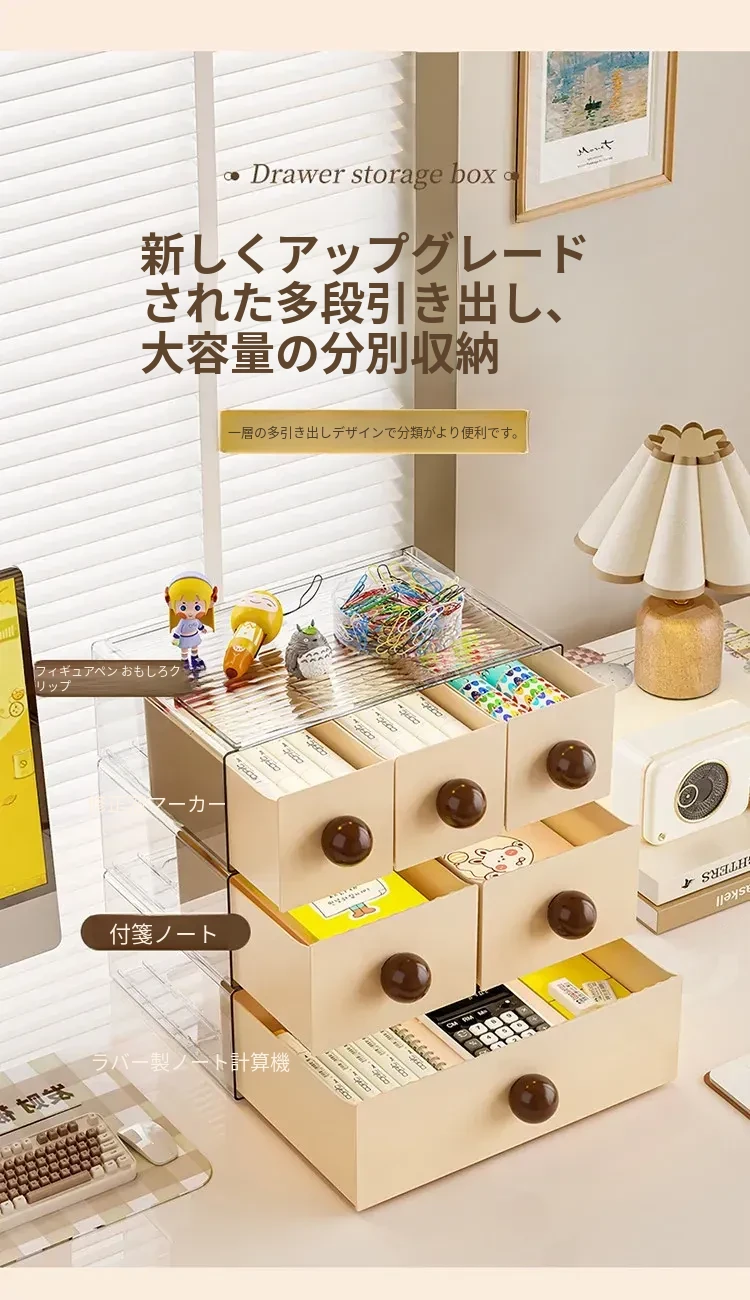 デスクトップ収納ボックス 引き出し式オフィス収納ラック 大容量化粧品・文房具整理ボックス 学生必見!すっきり整理整頓で作業効率アップ!