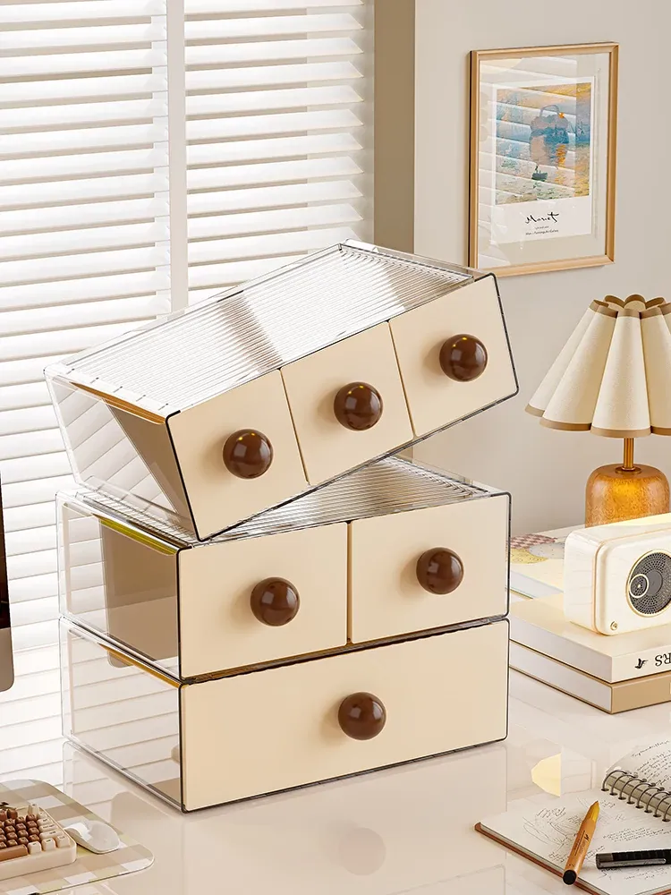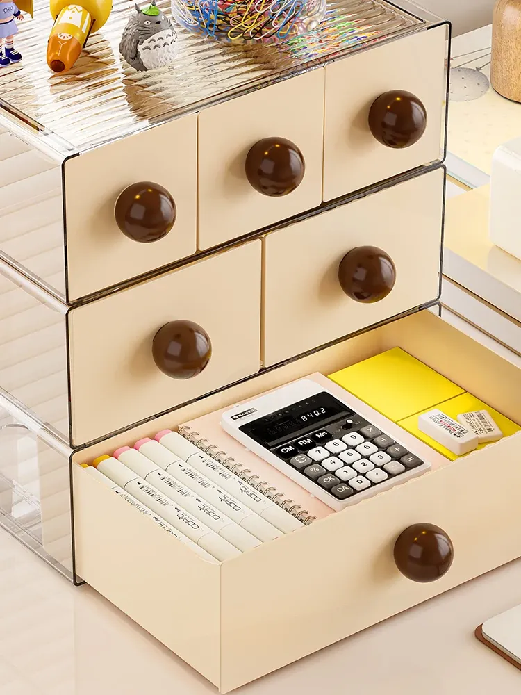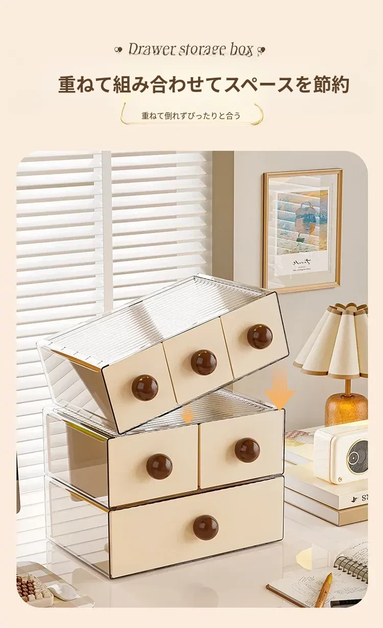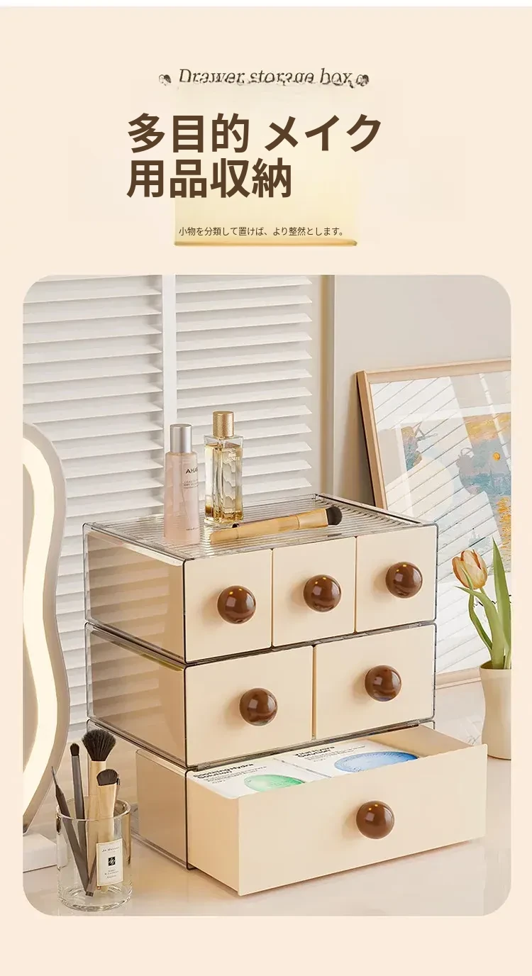デスクトップ収納ボックス 引き出し式オフィス収納ラック 大容量化粧品・文房具整理ボックス 学生必見!すっきり整理整頓で作業効率アップ!
