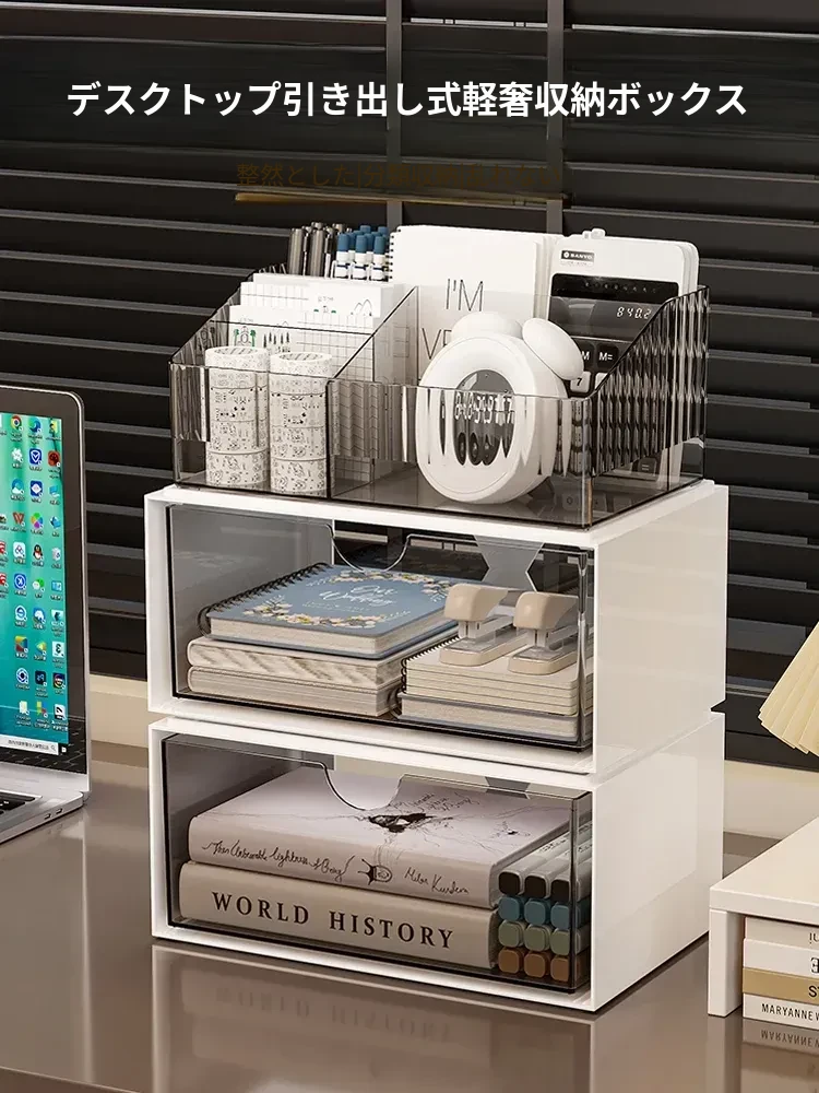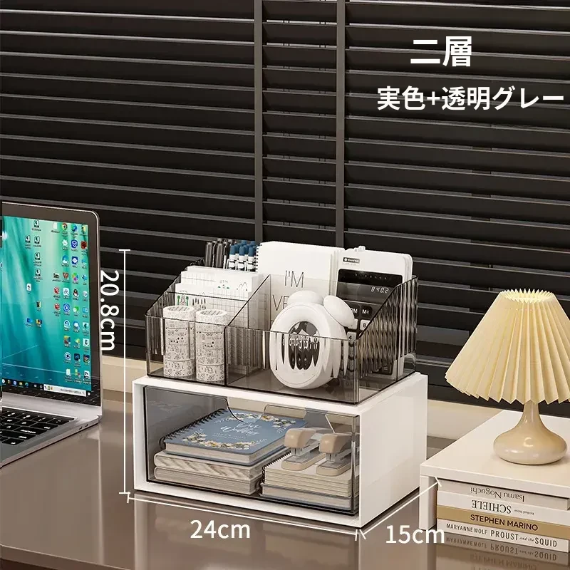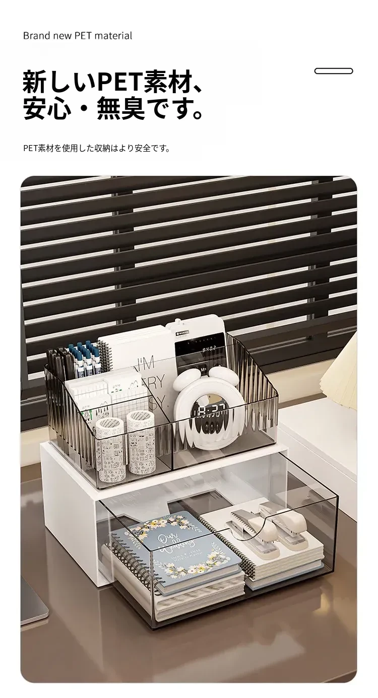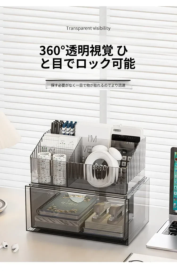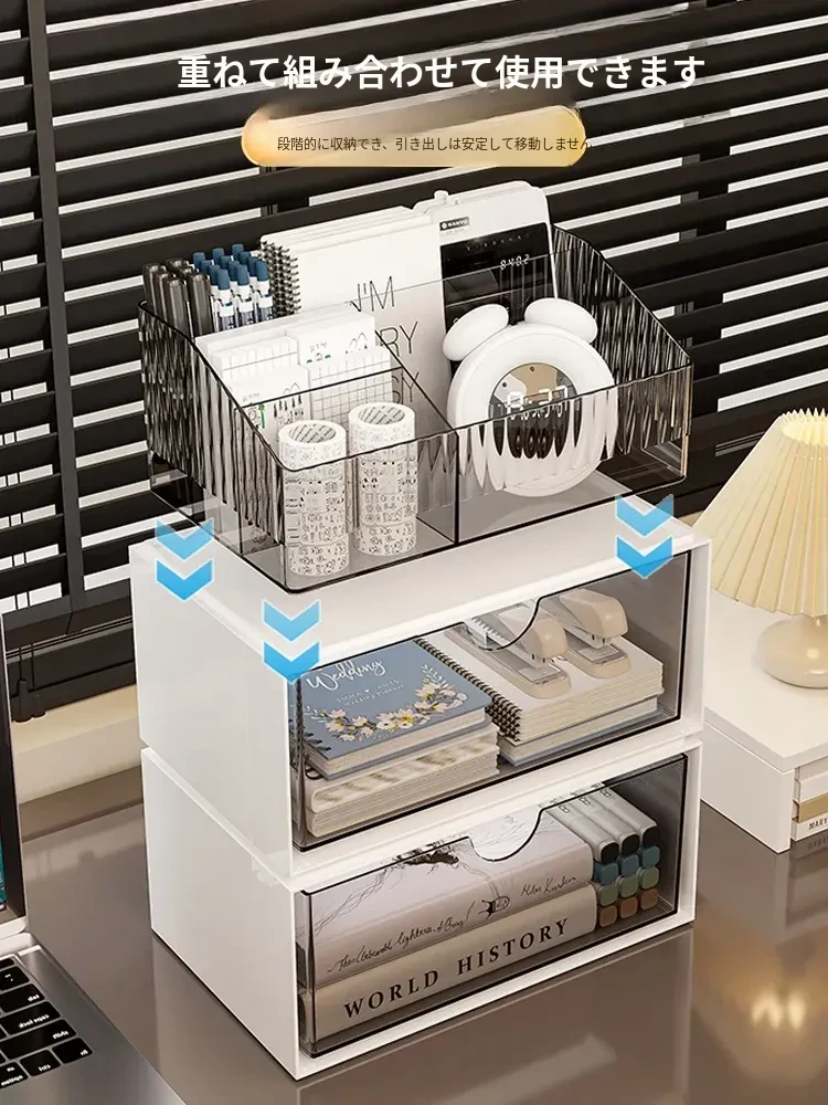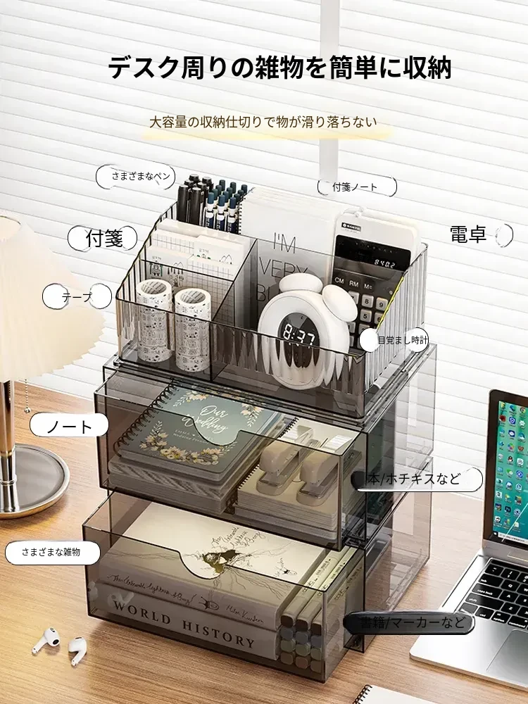 デスク整理ボックス 引き出し付き オフィスデスク用 ステーショナリー&化粧品収納に最適な便利グッズ!おしゃれでスッキリ整理整頓を実現!