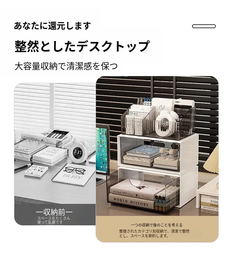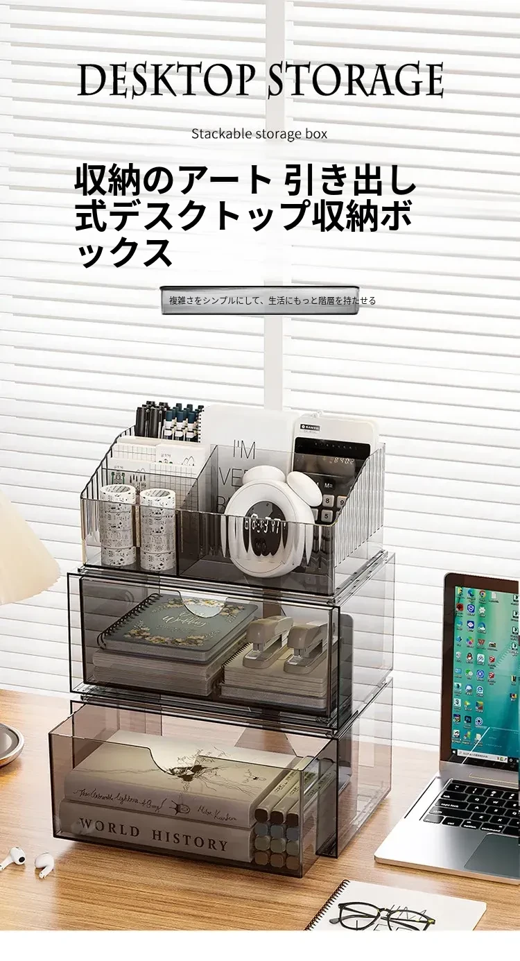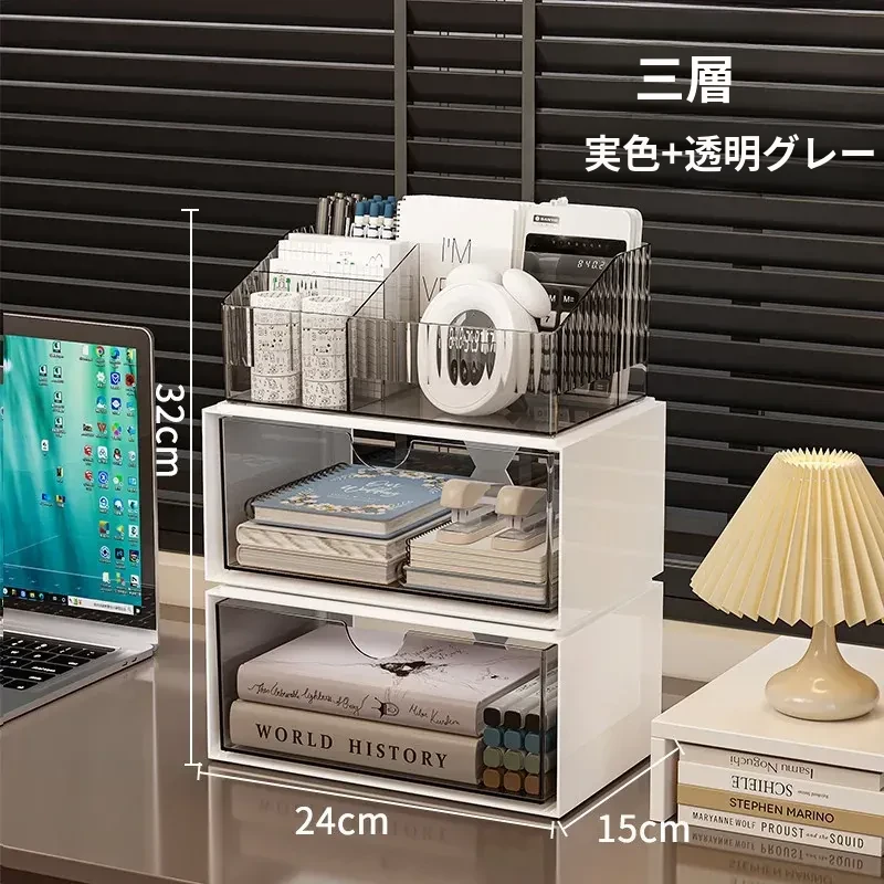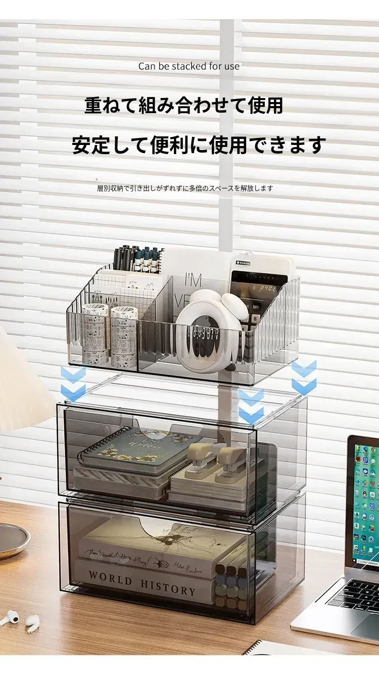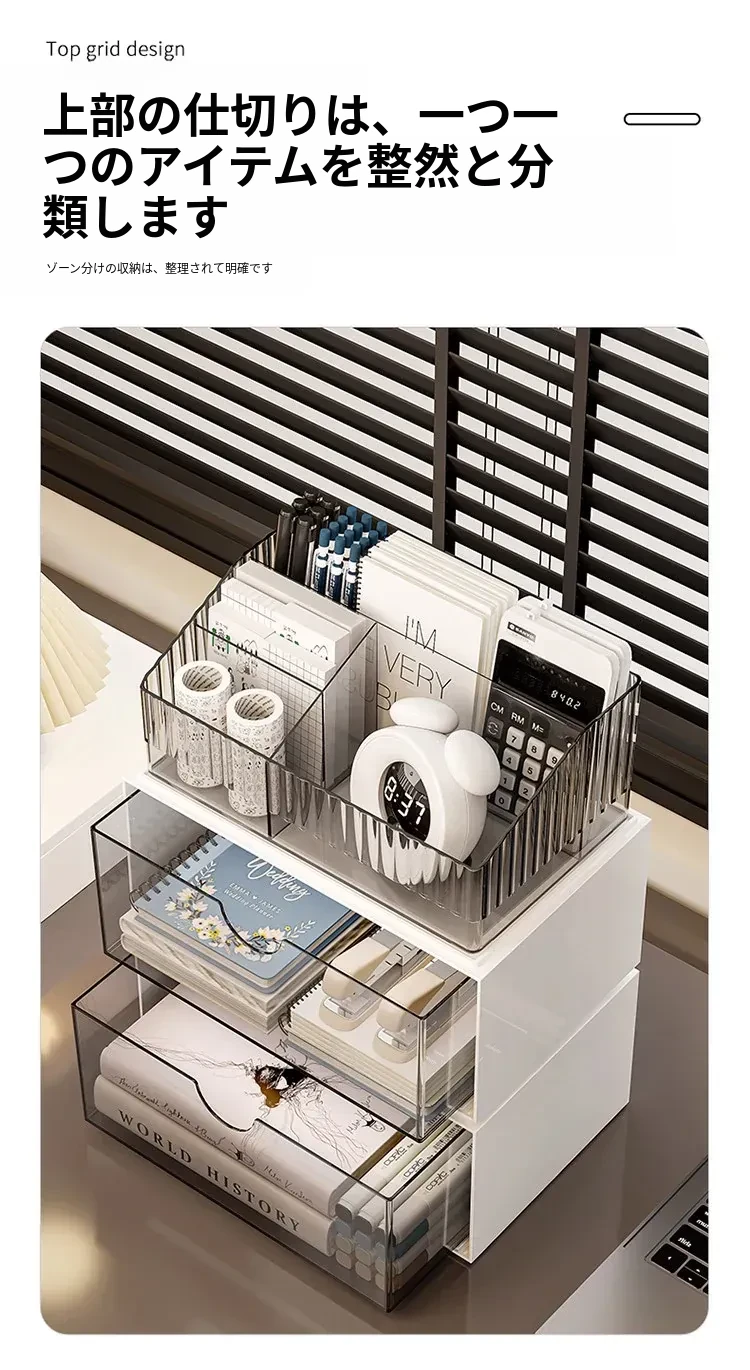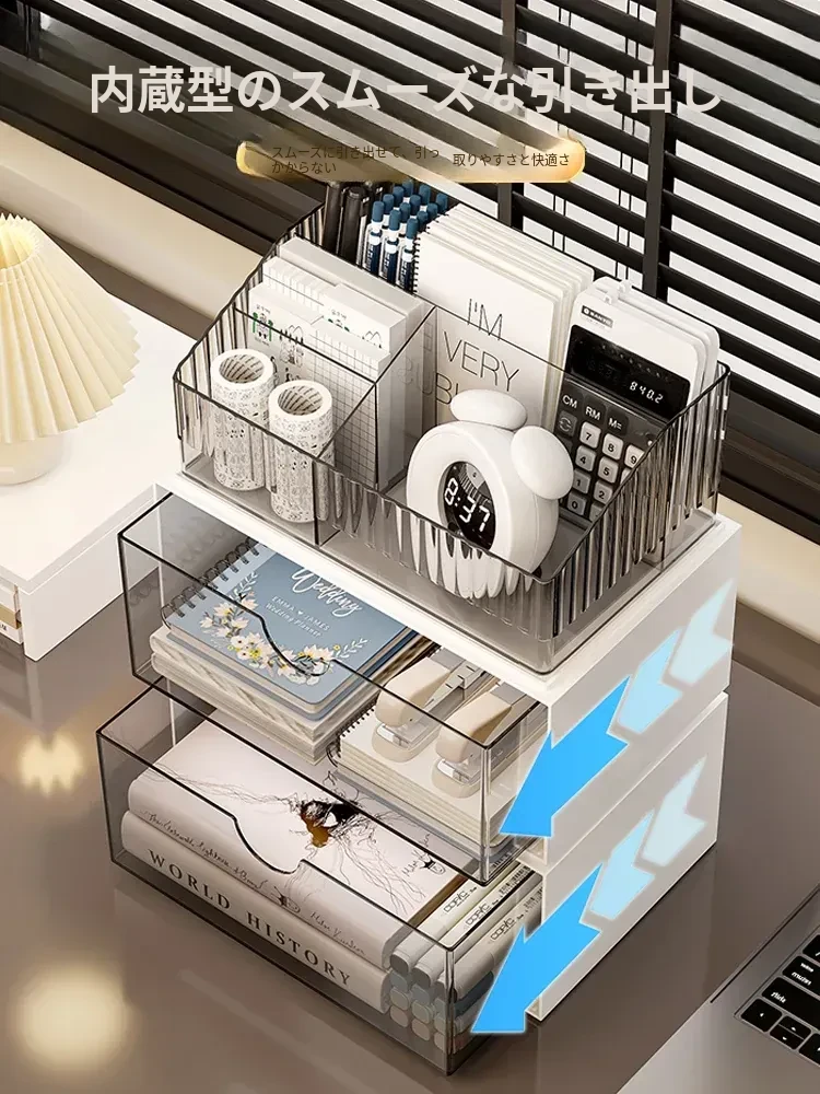 デスク整理ボックス 引き出し付き オフィスデスク用 ステーショナリー&化粧品収納に最適な便利グッズ!おしゃれでスッキリ整理整頓を実現!