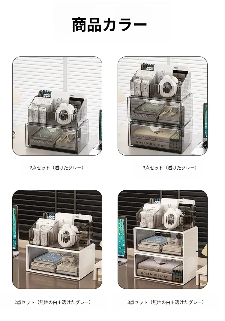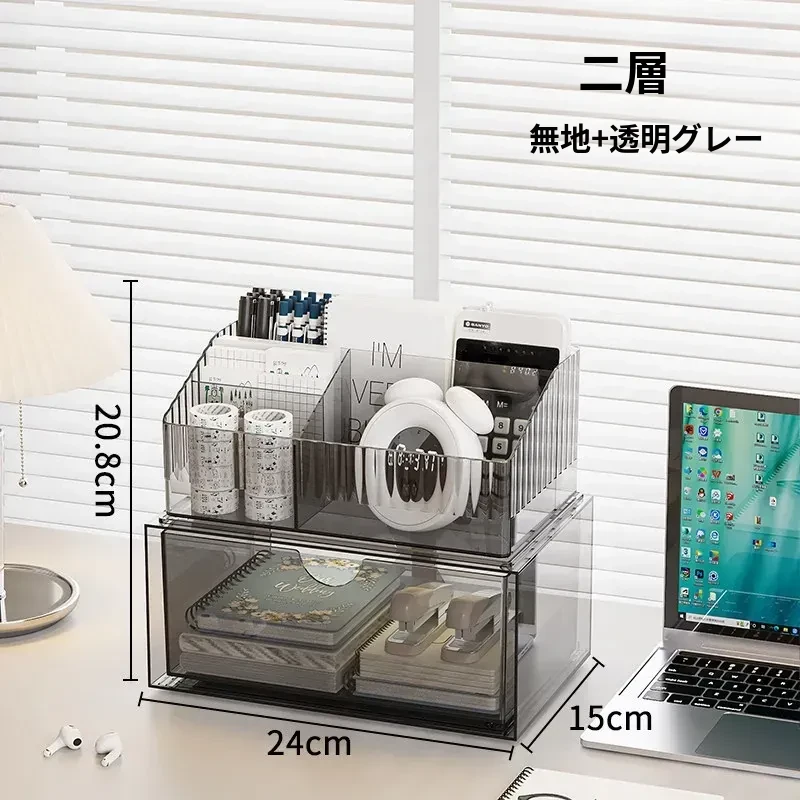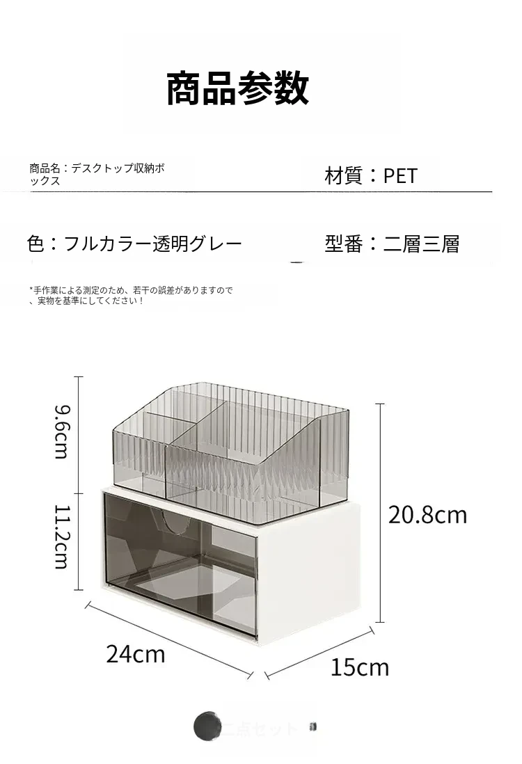 【透明グレー-二層】引き出し式⭐仕切り収納⭐透明可視