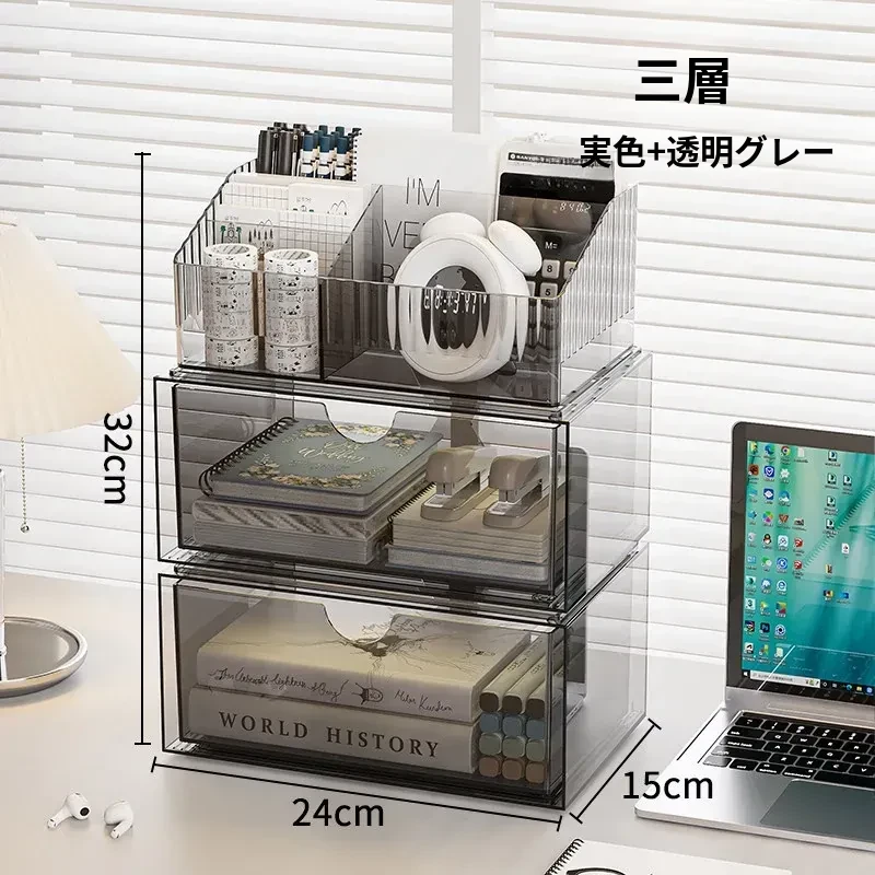 【透明グレー-三層】引き出し式⭐仕切り収納⭐透明可視