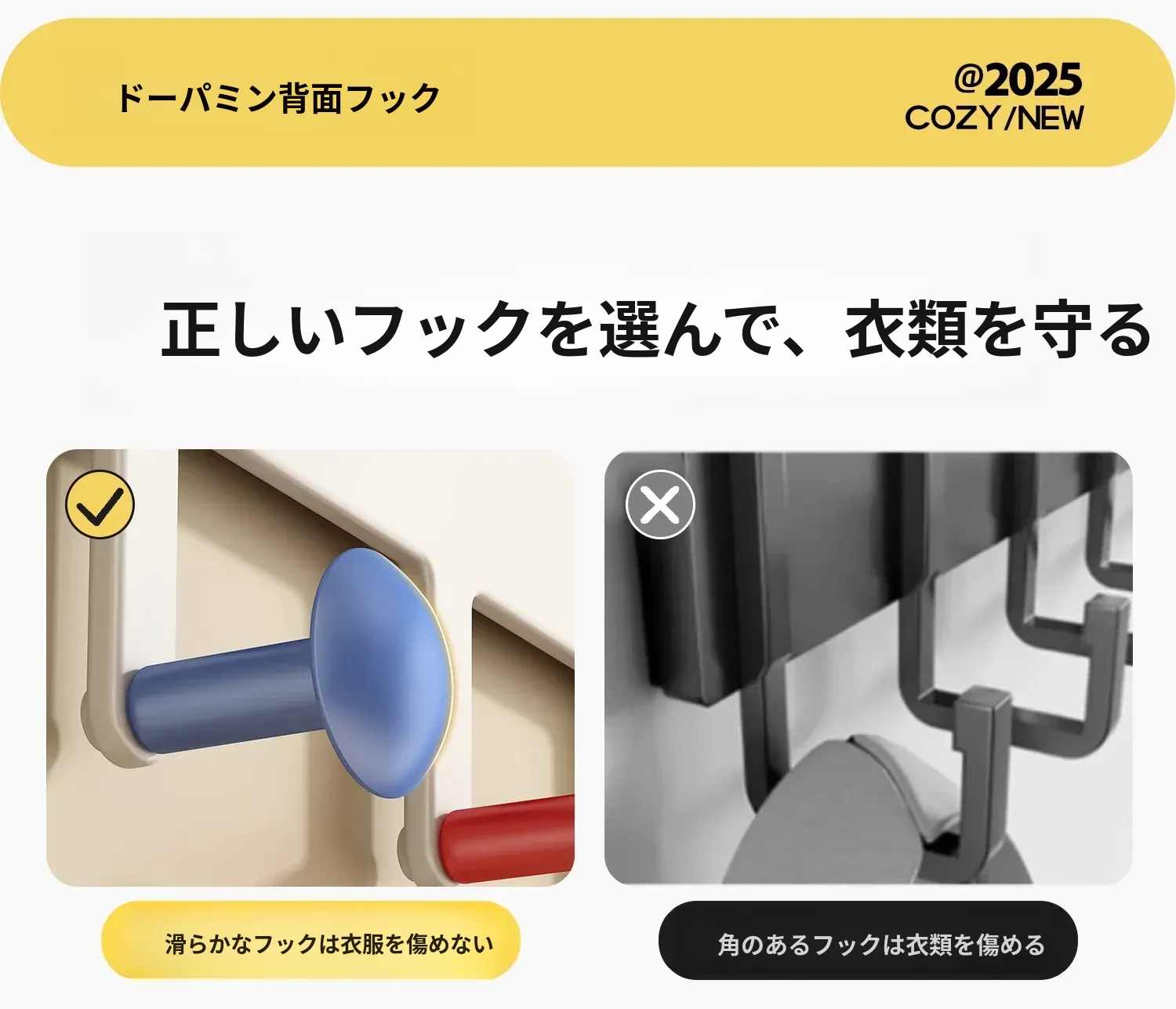 ドーパミンの魔法!穴を開けずに簡単取り付け、扉裏にぴったりのハンガー。衣類やバッグをスタイリッシュに収納できる壁掛けフック。おしゃれで便利な収納ソリューションを今すぐ手に入れましょう!