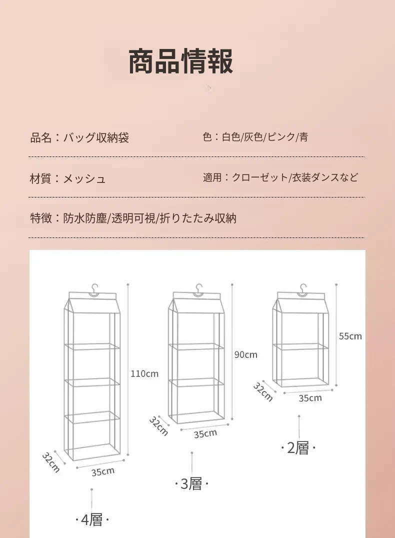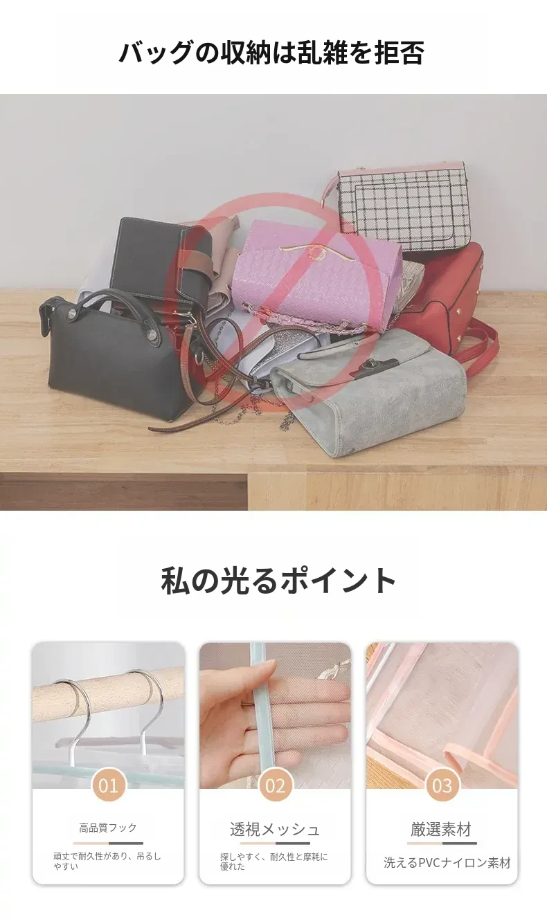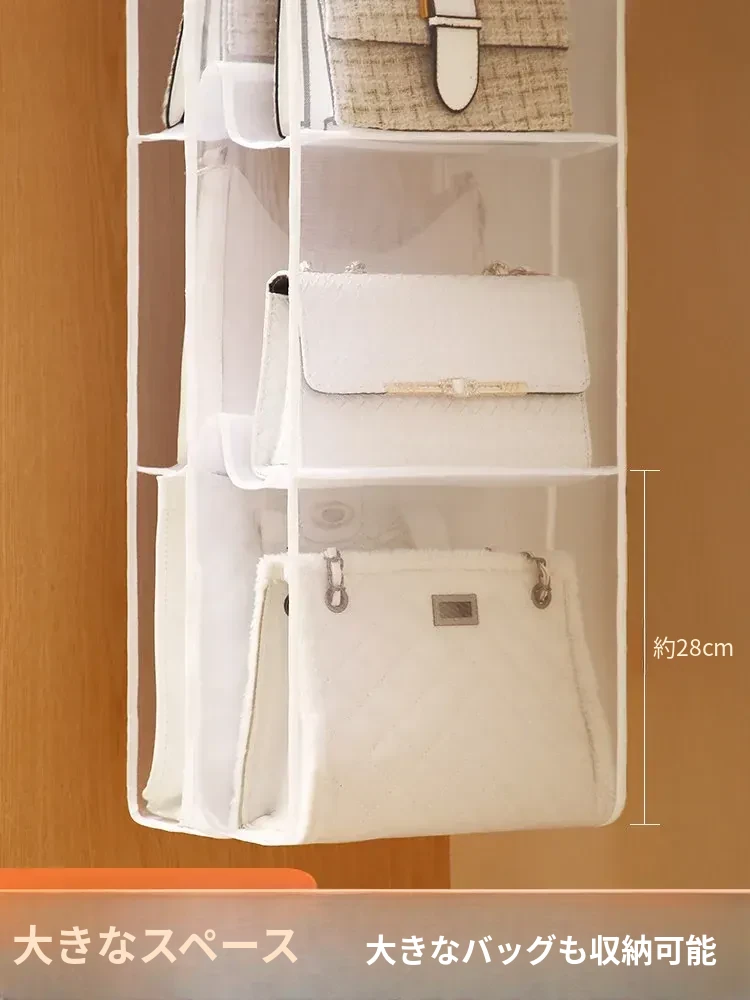 収納力抜群!壁掛けバッグ収納ポケット - 寮生活の必需品!ドアの裏に簡単設置、バッグをホコリから守りながらスッキリ整理。あなたの空間を有効活用する便利な収納アイテム!