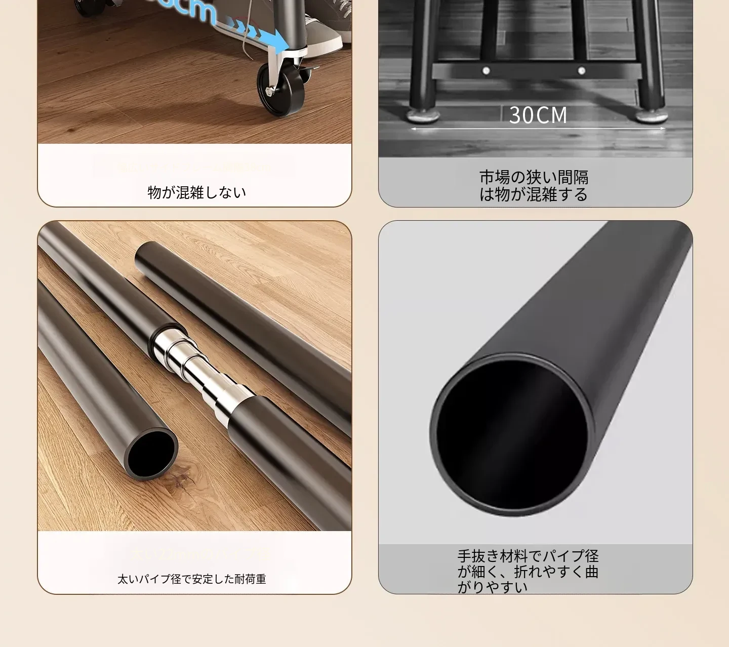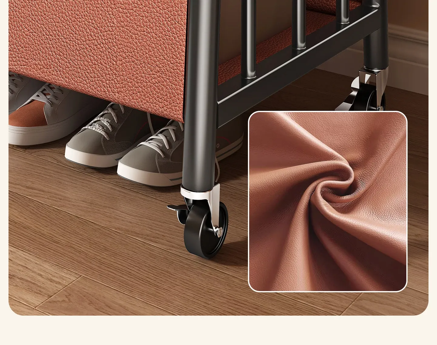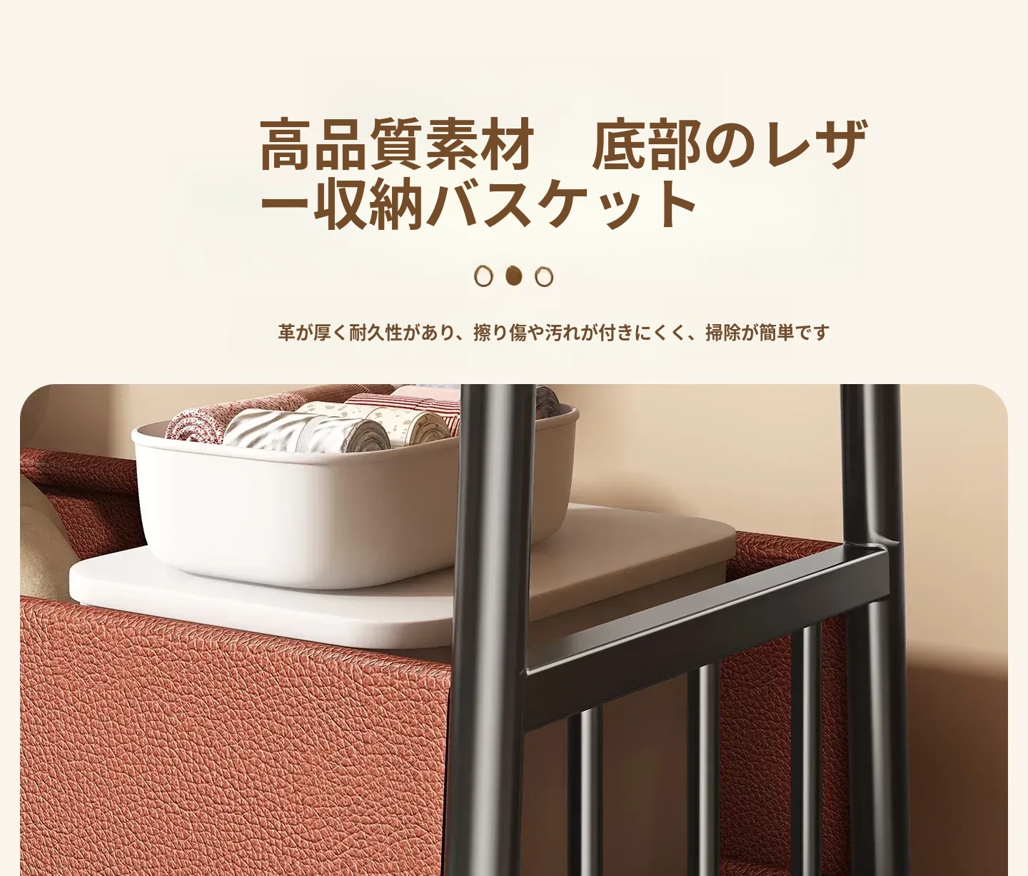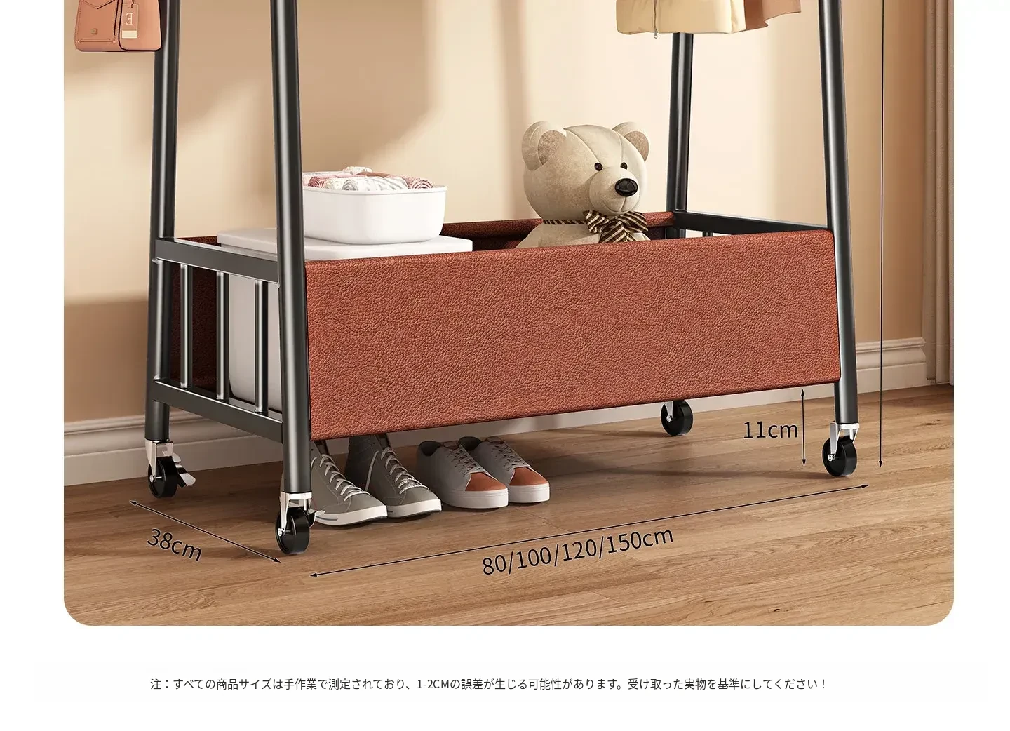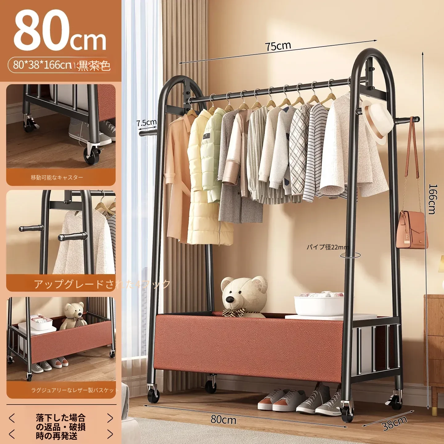 【太い鋼管】黒茶色80cm❤皮ポケット収納+フック付き+キャスター付き『2026年モデルのプレミアム』