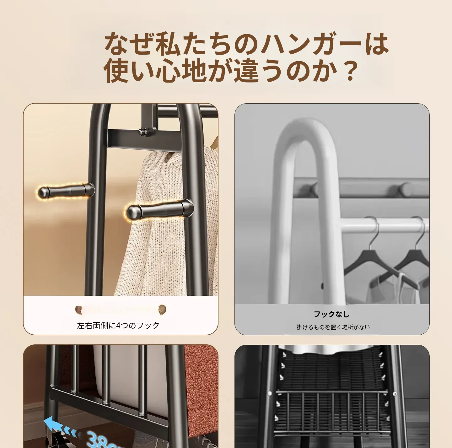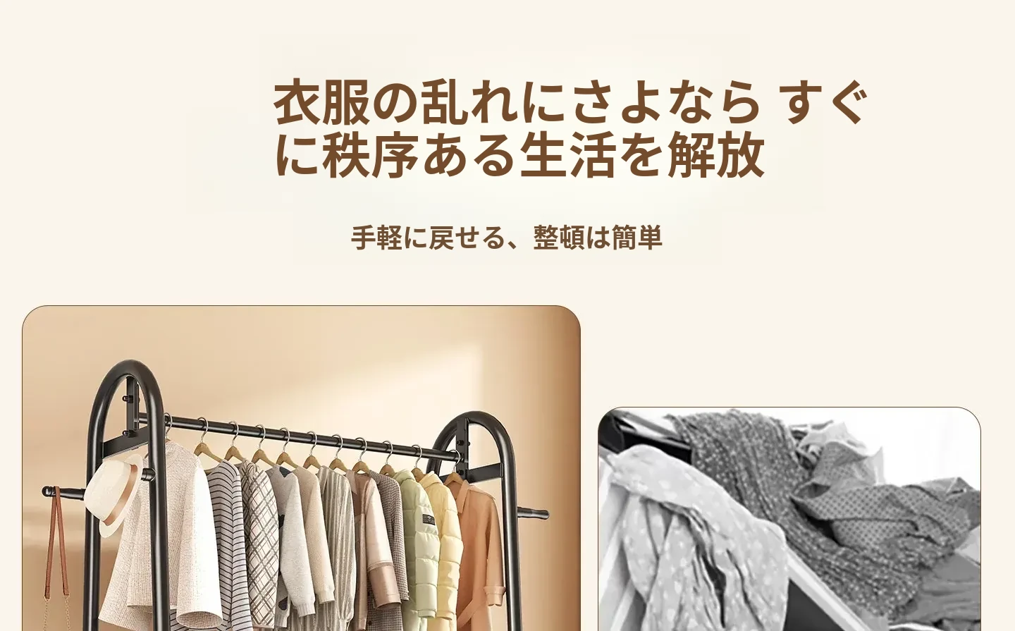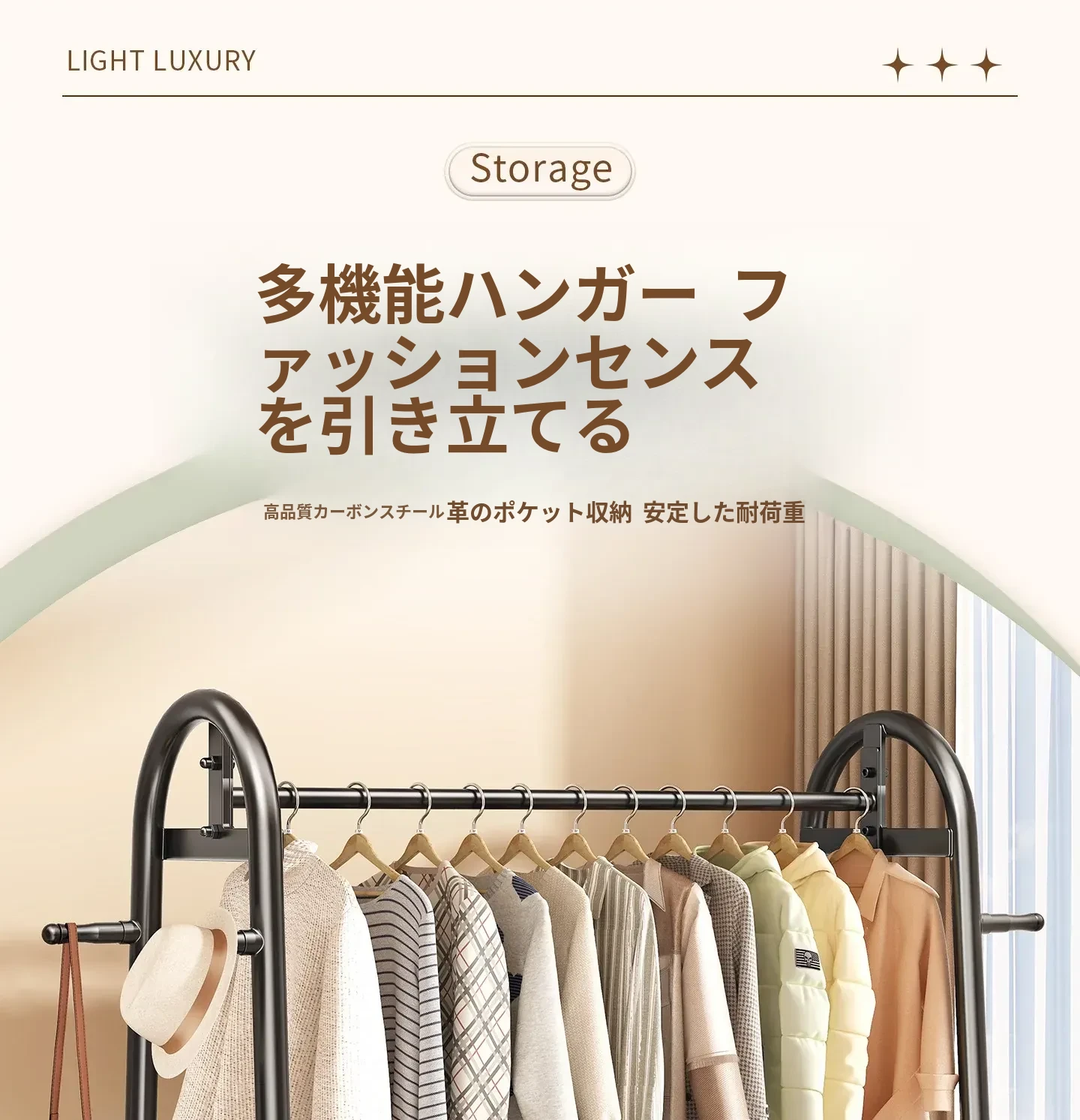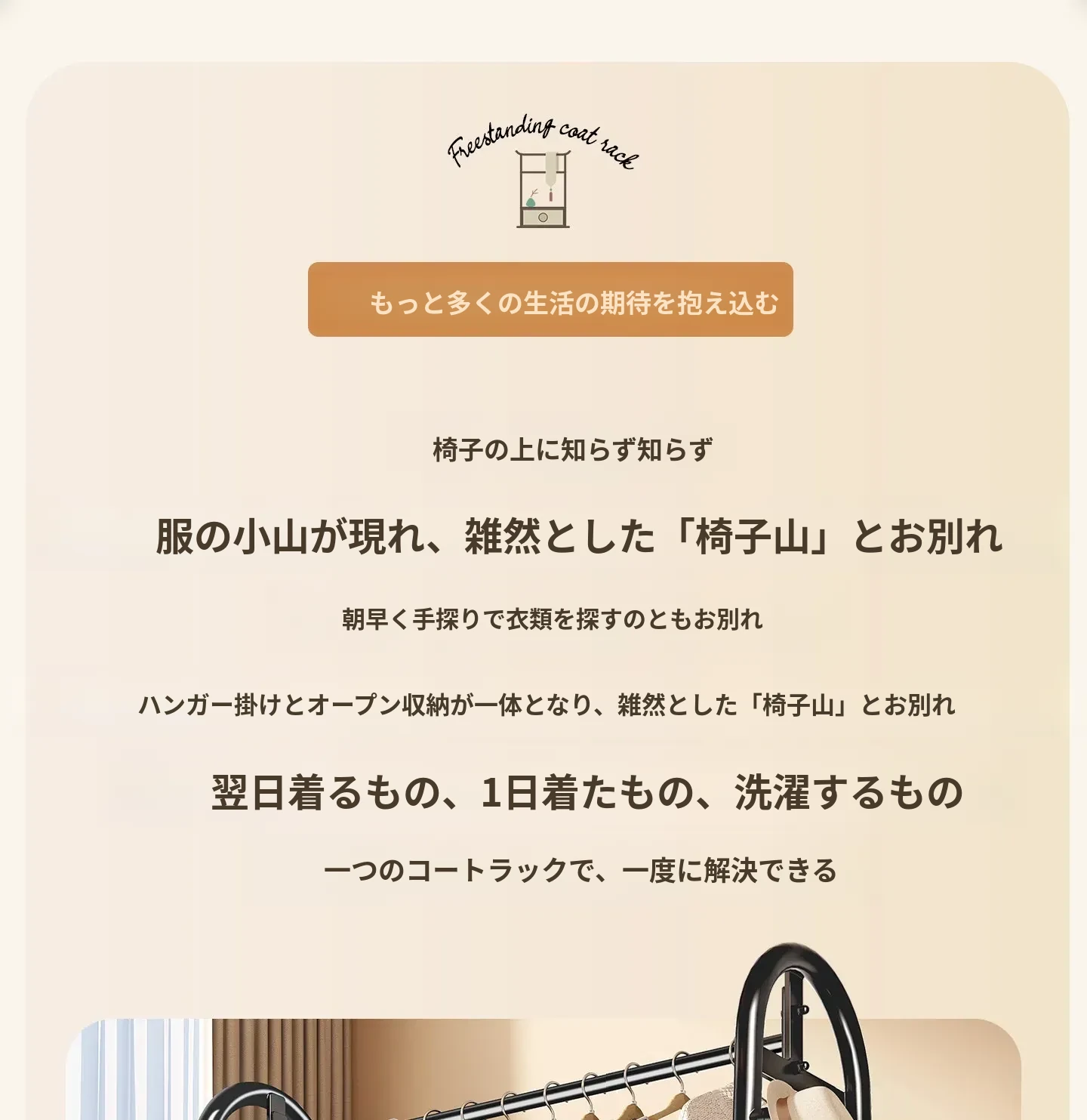 寝室用のスタイリッシュなフロアハンガー - 多機能衣類掛け、軽量で移動もラクラク!おしゃれなインテリアで部屋を華やかにし、収納力も抜群。お家での快適な生活を演出します!