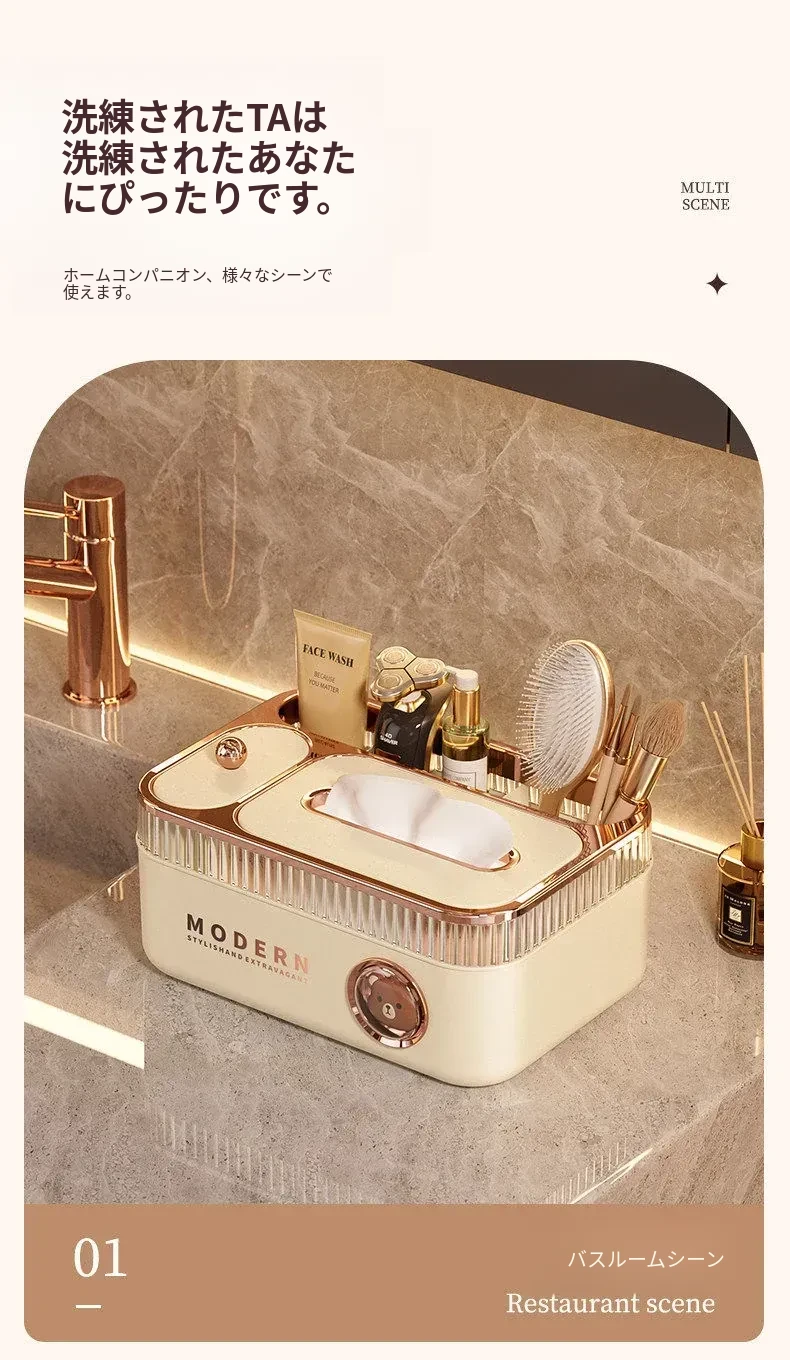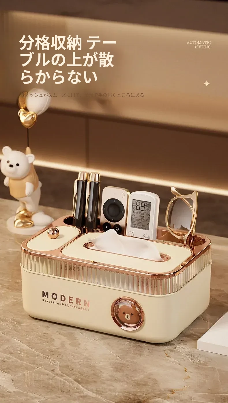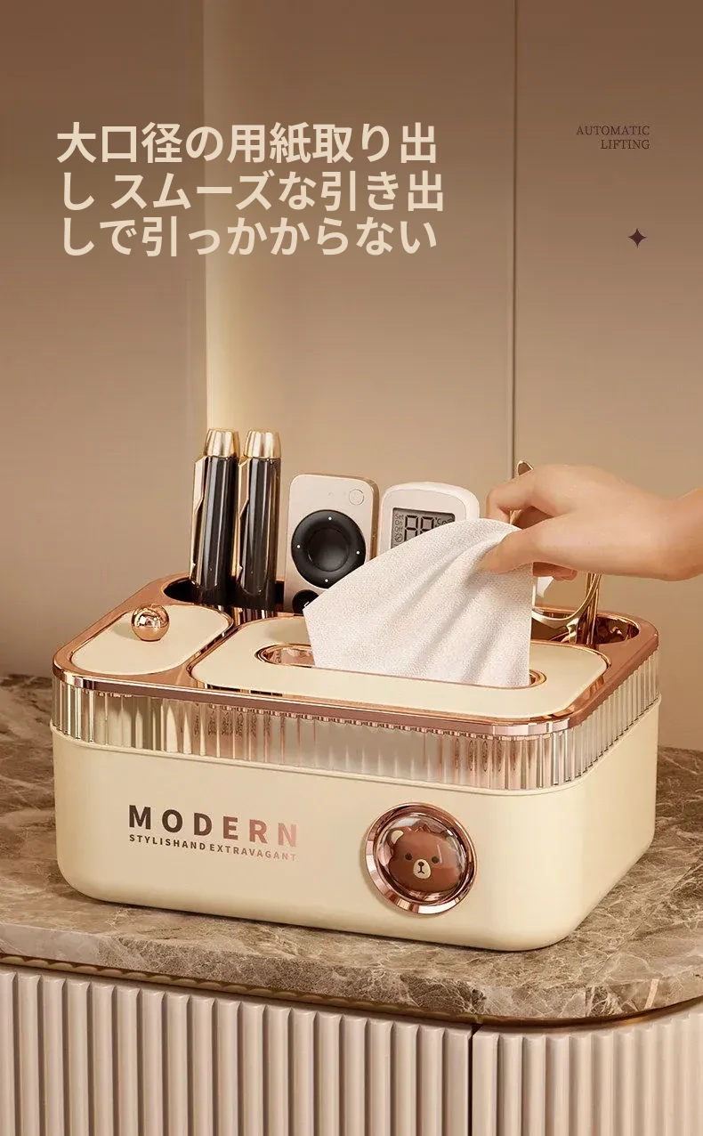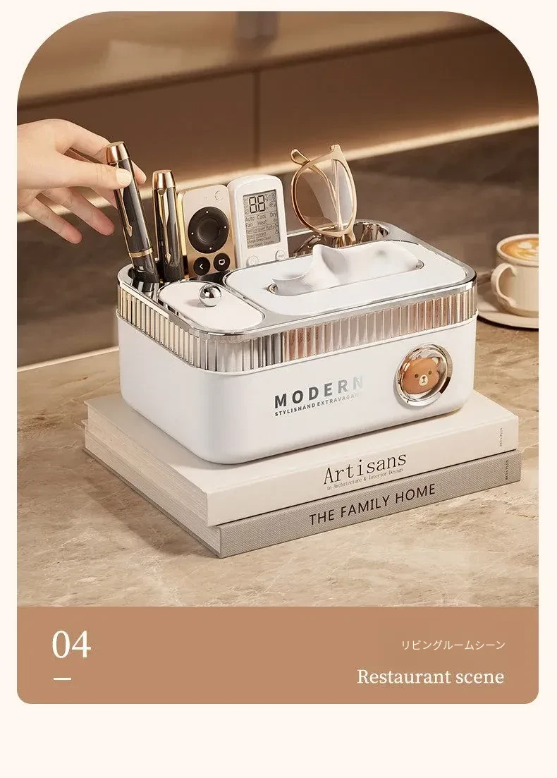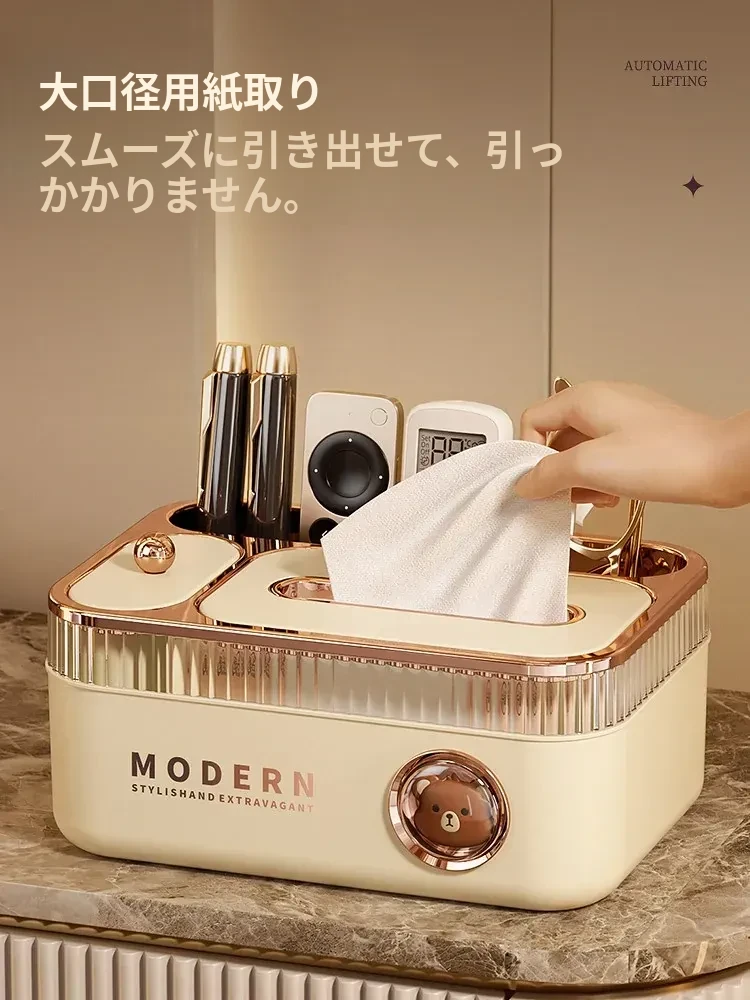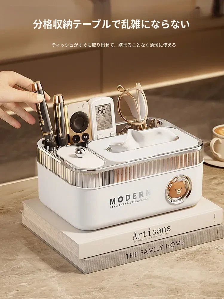 朋菲多機能リモコン収納ティッシュボックス - リビングやダイニングテーブルに最適な高級感漂う新作!おしゃれで機能的なデザインで、すっきりとした空間を演出します。