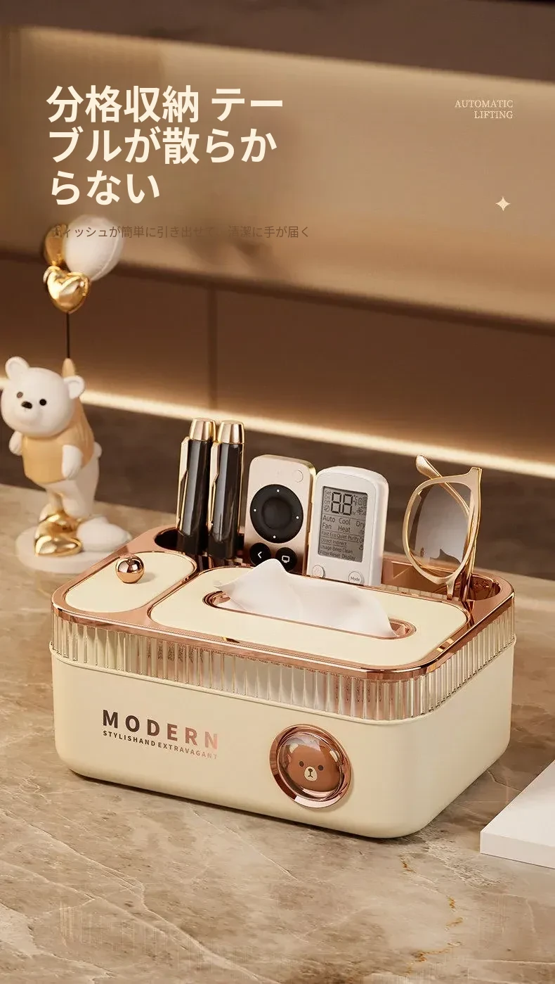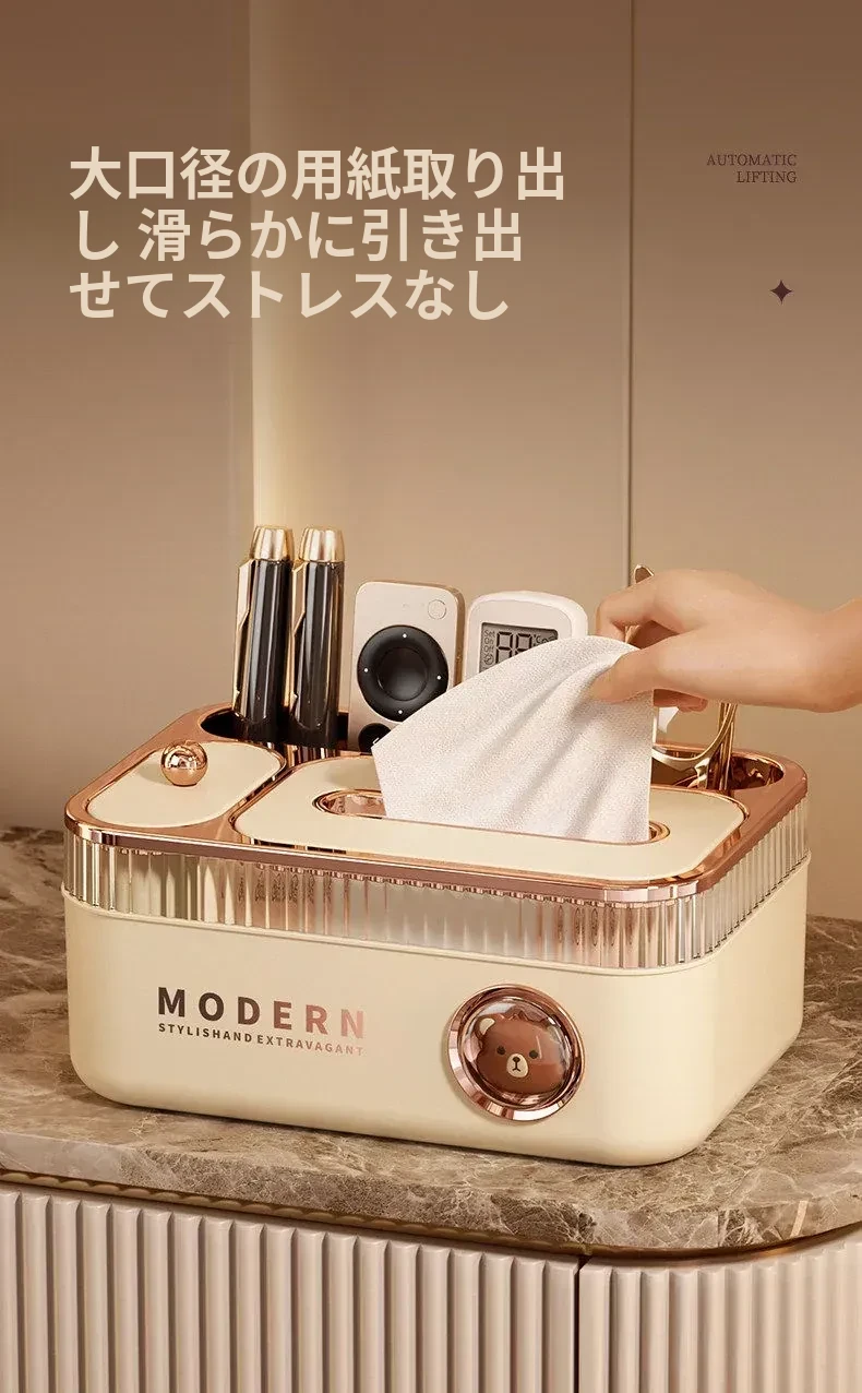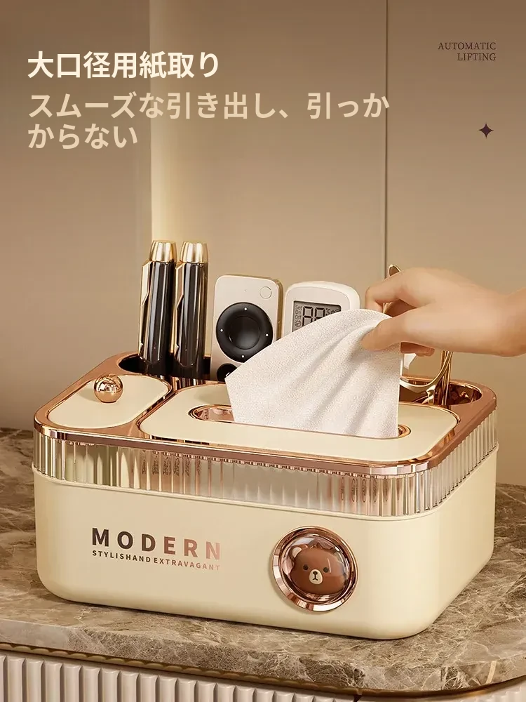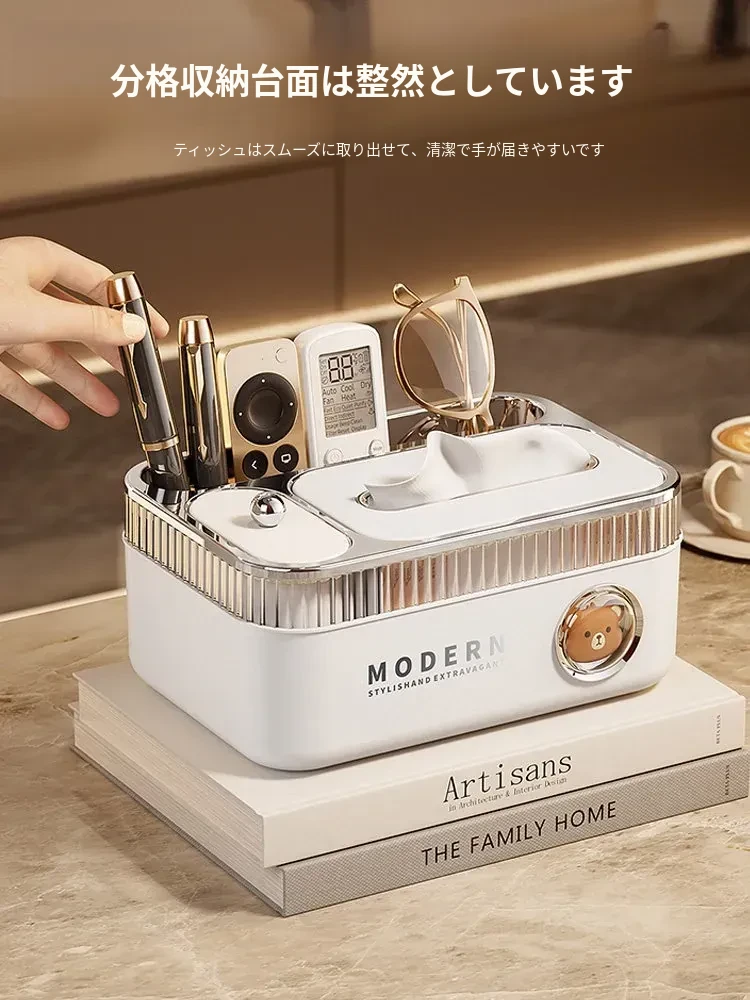 ポンフィの多機能ティッシュボックス - リモコン収納もできるデザイン性抜群のデスクトップ用ティッシュケース。リビングやダイニングにぴったりの高級感あふれる新作!