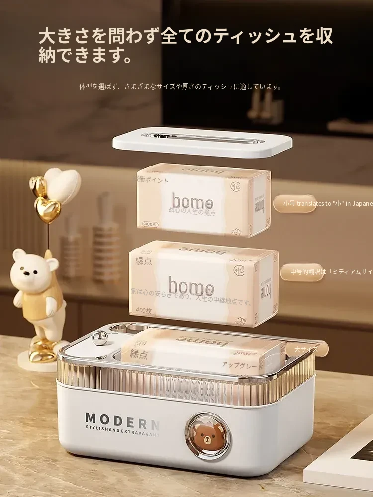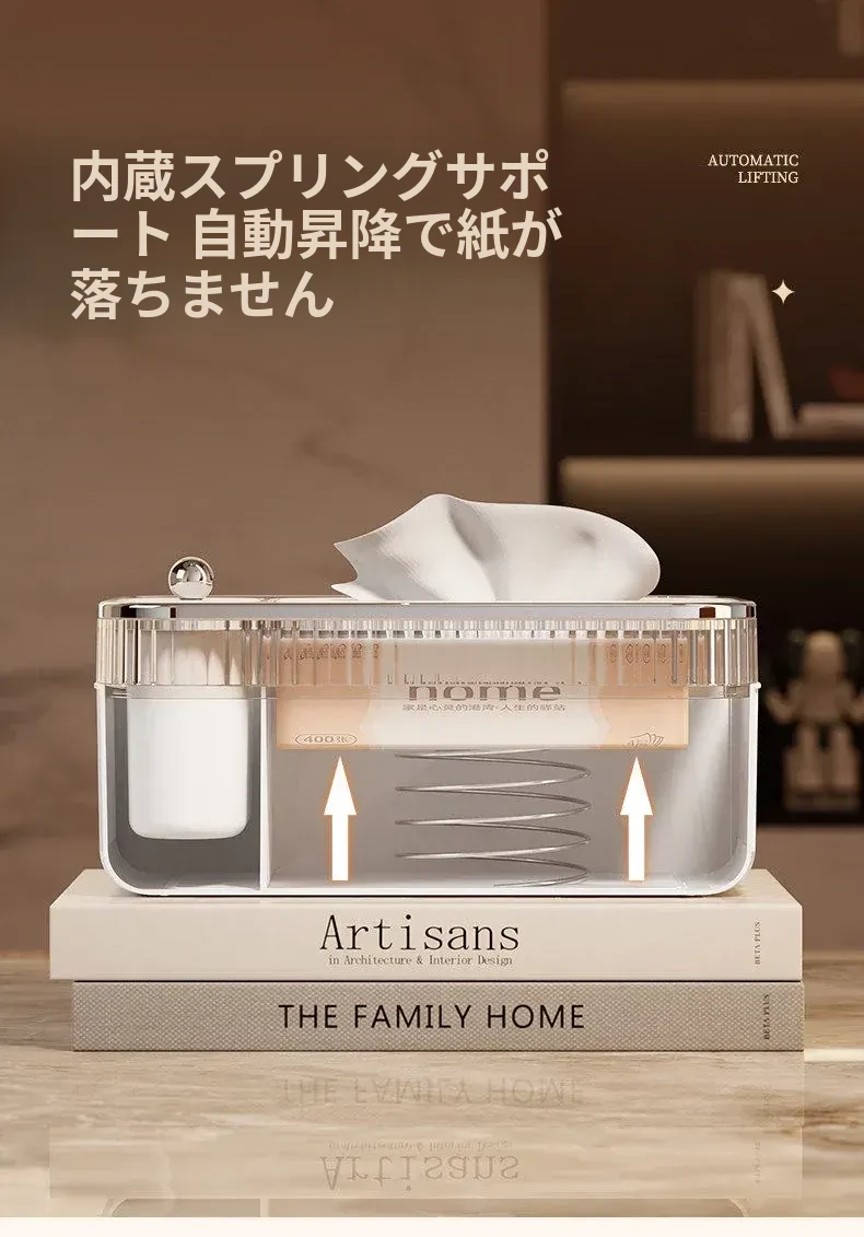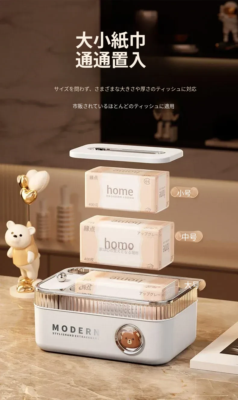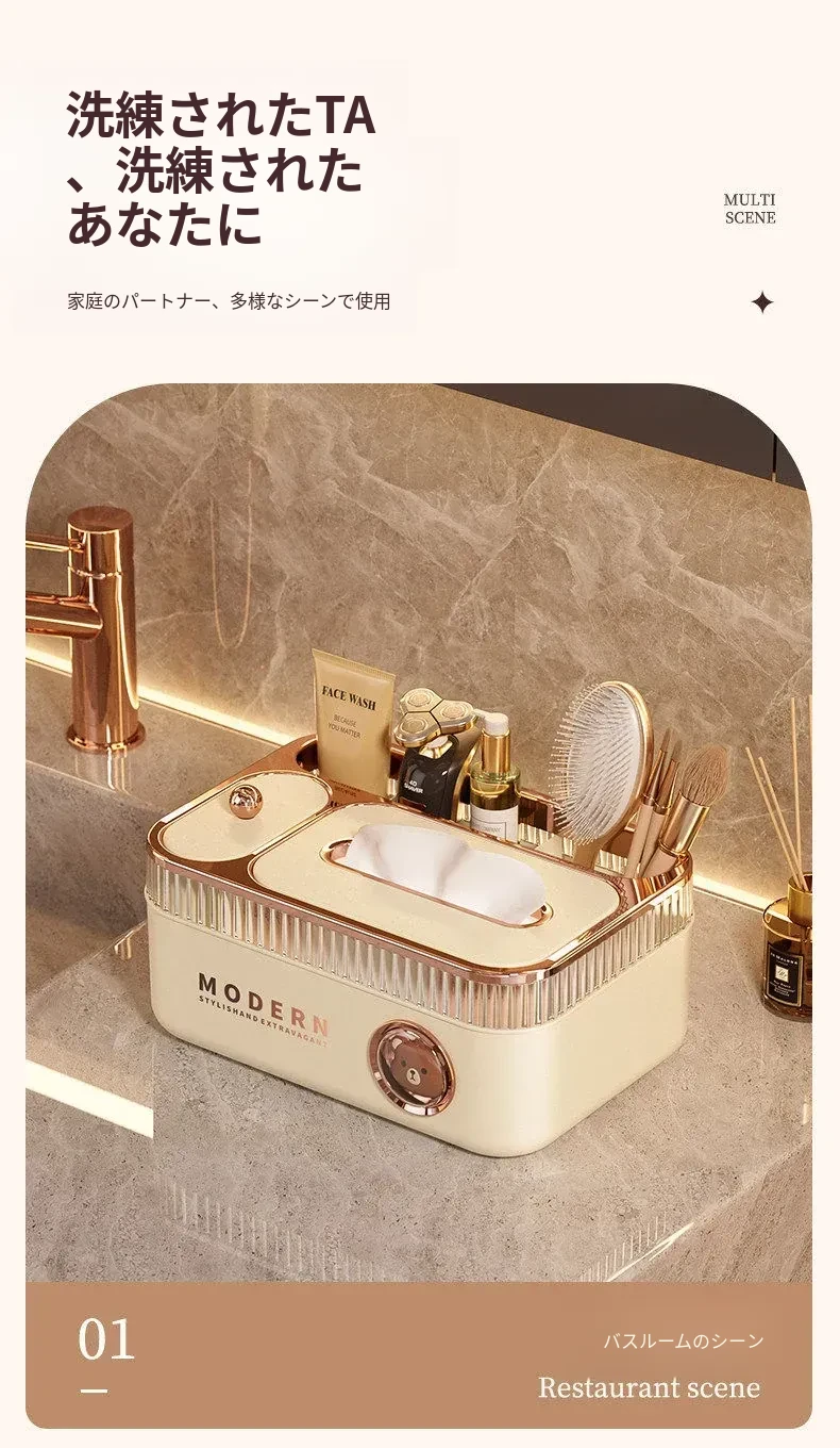 ポンフィの多機能ティッシュボックス - リモコン収納もできるデザイン性抜群のデスクトップ用ティッシュケース。リビングやダイニングにぴったりの高級感あふれる新作!