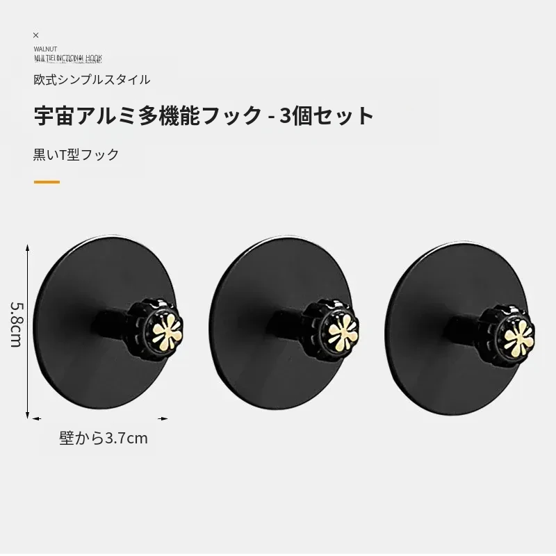 黒色円形フックAタイプ-3個セット(穴あけ不要)