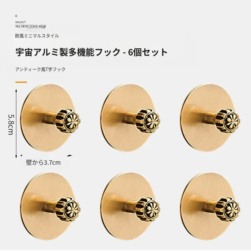 アンティーク円形フックAタイプ-6個セット(穴あけ不要)