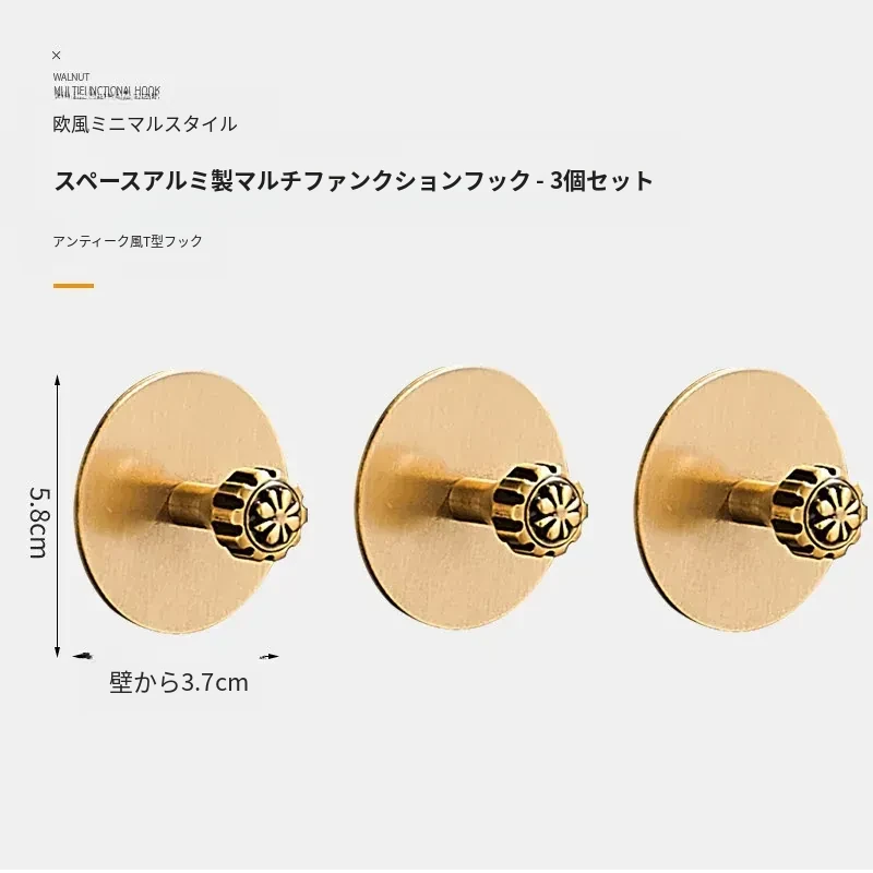 アンティーク円形フックAタイプ-3個セット(穴あけ不要)