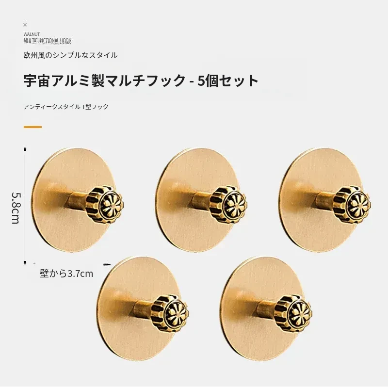 アンティーク円形フックAタイプ-5個セット(穴あけ不要)