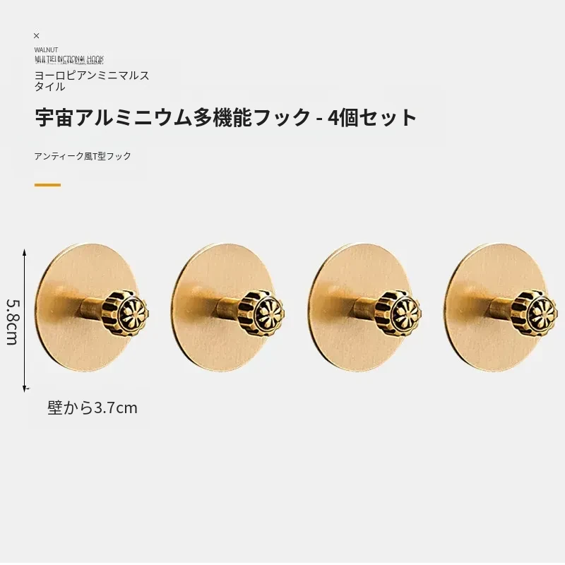 アンティーク円形フックAタイプ-4個セット(穴あけ不要)