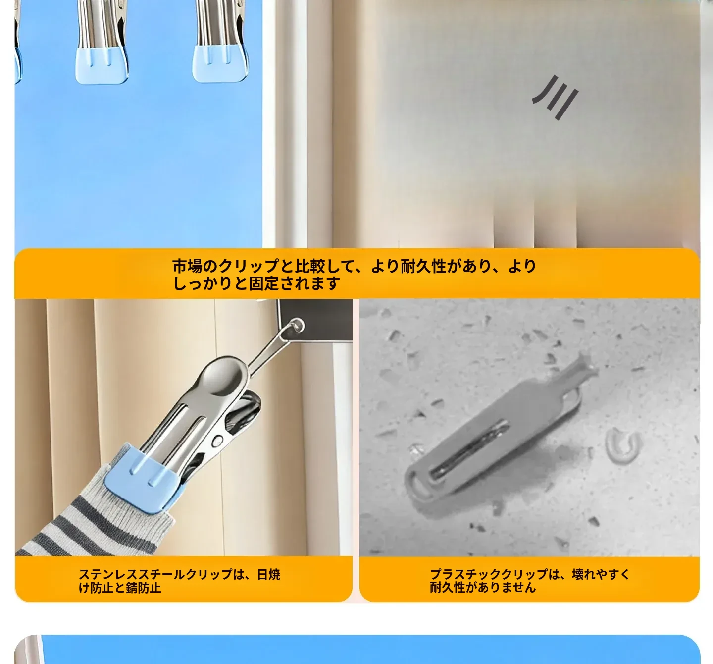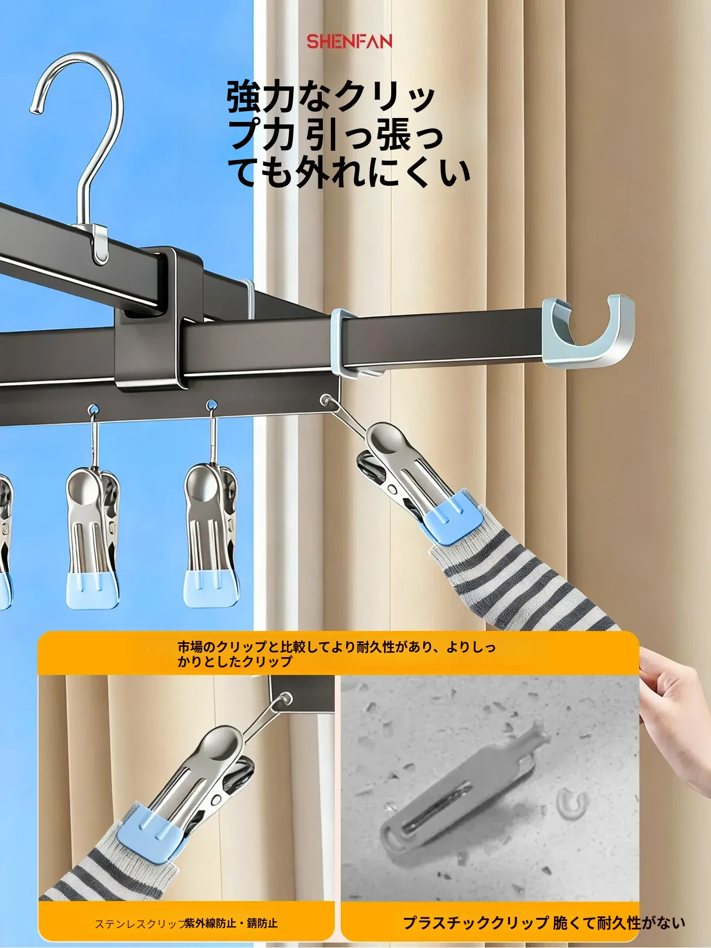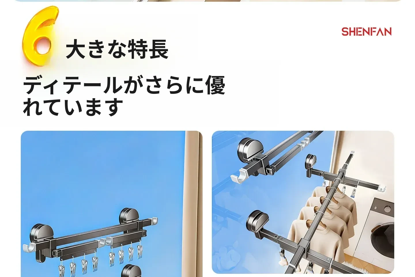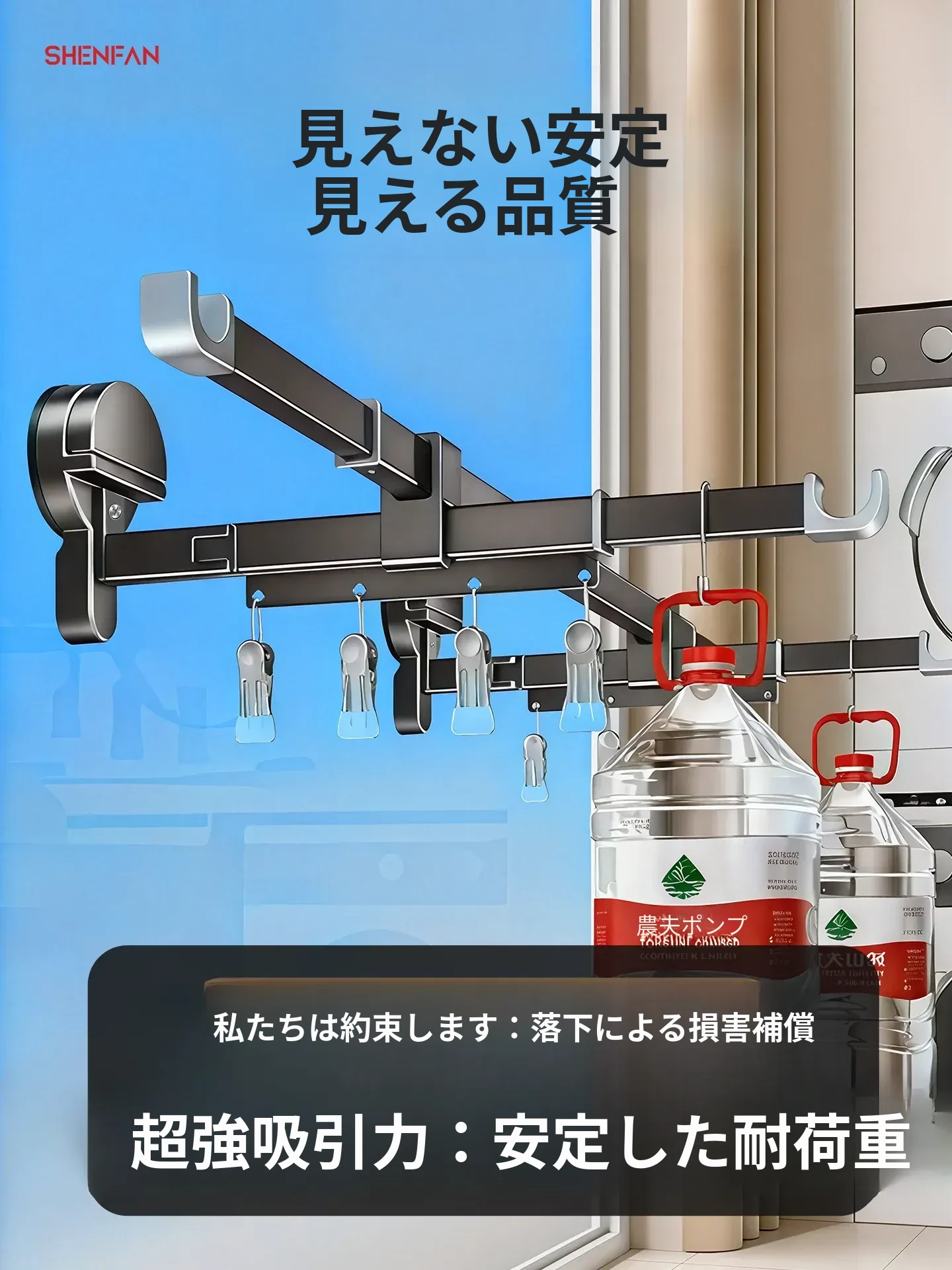 吸盤式折りたたみ物干しハンガー|隠れた伸縮機能で室内でも使える!バルコニーに最適な布団干し&衣類干しの必需品!家族のための便利アイテム!