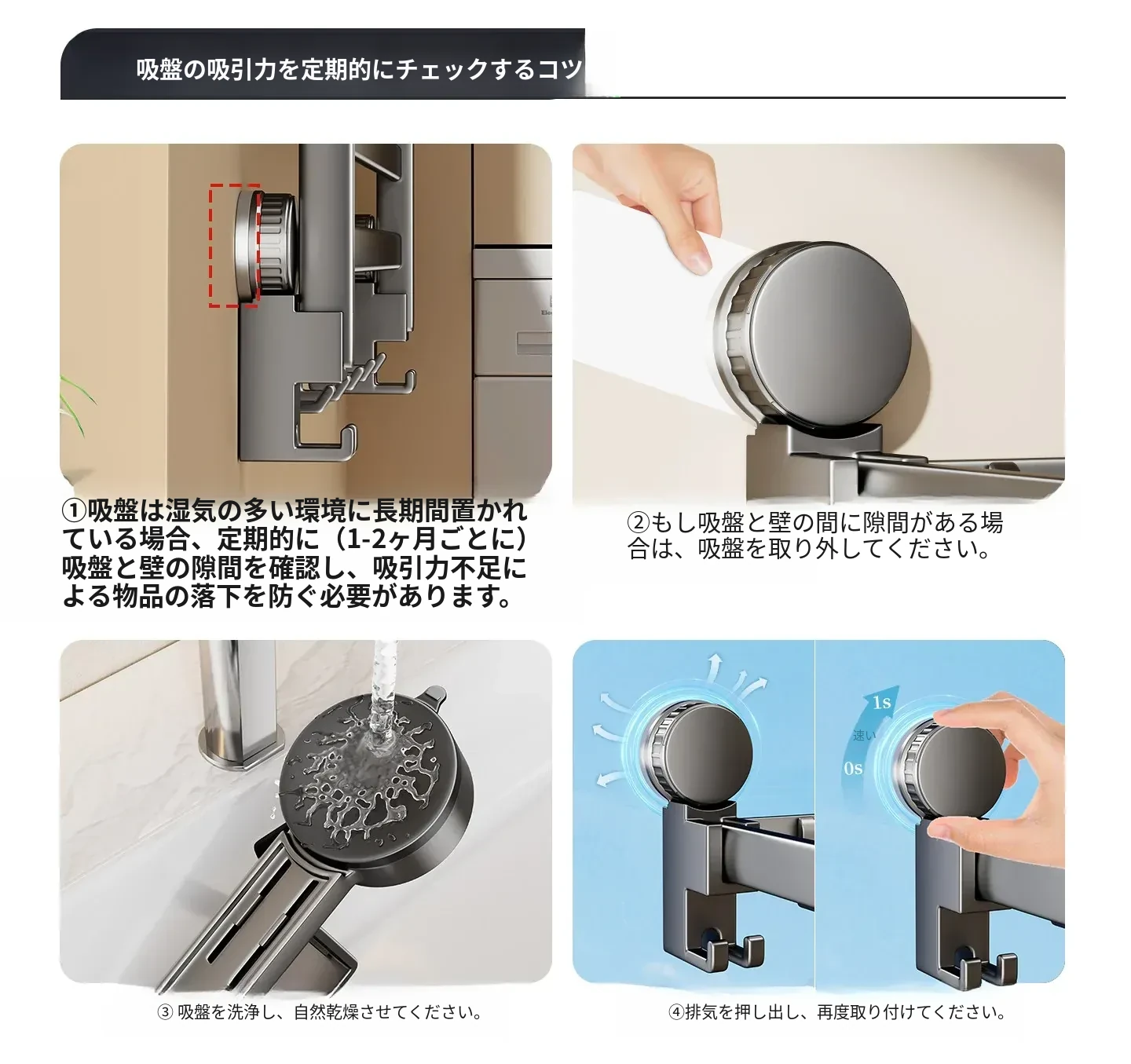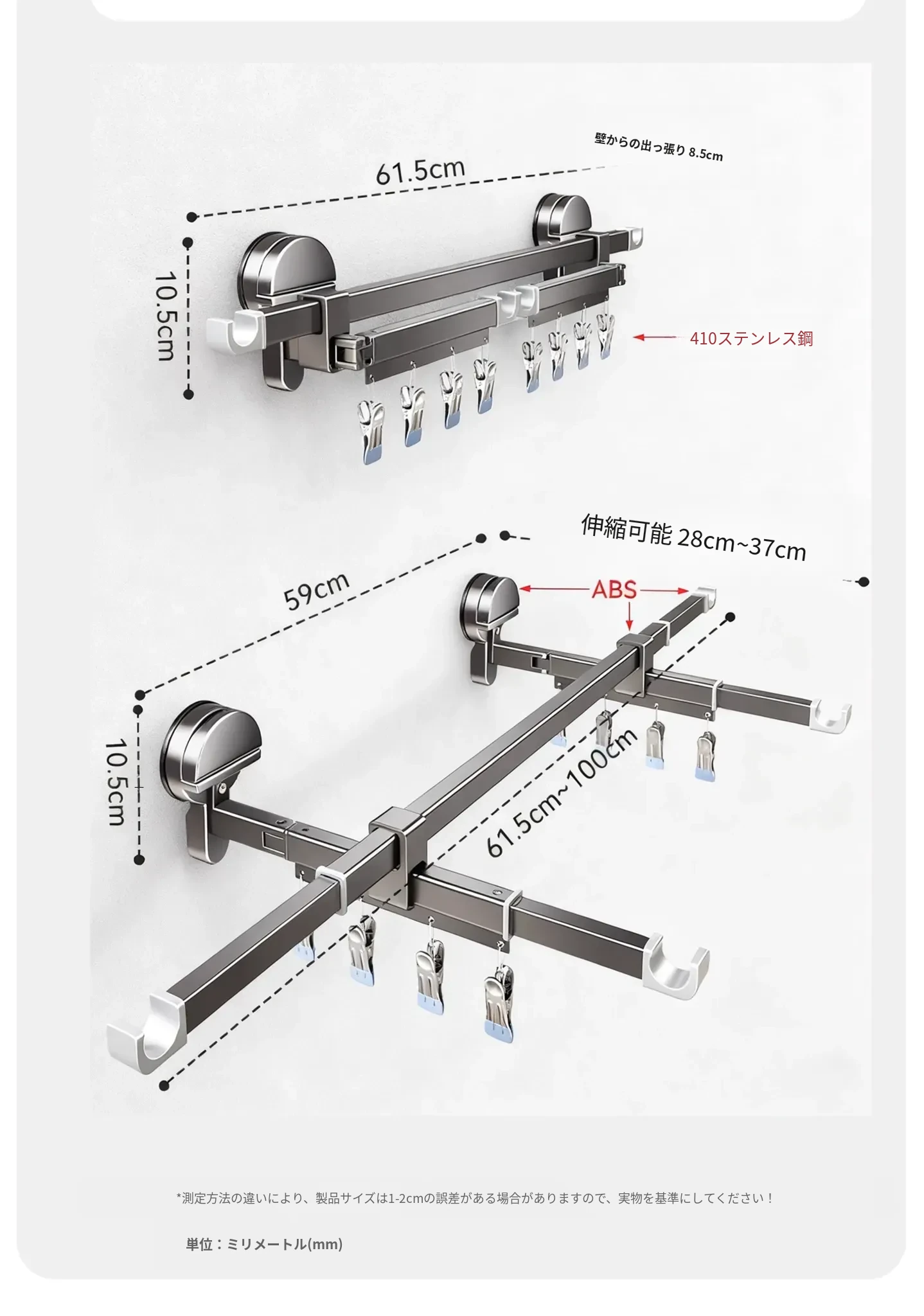 【グレー】吸盤式物干し【杆長62.5-100cm】