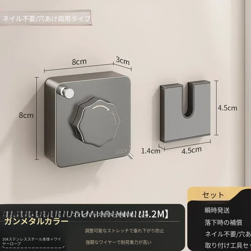 【ガン灰フラッグシップ版】屋内外共用穴なし伸縮4.2mステンレス鋼ロープ