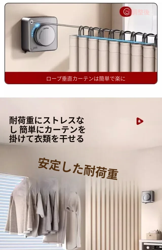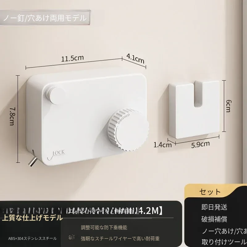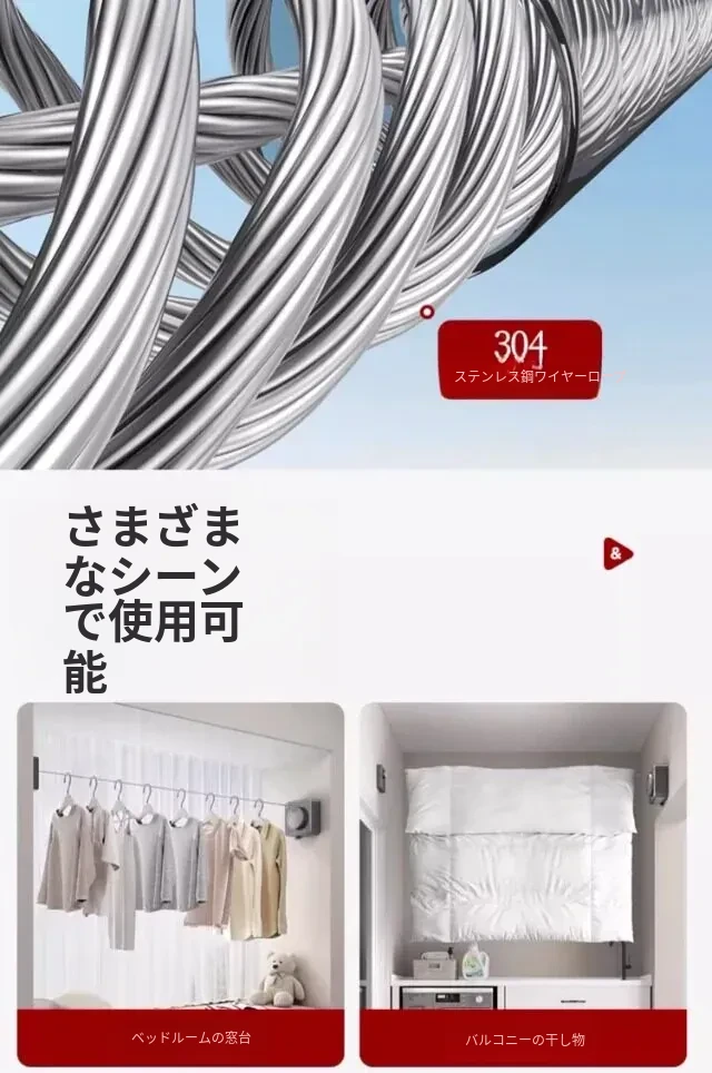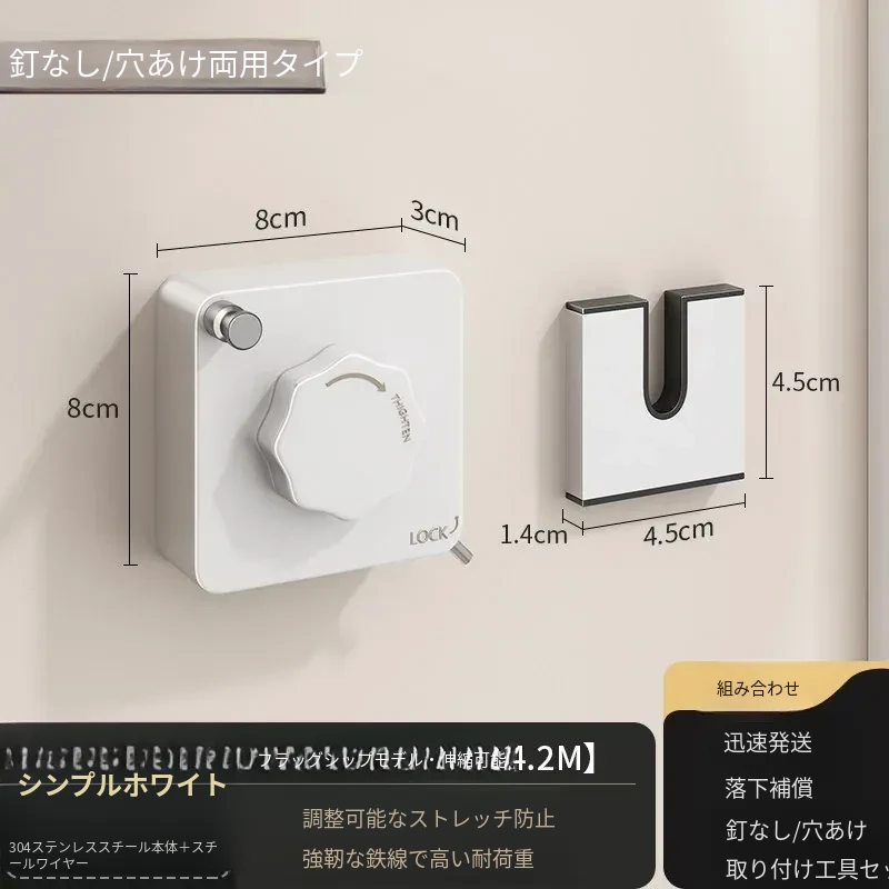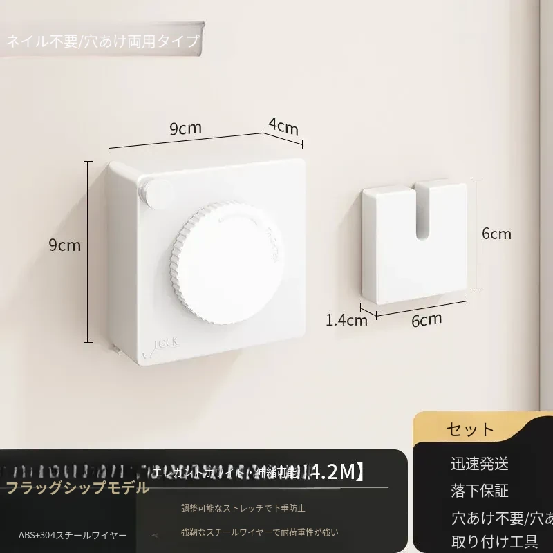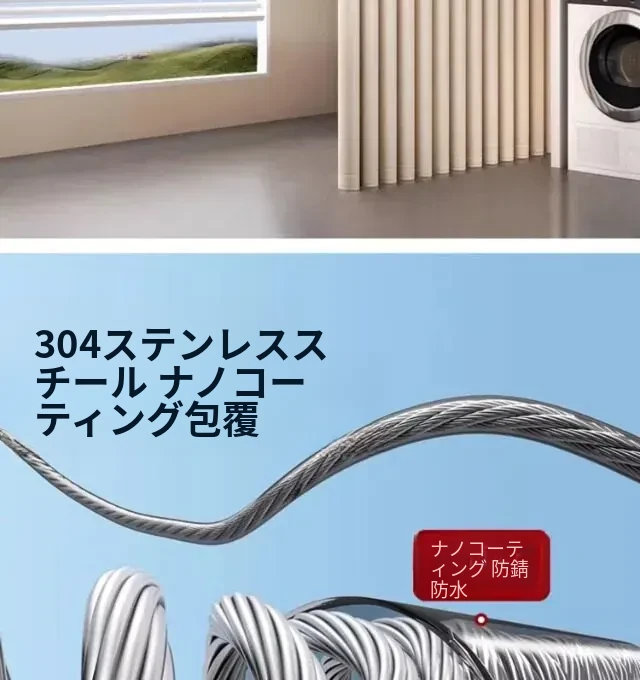 【雅白アップグレード版】屋内外共用穴なし伸縮4.2m鋼ロープ耐荷重40斤
