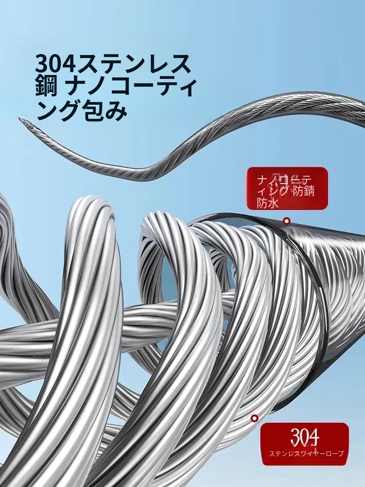 【雅白フラッグシップ版】屋内外共用穴なし伸縮4.2mステンレス鋼ロープ
