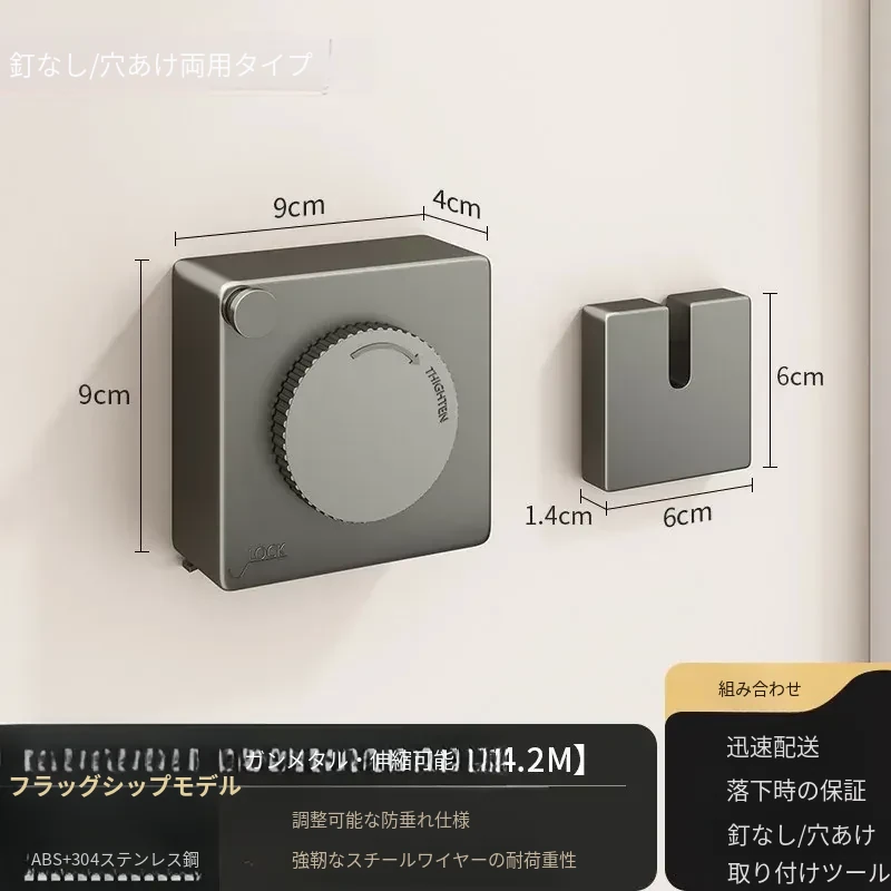 【ガン灰アップグレード版】屋内外共用穴なし伸縮4.2m鋼ロープ耐荷重40斤
