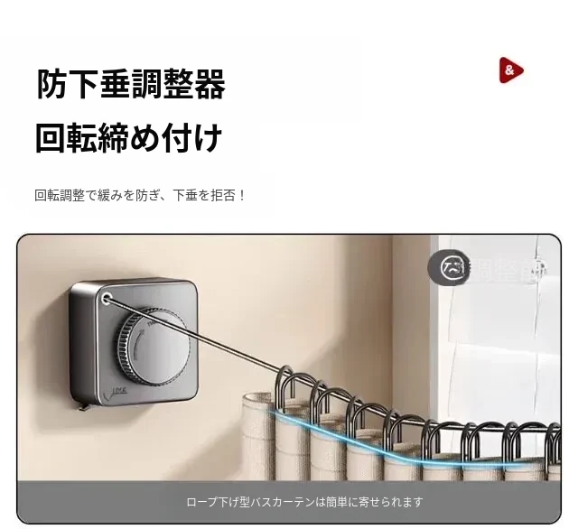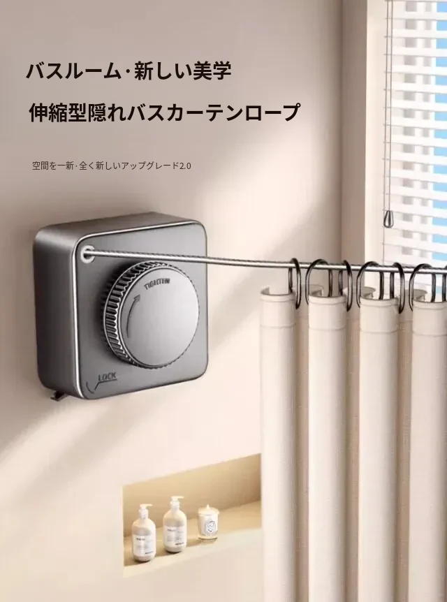 隠形シャワーカーテンロープ 室内用 穴あけ不要 バスルーム用 伸縮式ロッド バルコニー用 ステンレスワイヤー 洗濯物干しの必需品!どんな場所にもフィット!
