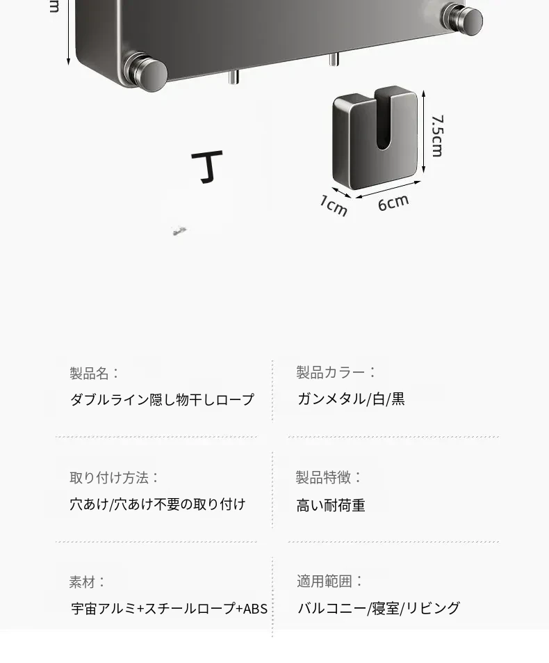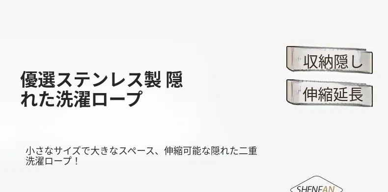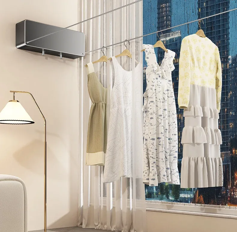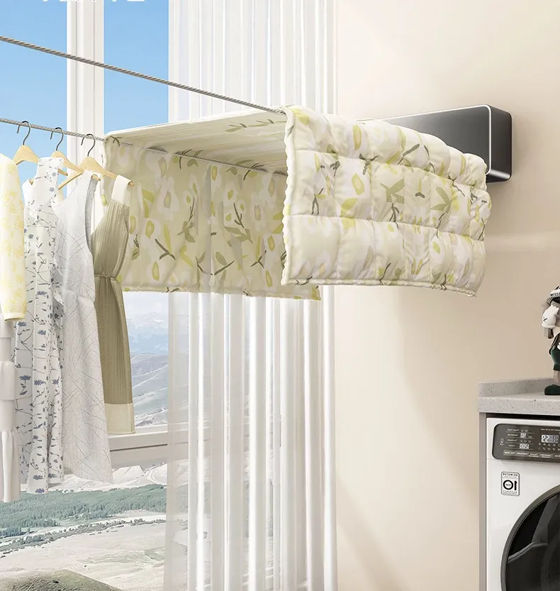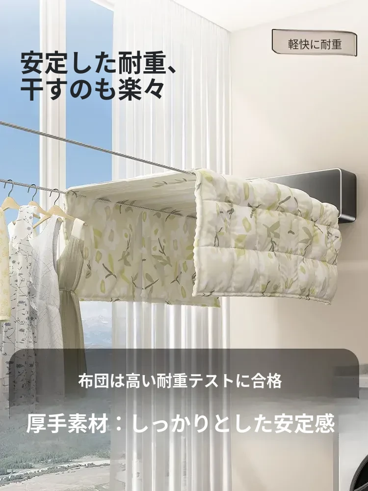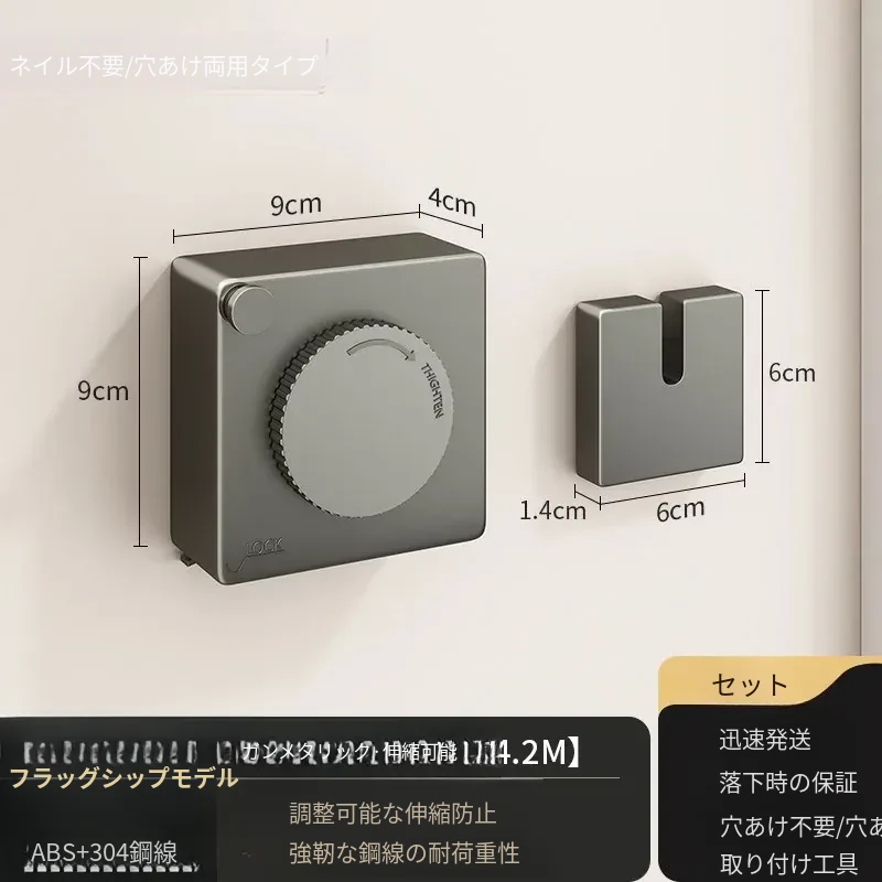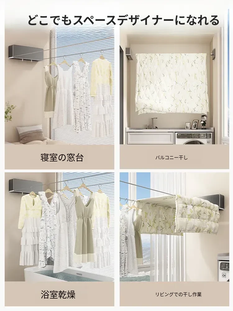 壁掛け式の伸縮性ワイヤー物干しロープ、穴を開けずに取り付け可能!衣類や布団を簡単に干せる便利なアイテム。家庭にぴったりの衣類干し神器!