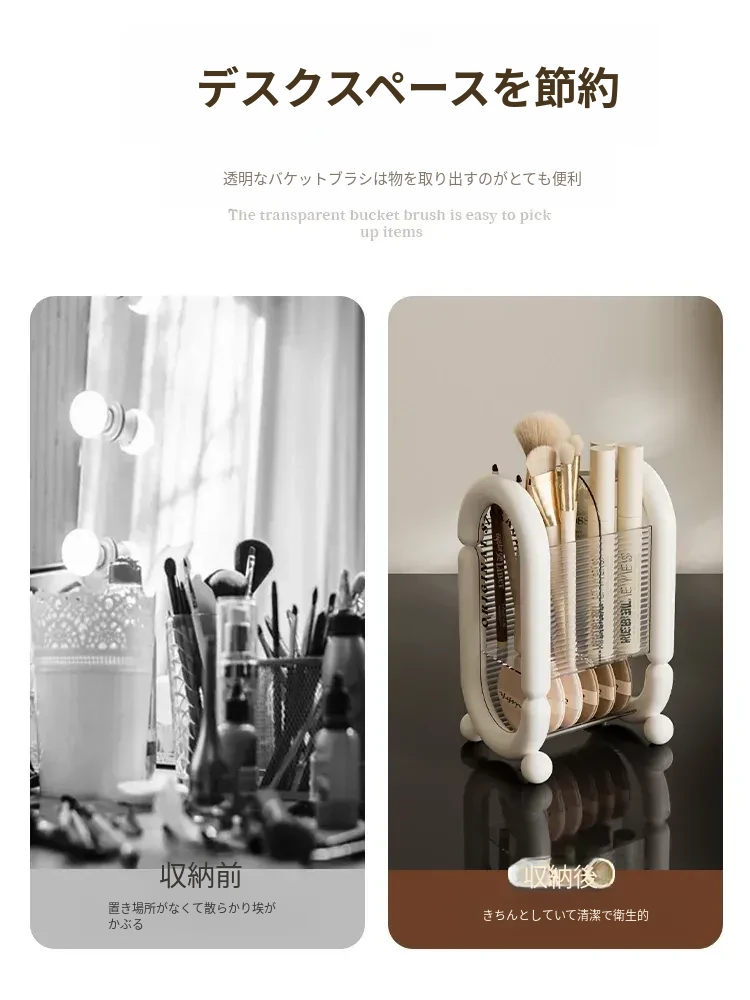 日本製 メイクブラシ収納ケース 防塵 おしゃれなドレッサー用 大容量 コスメ収納ボックス 眉ペンやブラシもスッキリ整理! 使いやすさ抜群で、毎日のメイクアップをもっと楽しく!