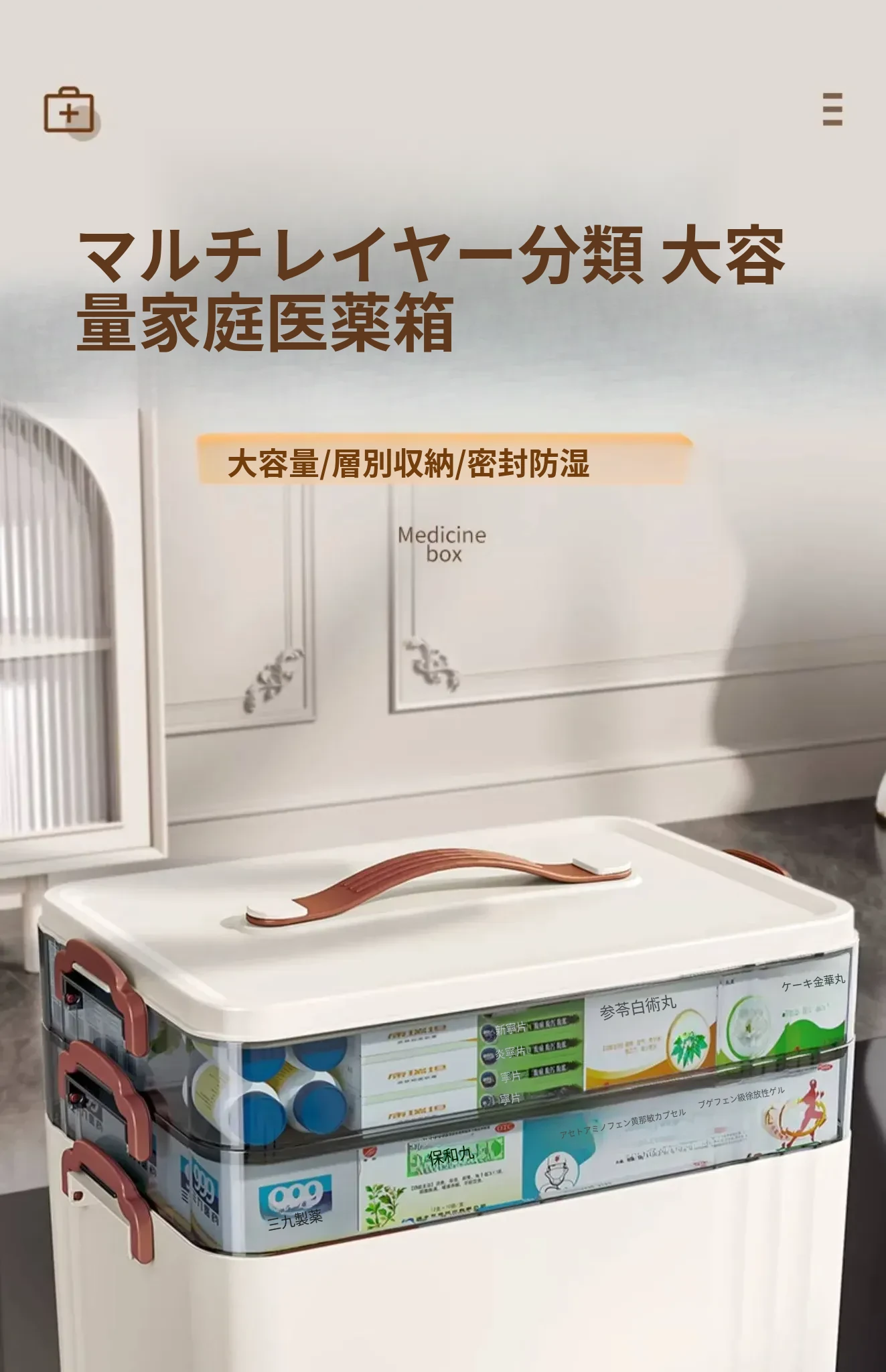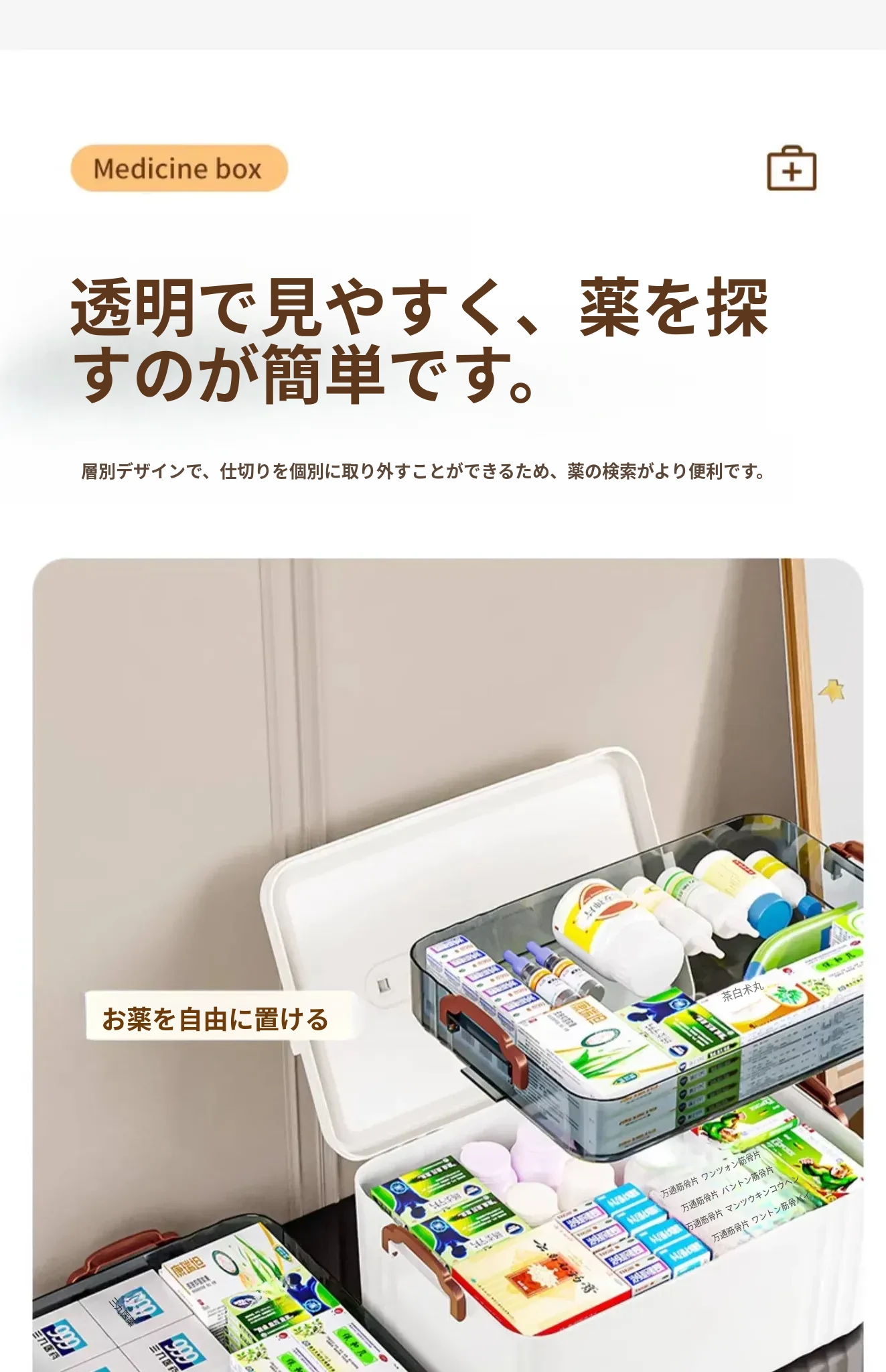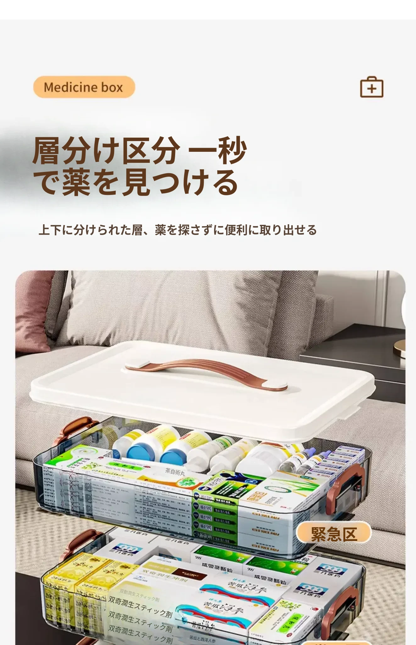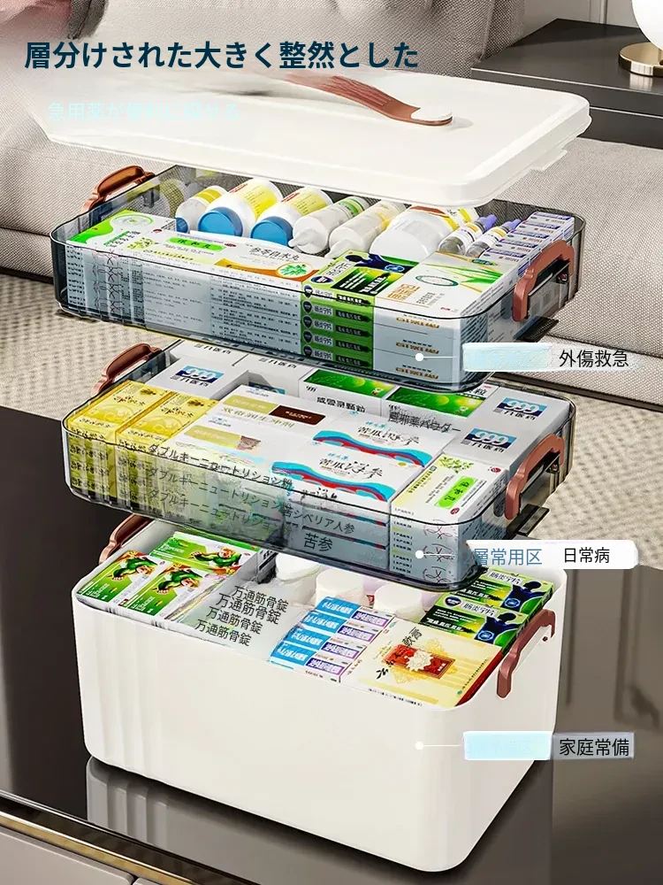 家庭用大容量薬箱 - 引き出し式の多層収納ボックス、常備薬をすっきり整理!お薬を一目で見つけやすく、安心・便利な収納アイテム。