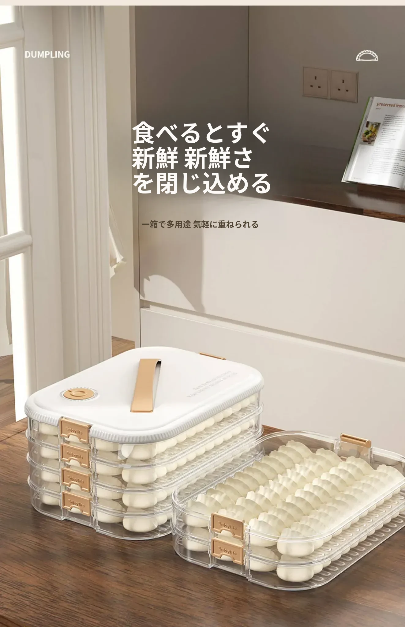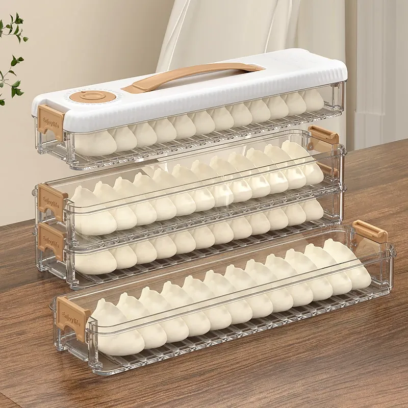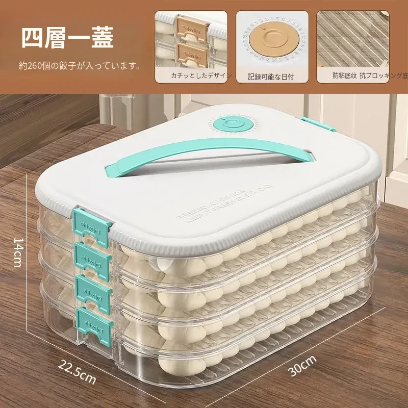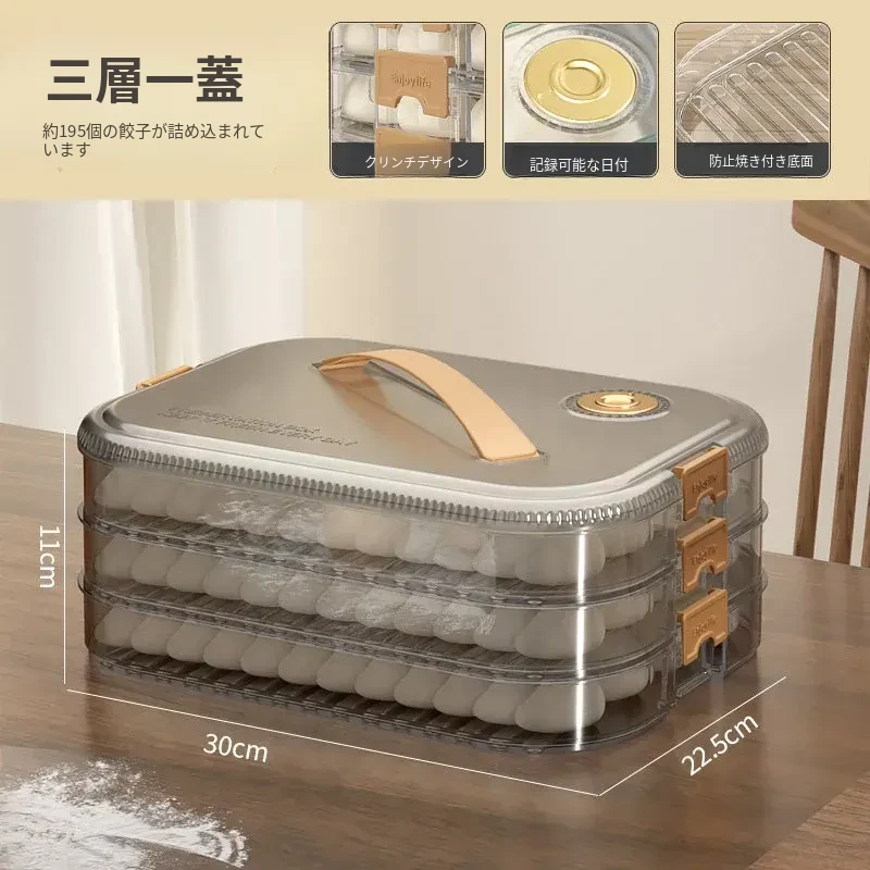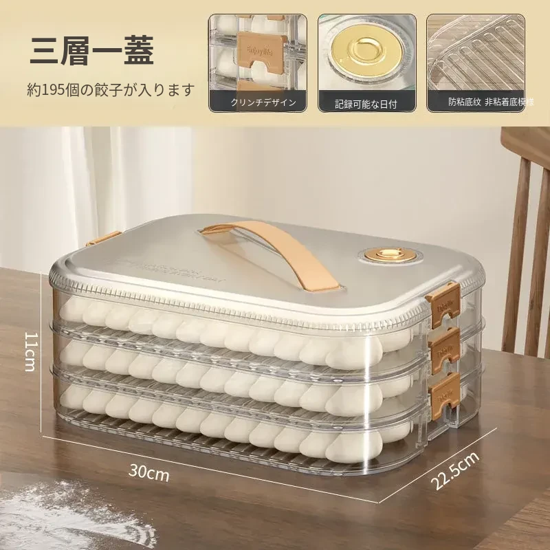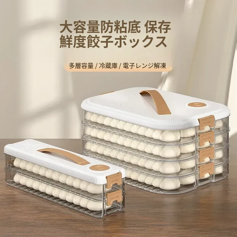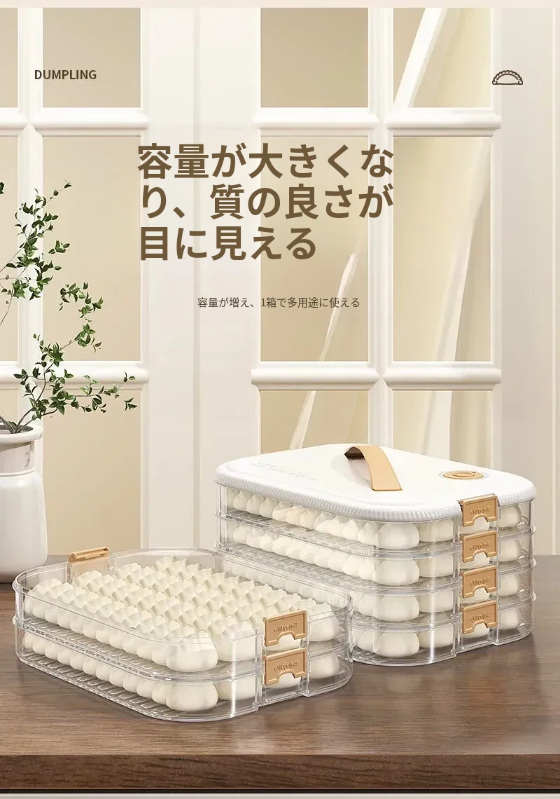 大容量の餃子収納ボックス|多層式食品グレード|冷凍保存もできる!キッチンや冷蔵庫に最適な蓋付き収納ボックスで、美味しい餃子をいつでも新鮮に保ちます!